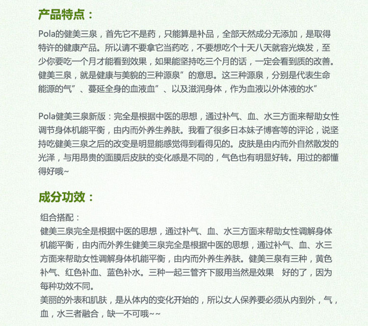 POLA健美三泉全方位调理肌肤和体质组合调节气色 一个月量