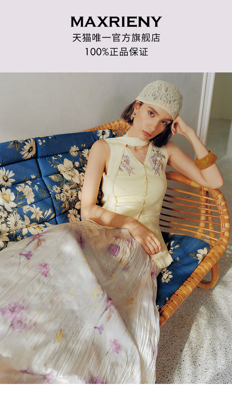 【商场同款】MAXRIENY优雅度假风垂感抽褶散摆半裙25夏波嬉风裙子(货号:MC86SK271)