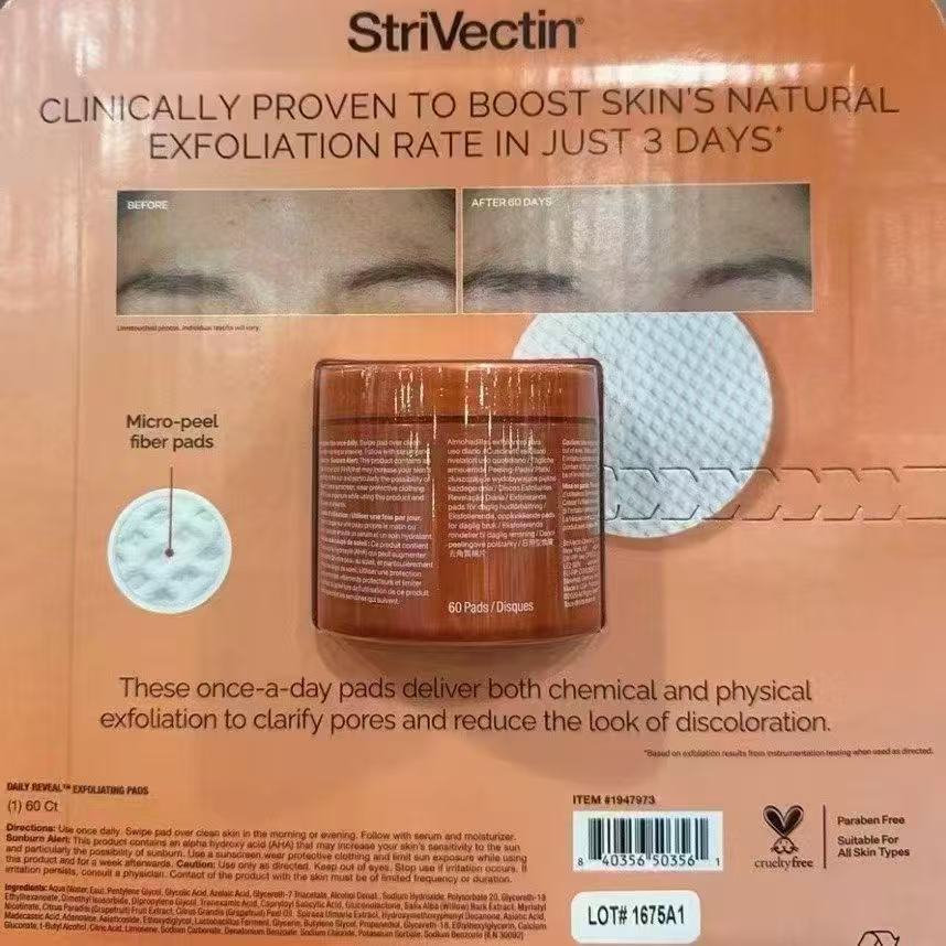 到手价159元 StriVectin Daily Reveal去角质棉片 60片 含AHA+BHA 美国采购,无中文标签,介意慎拍