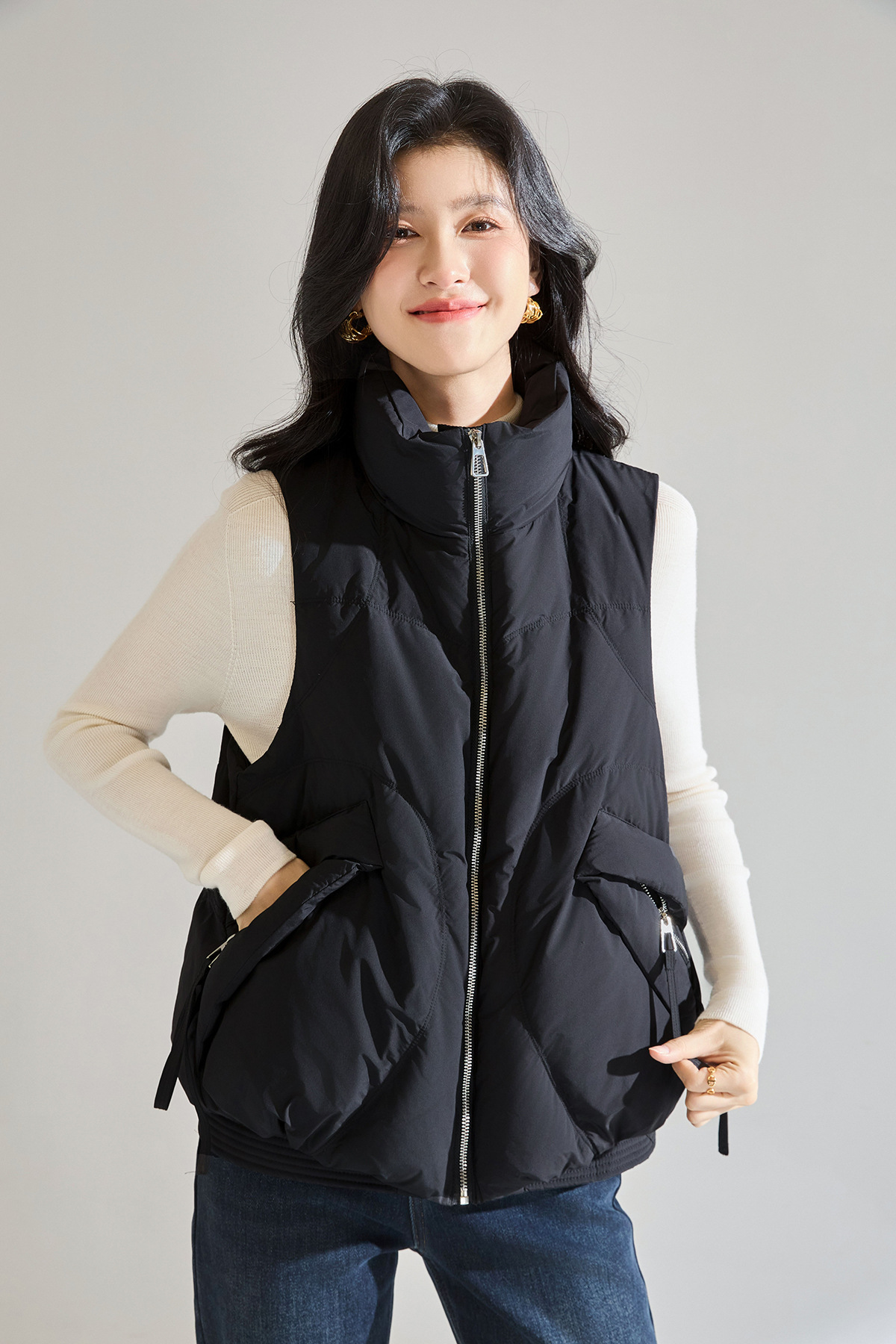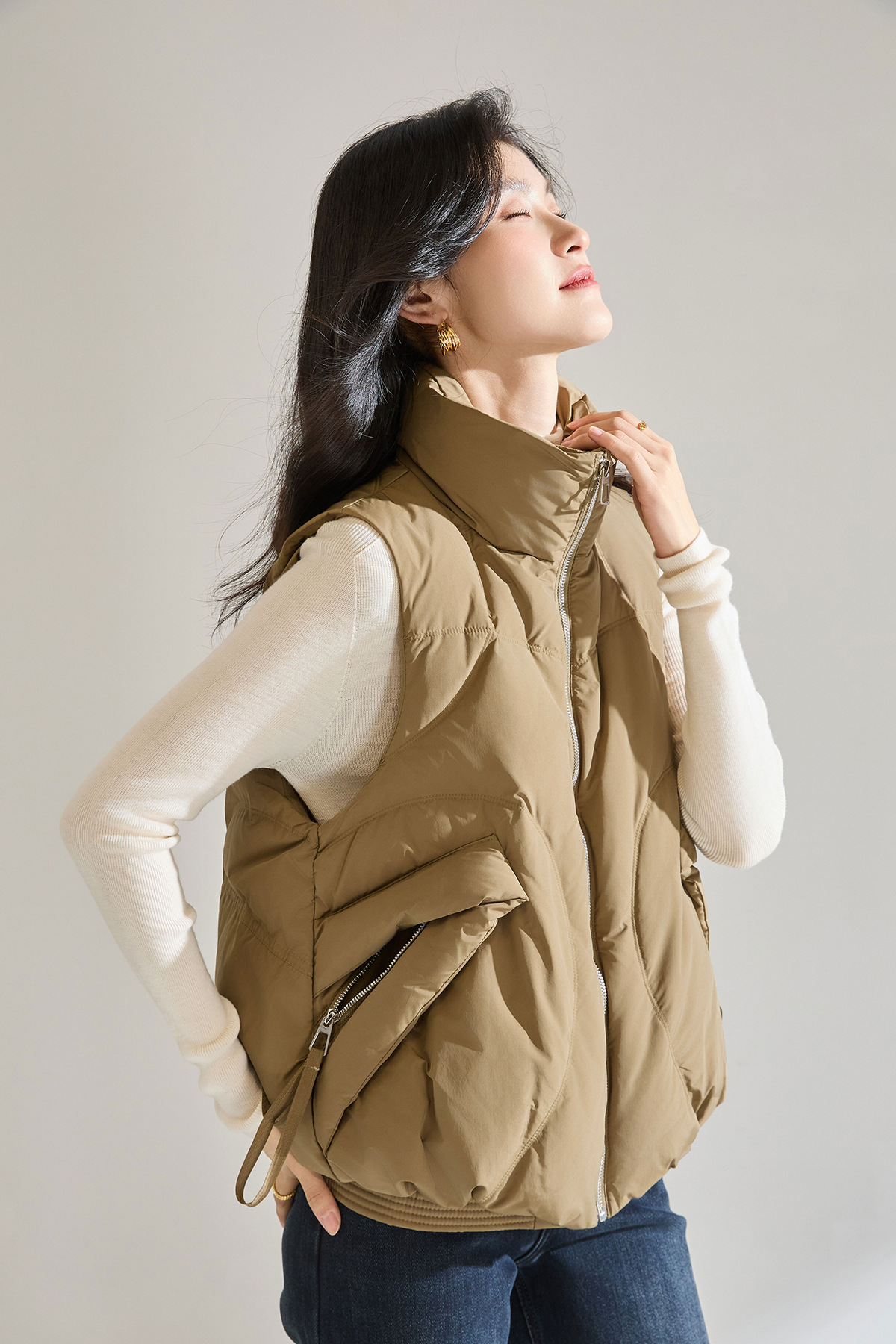 「高货sh」全新升级【铂金会员275/天猫369/差价94】(11902)洛诗琳立领90白鸭绒羽绒马甲2025冬季百搭保暖无袖外套