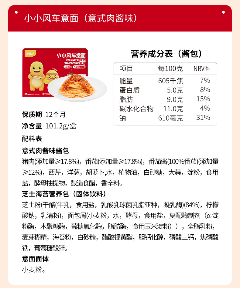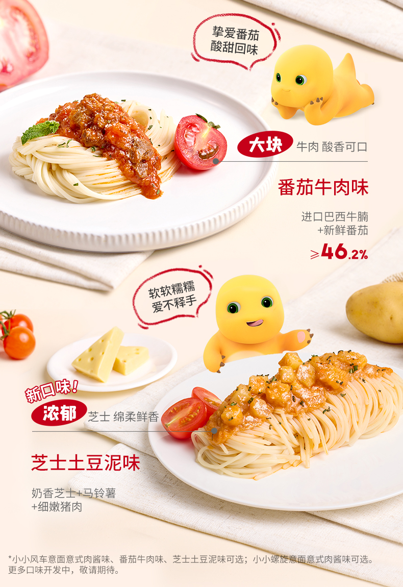 忆小口小小螺旋意面(意式肉酱)小小风车意面(意式肉酱) 小小风车意面(番茄牛肉)小小风车意面(芝士土豆泥肉酱味)