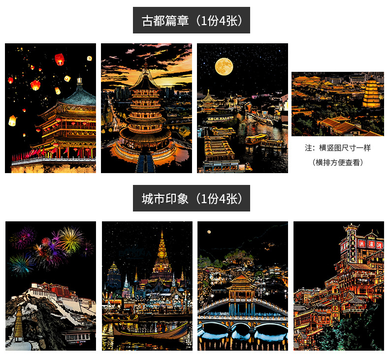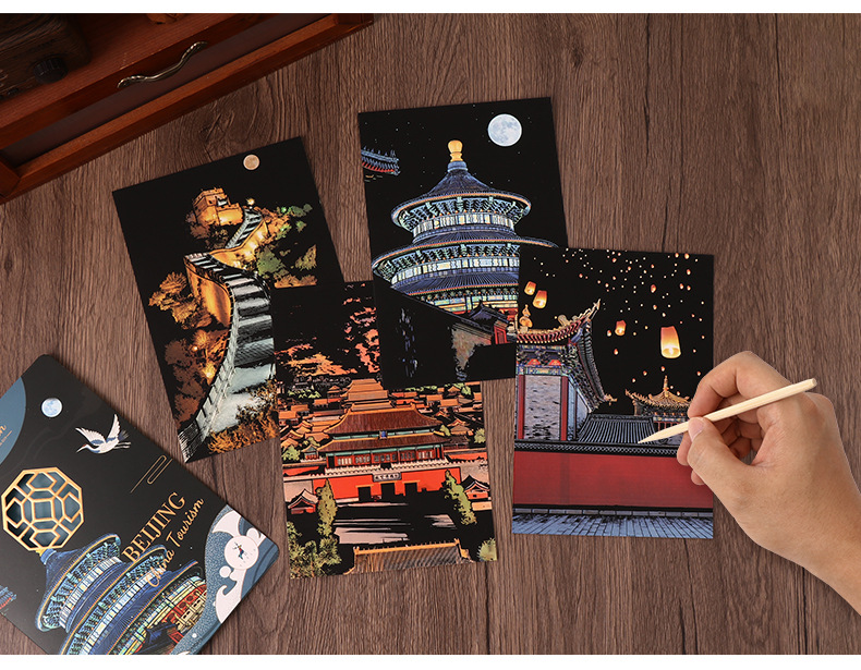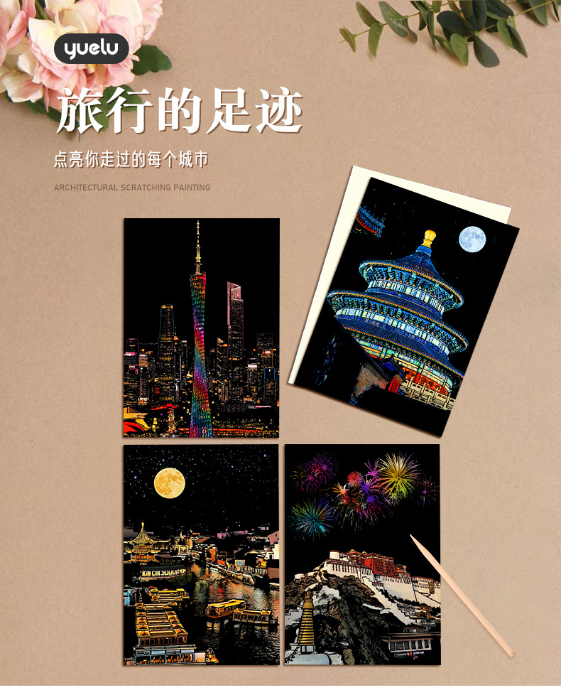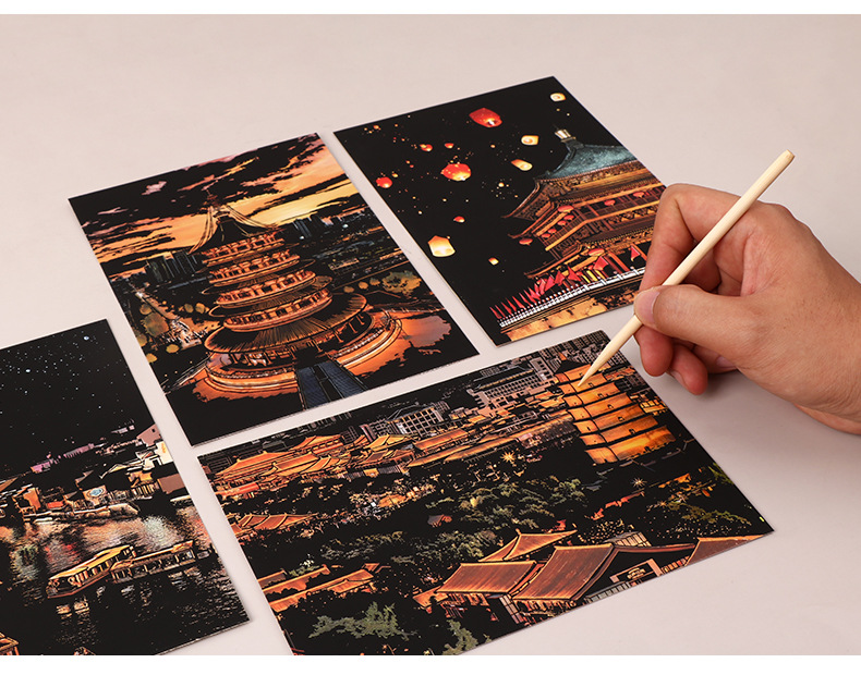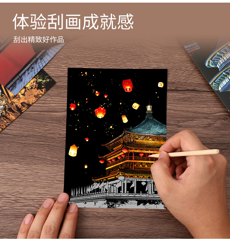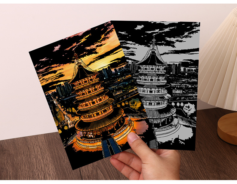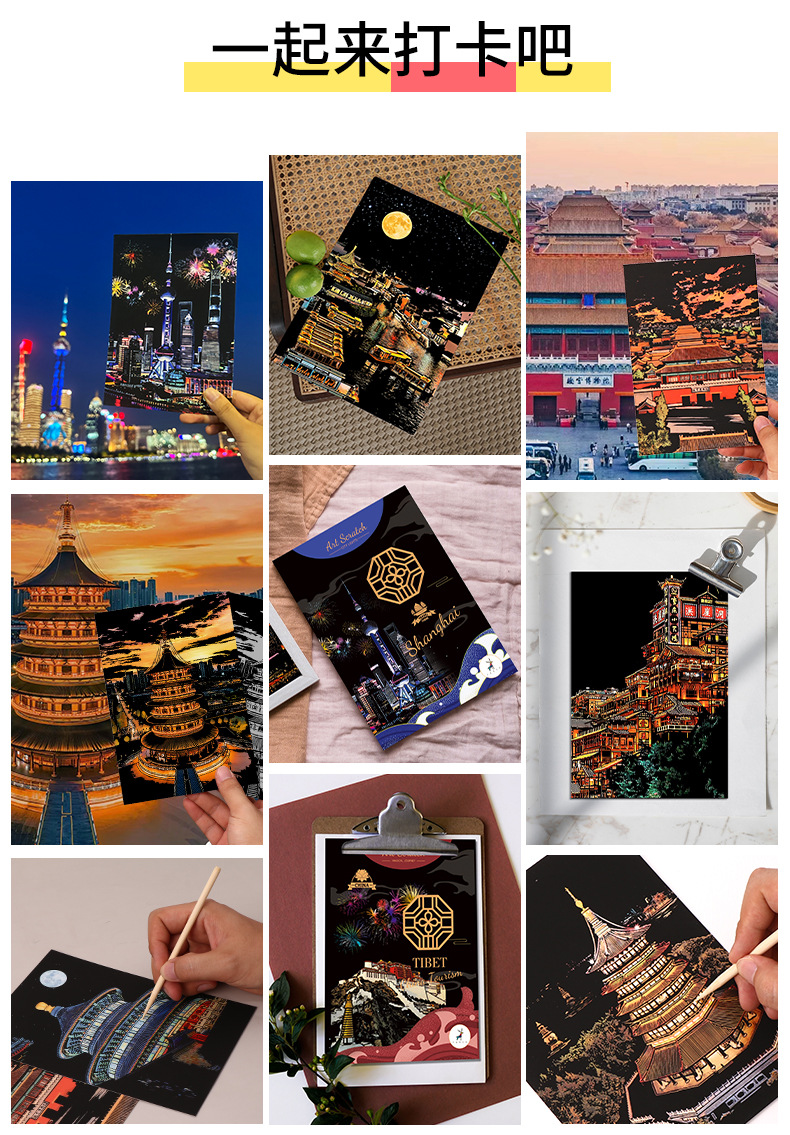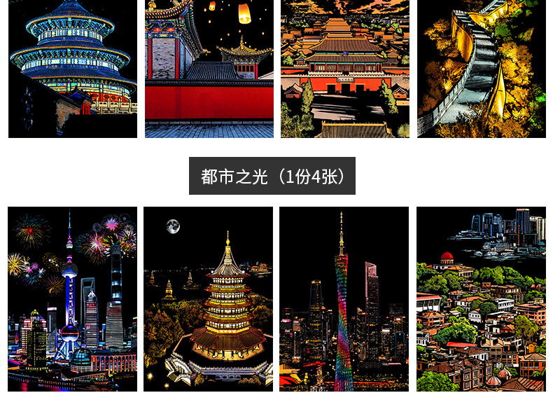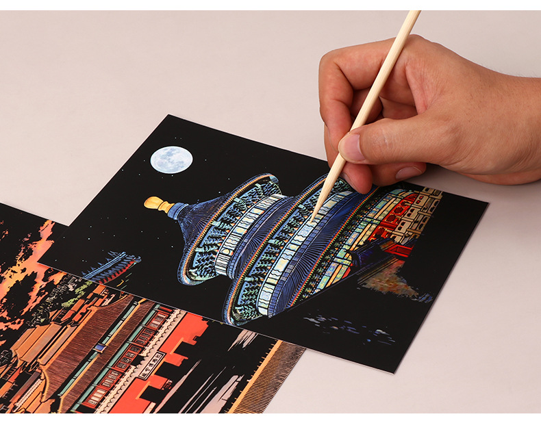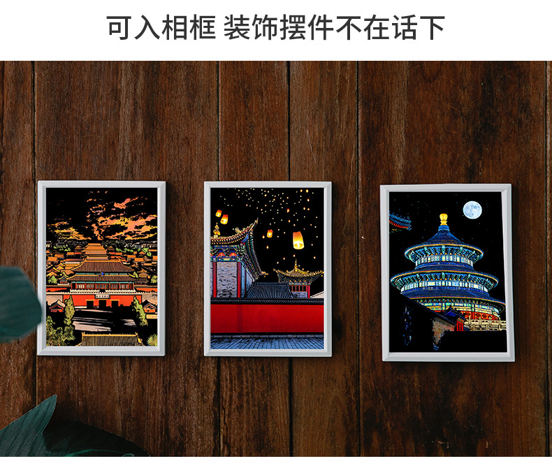 故宫夜景手工刮刮画国内经典地标建筑刮画学生创意玩具打卡刮刮画