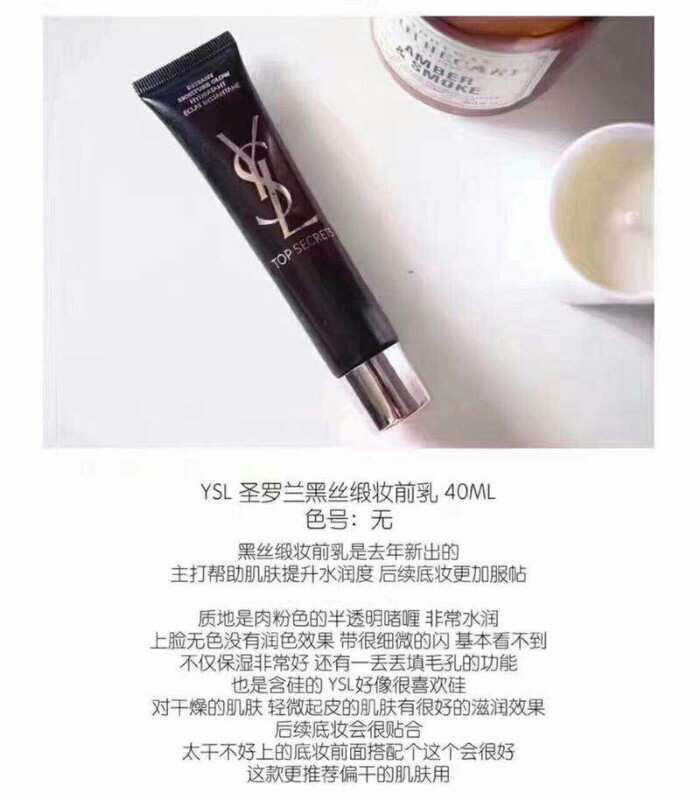 YSL圣罗兰妆前乳保湿隔离霜黑丝缎亮颜亮肌乳👛創新「幻變爆水科技」讓粉色凝露狀「黑絲緞」🌸在輕觸瞬間幻化水感質地,盡享順滑、滋潤的塗抹體驗;🌿再推開,水分迅速被吸收,🍉肌膚如同覆蓋一層隱形黑絲緞,感受平滑、柔細的肌膚觸感。創新的啫哩質地與肌膚接觸時分解成微水滴,💃只需要數秒,肌膚變得如絲緞般柔軟,令妝容更持久,💋可單獨使用,可做妝前底霜或隨時補妝之用。