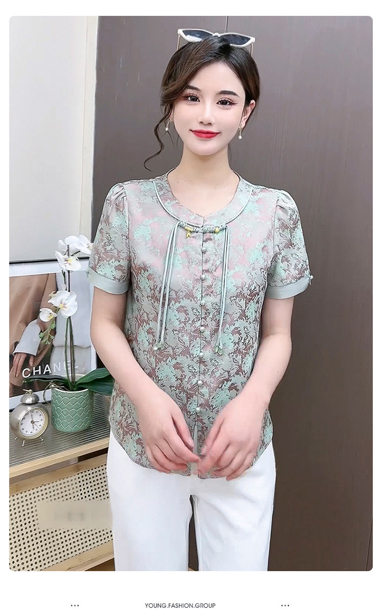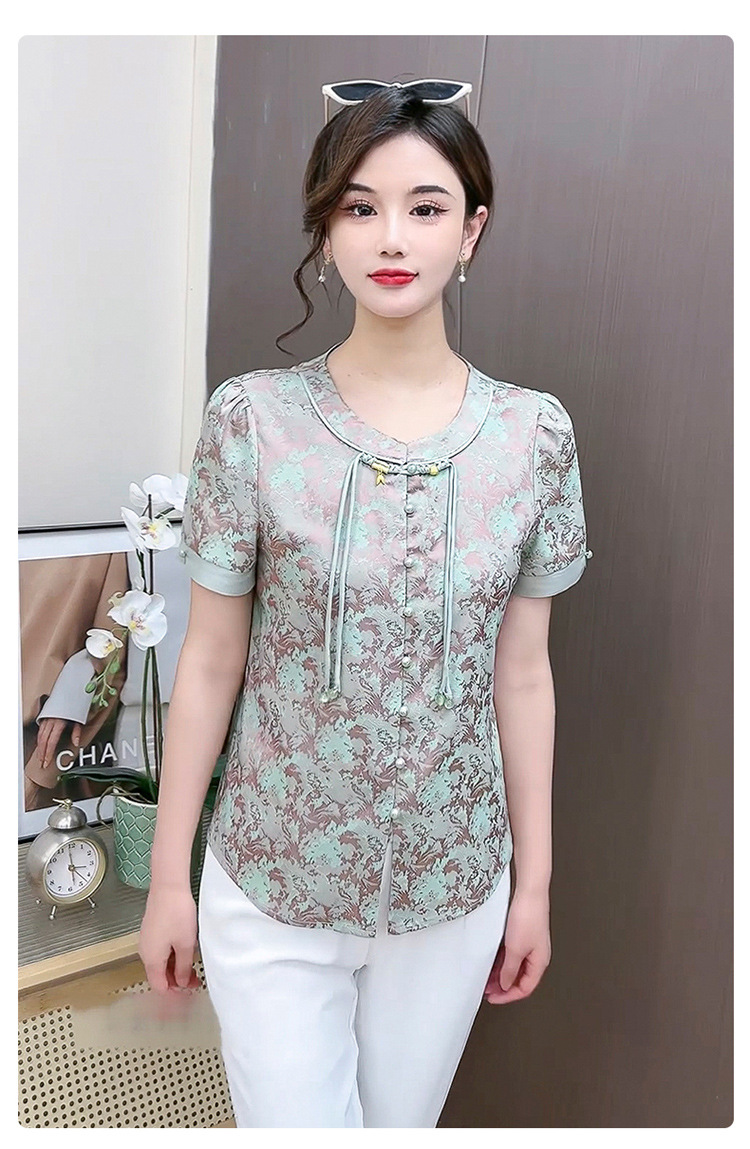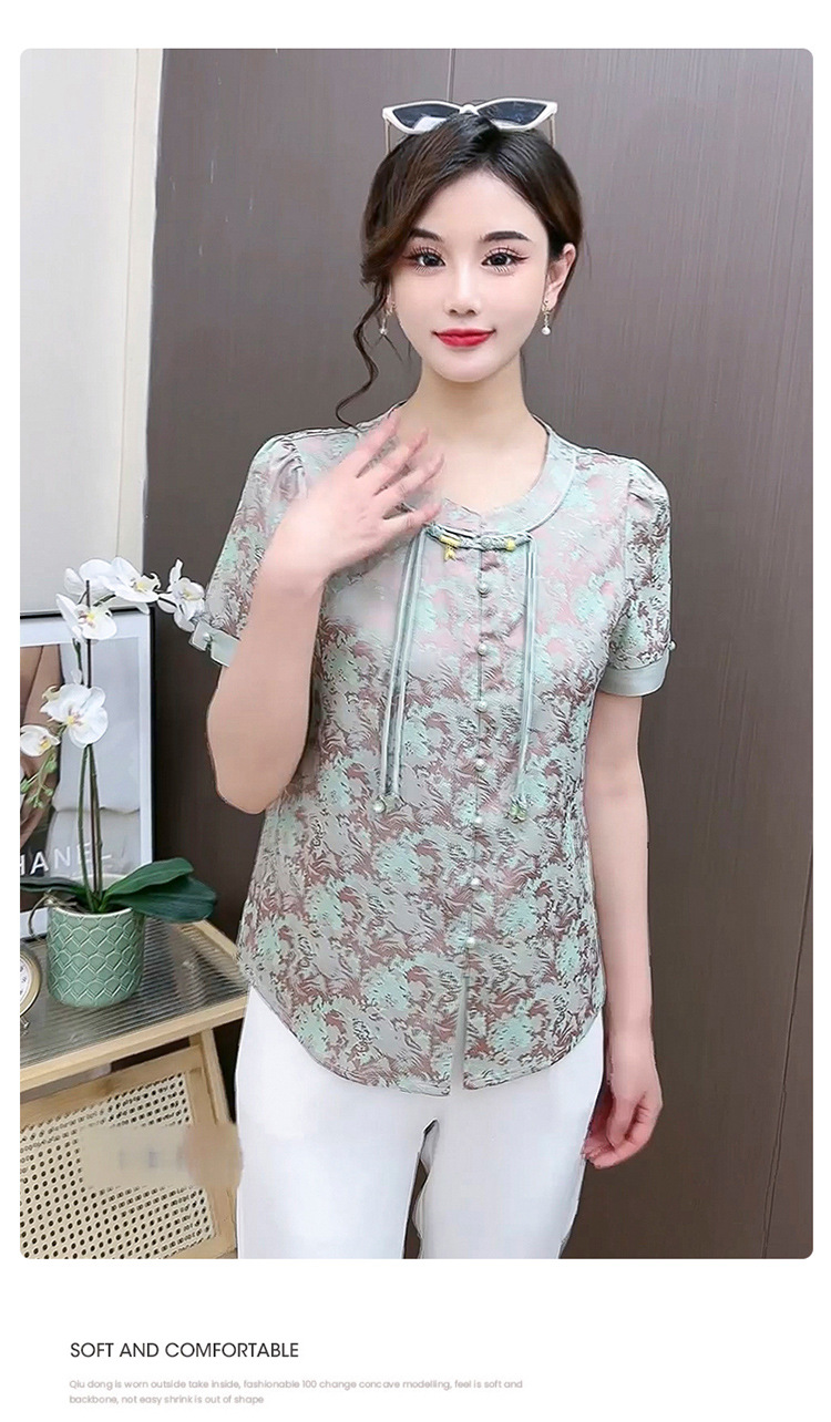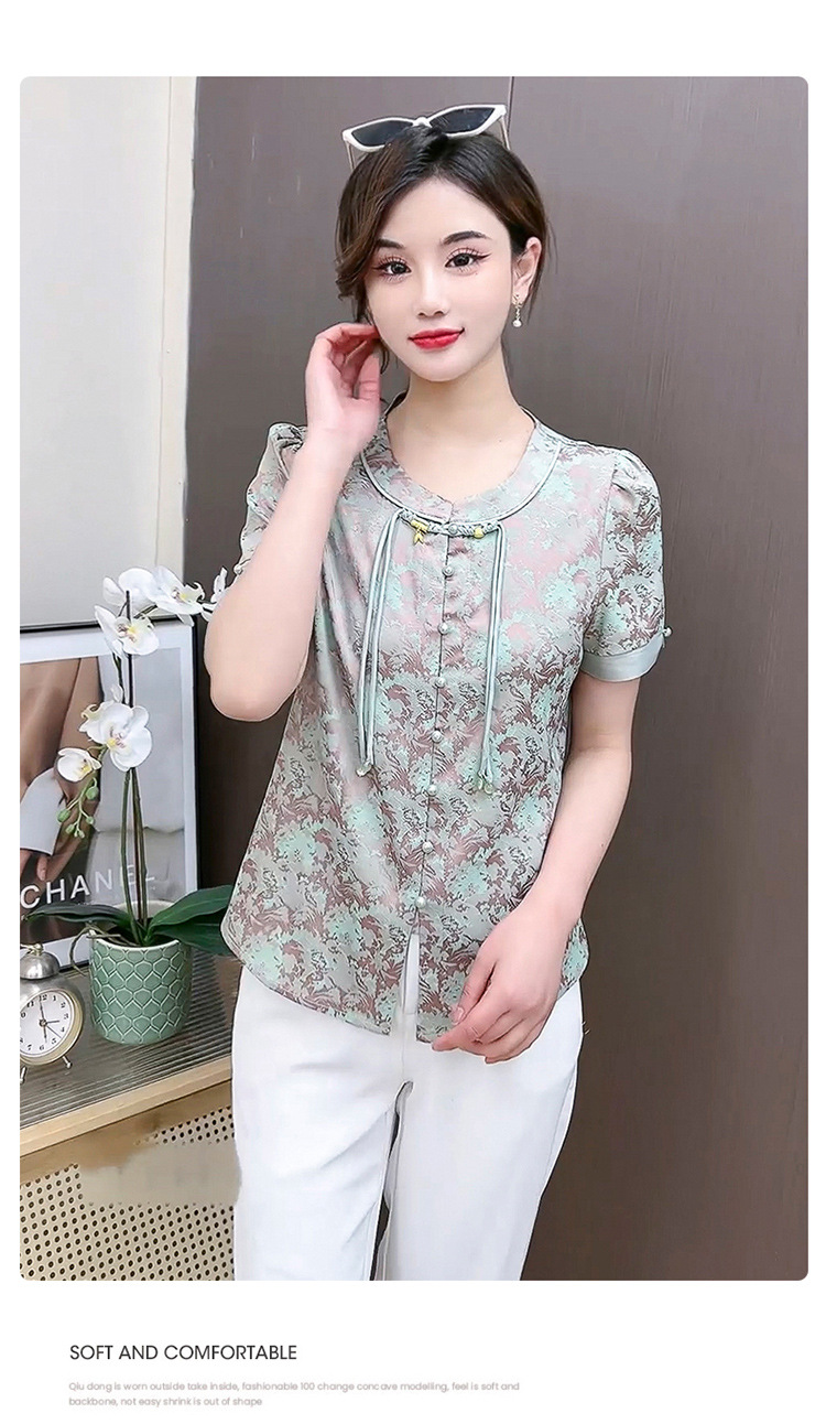 时尚气质印花衬衫,国风复古短款小衫QYM- LRX-L2473-Y