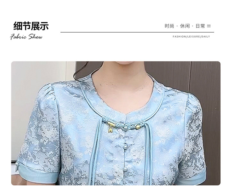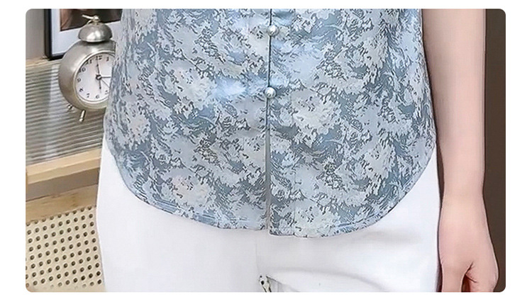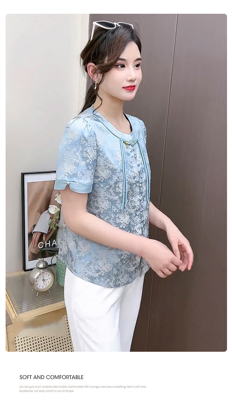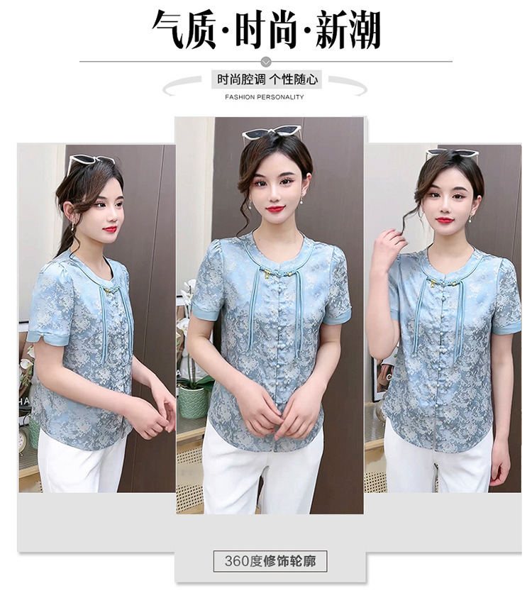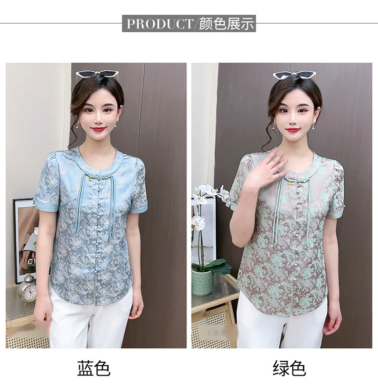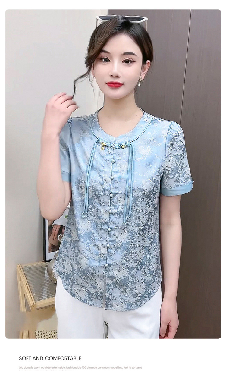 时尚气质印花衬衫,国风复古短款小衫QYM- LRX-L2473-Y