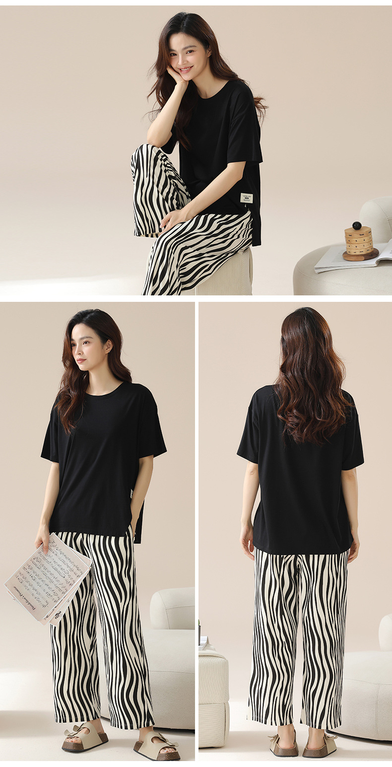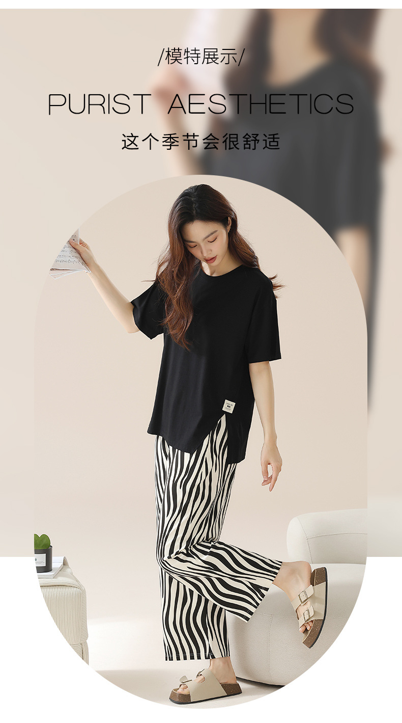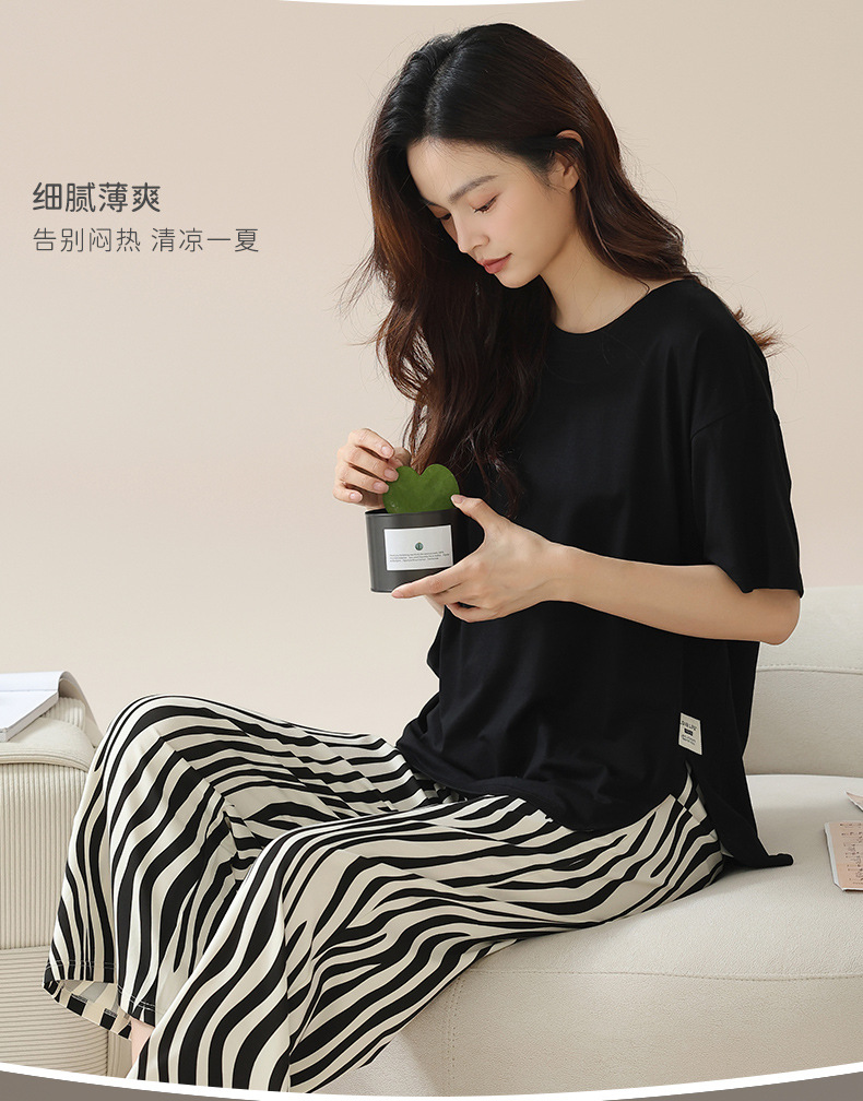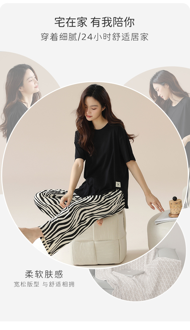 丁摩 睡衣女夏【纯棉】薄款短袖高级感可外穿家居服夏天女士睡衣套装5ZF-63015
