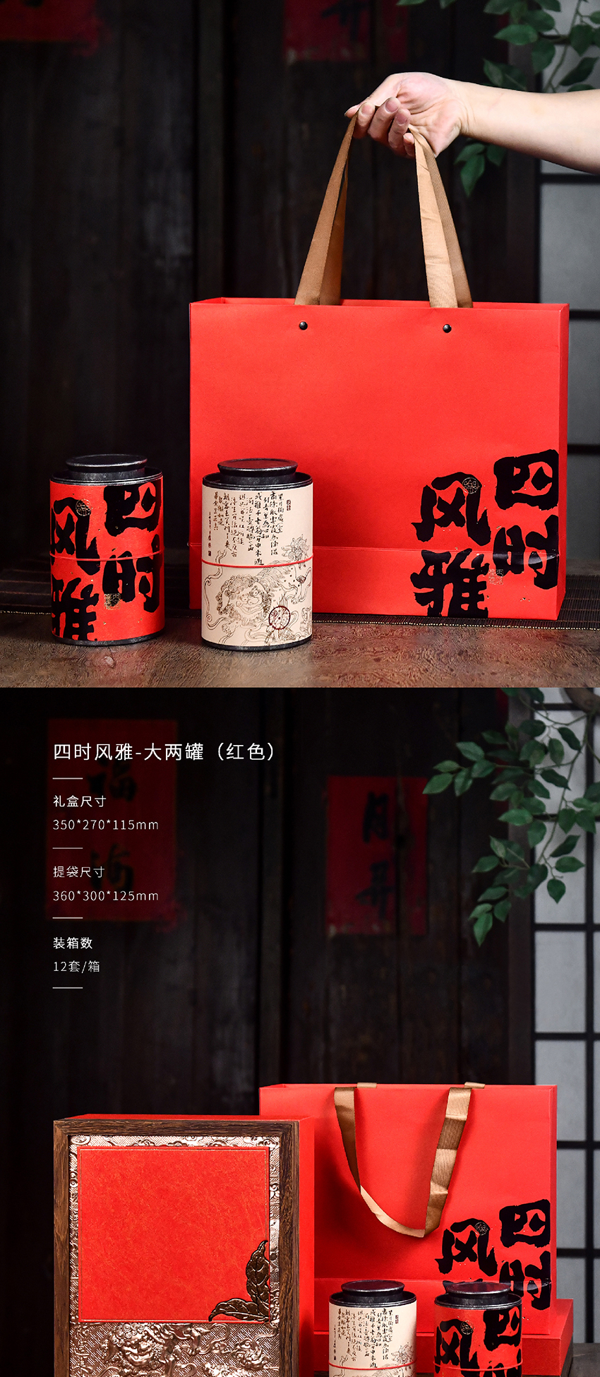 四时风雅-大两罐新年通用茶叶空礼盒PA