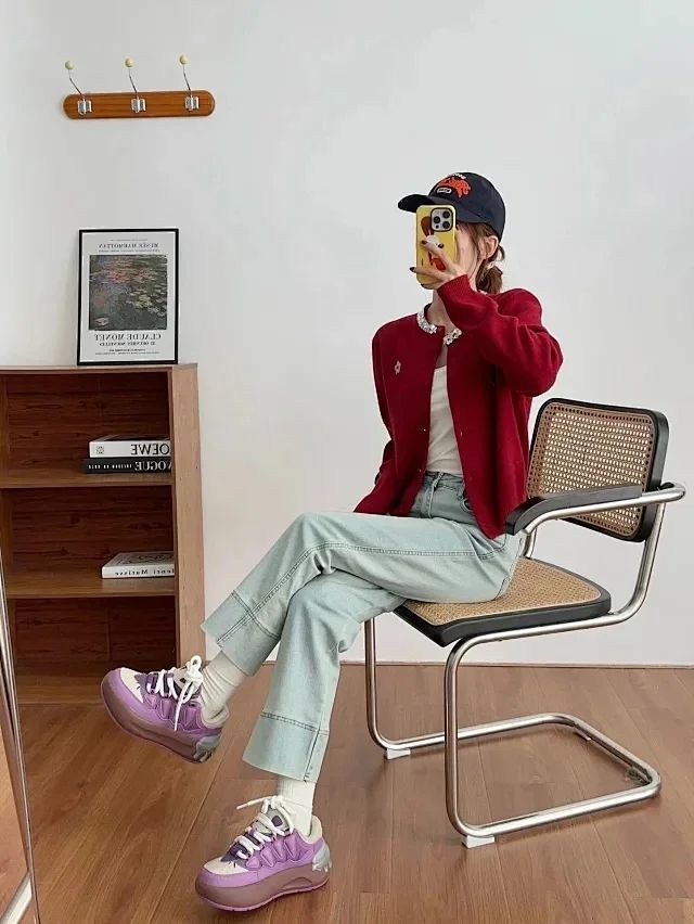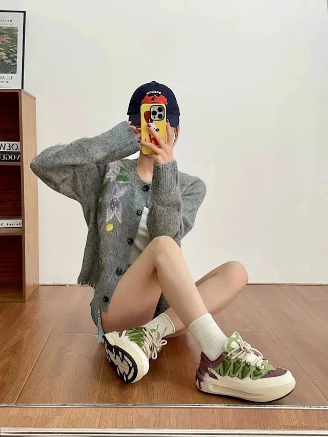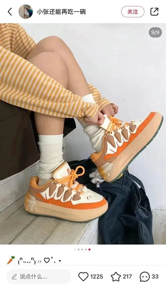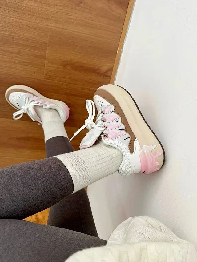 是一双专为女生设计的可爱面包板鞋