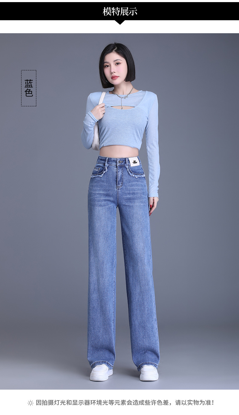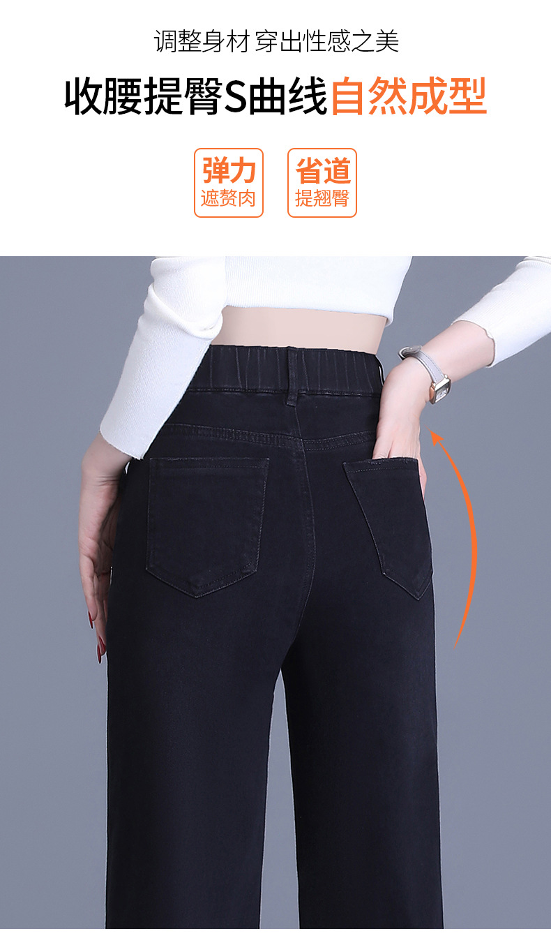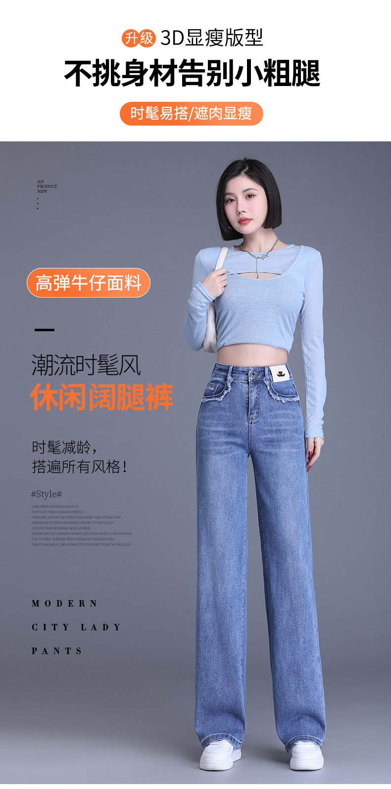 休闲时尚牛仔裤,扣腰宽松修身气质阔腿裤垂感长裤MYX-3281