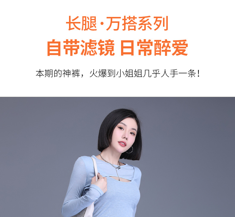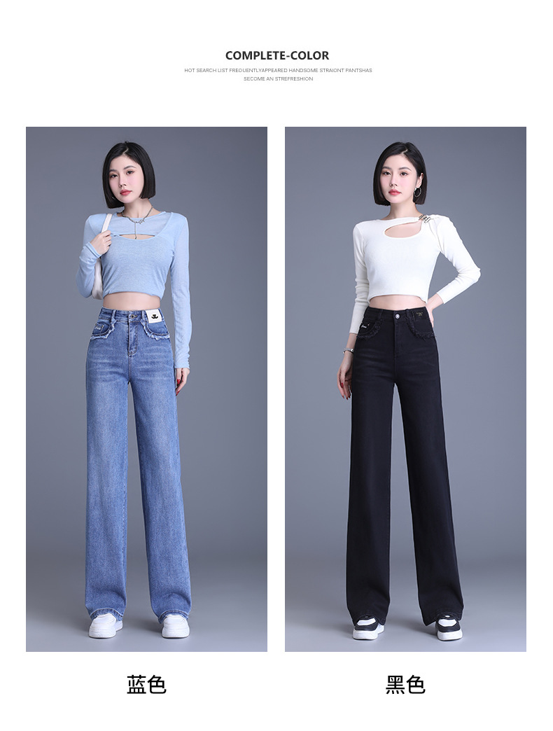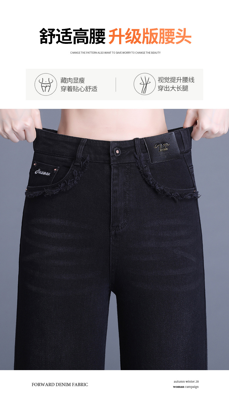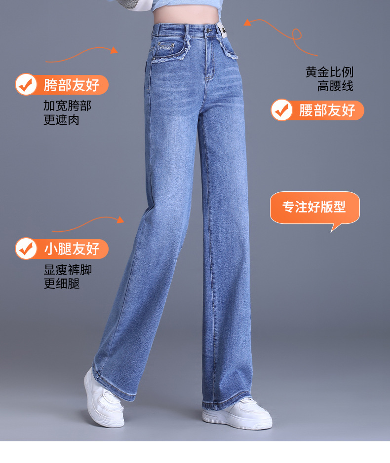 休闲时尚牛仔裤,扣腰宽松修身气质阔腿裤垂感长裤MYX-3281