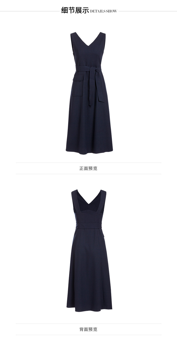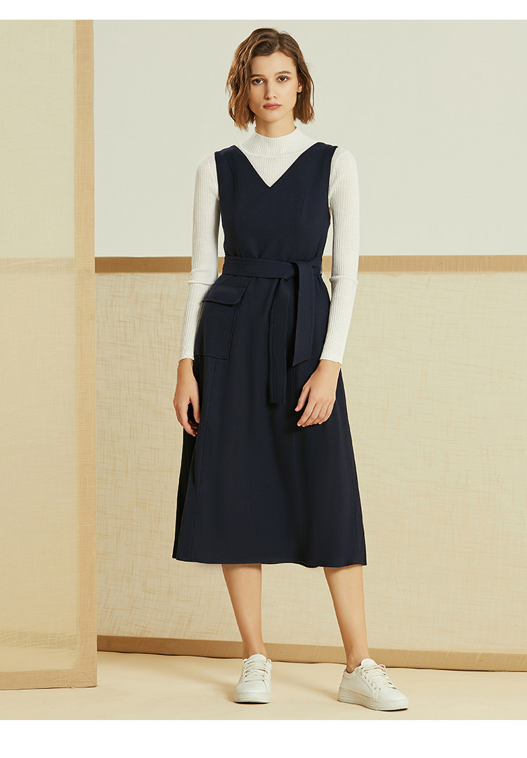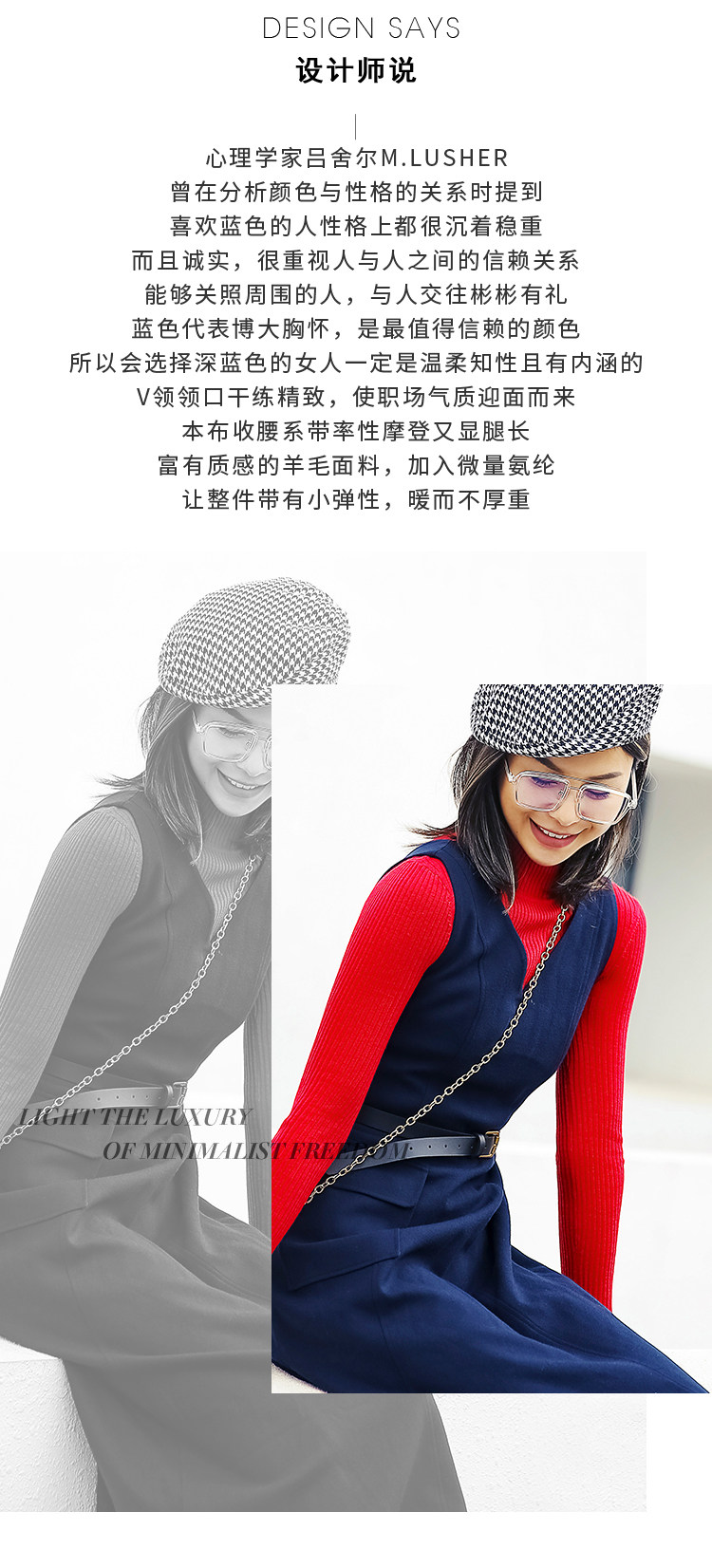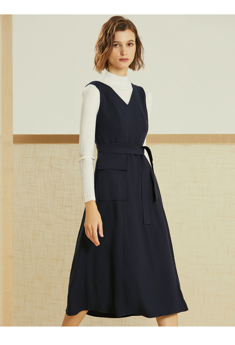 VIMAGE-纬漫纪春款时尚通勤V领显瘦纯色收腰连衣裙女中款V1207834