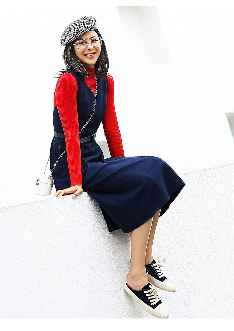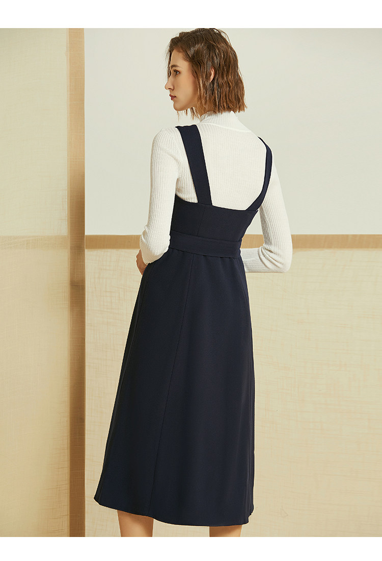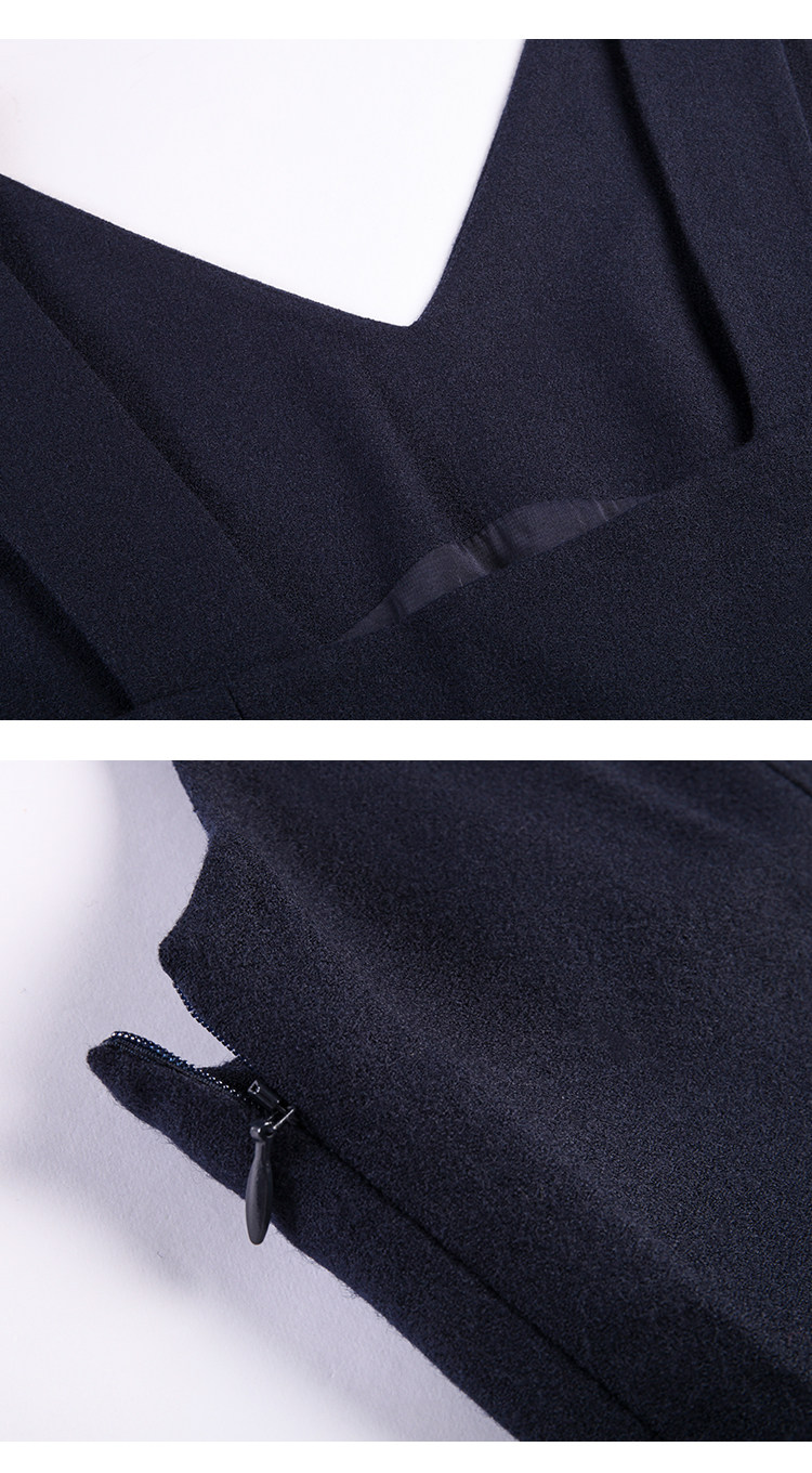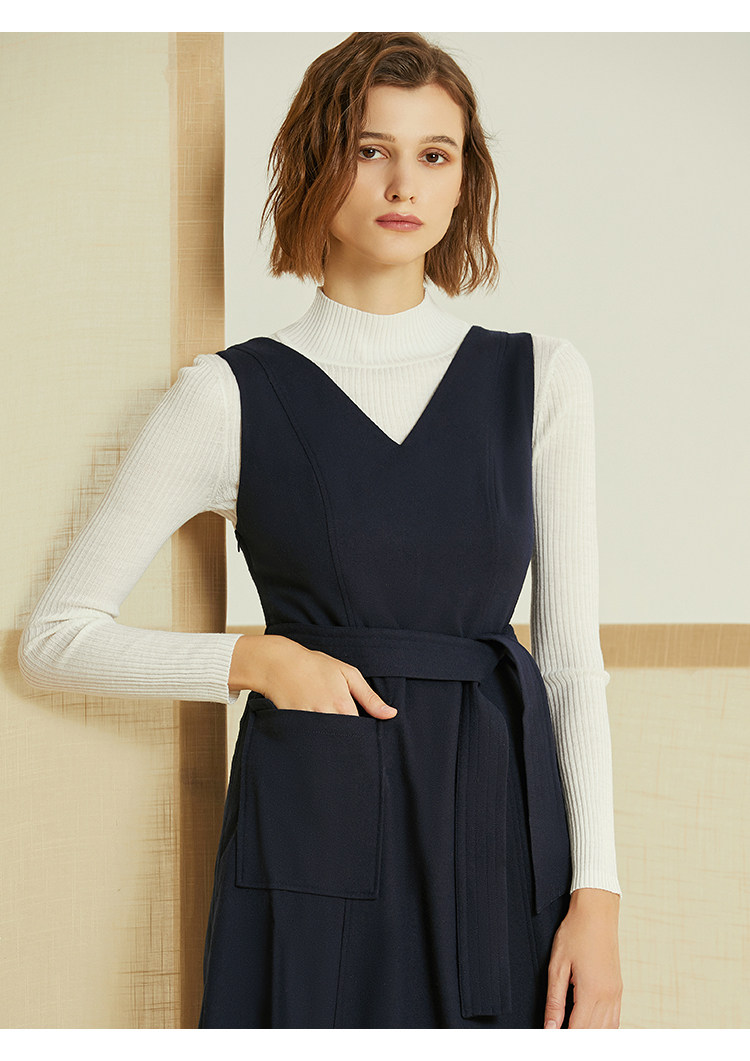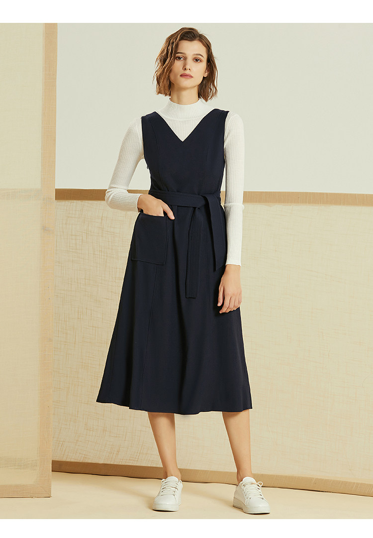 VIMAGE-纬漫纪春款时尚通勤V领显瘦纯色收腰连衣裙女中款V1207834