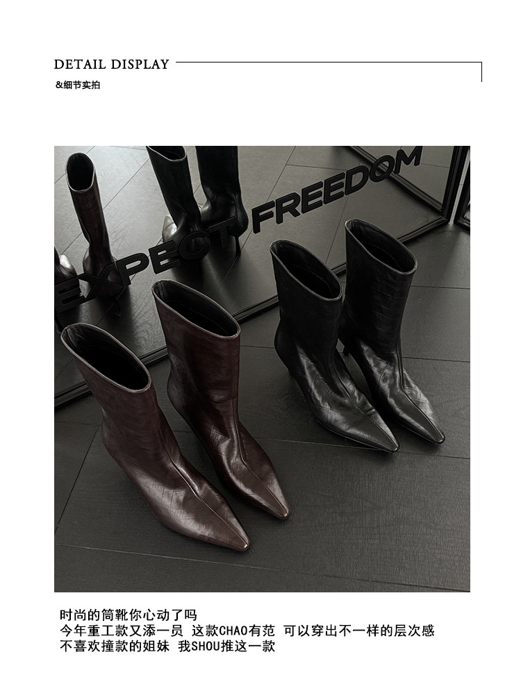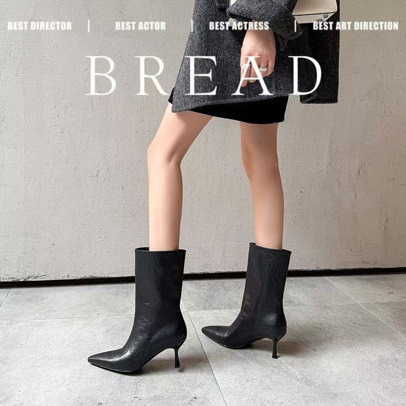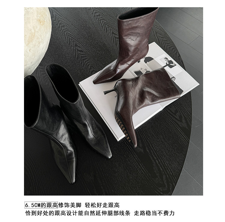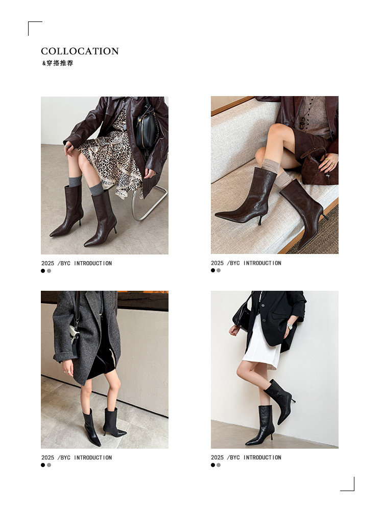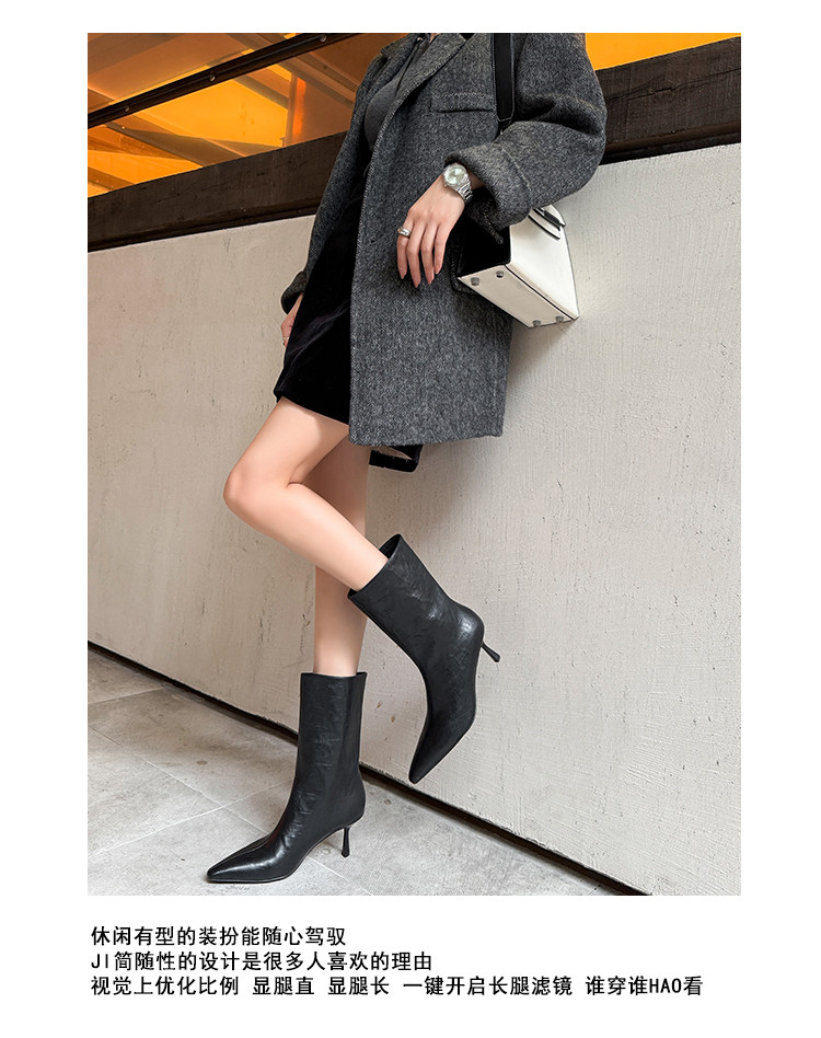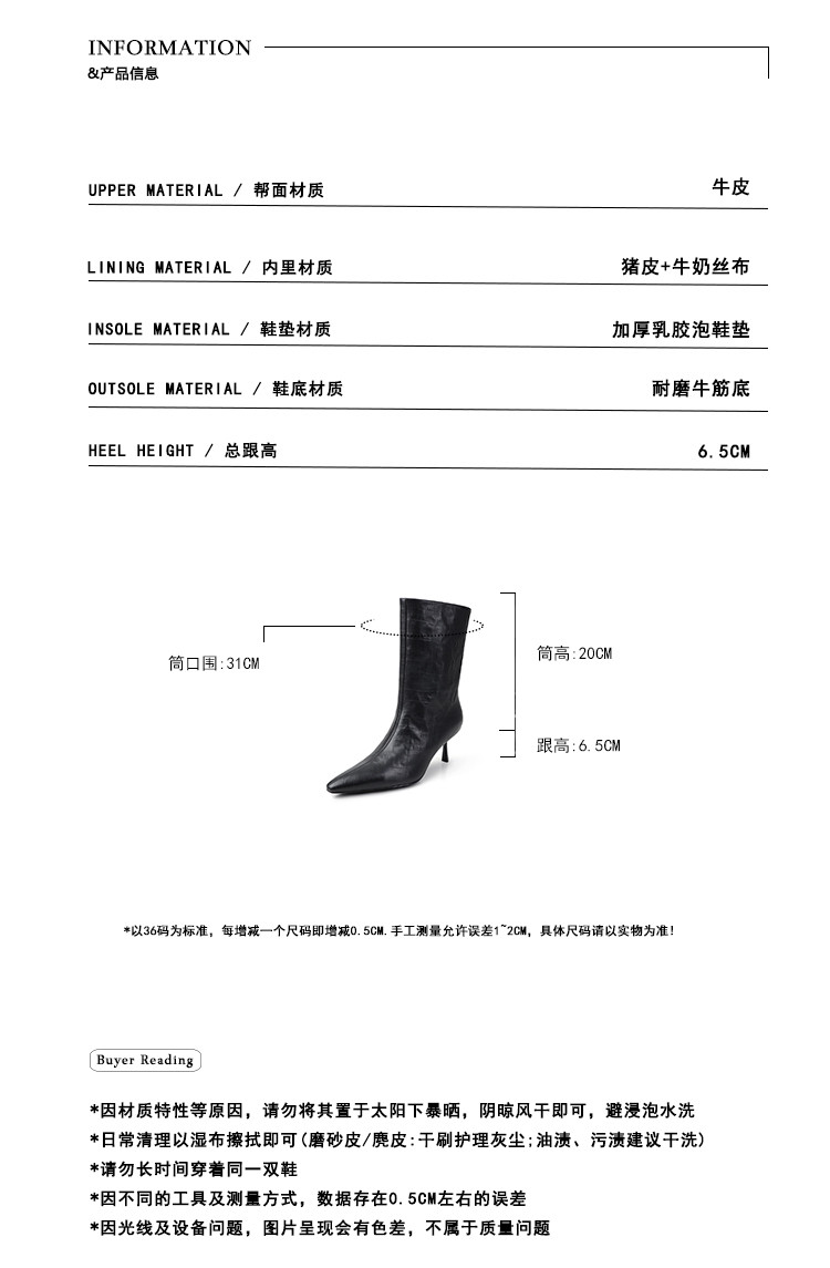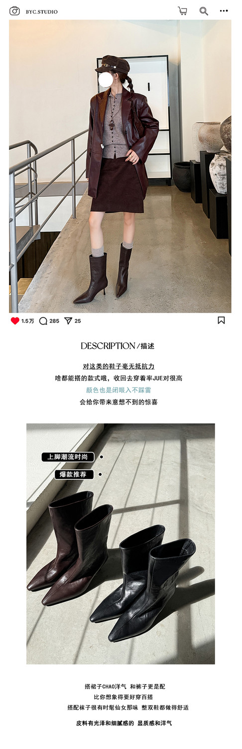 【预售5天】秋冬季牛皮尖头显瘦时装靴高跟鞋一脚蹬加绒大筒围中筒靴子女DY&DY12740