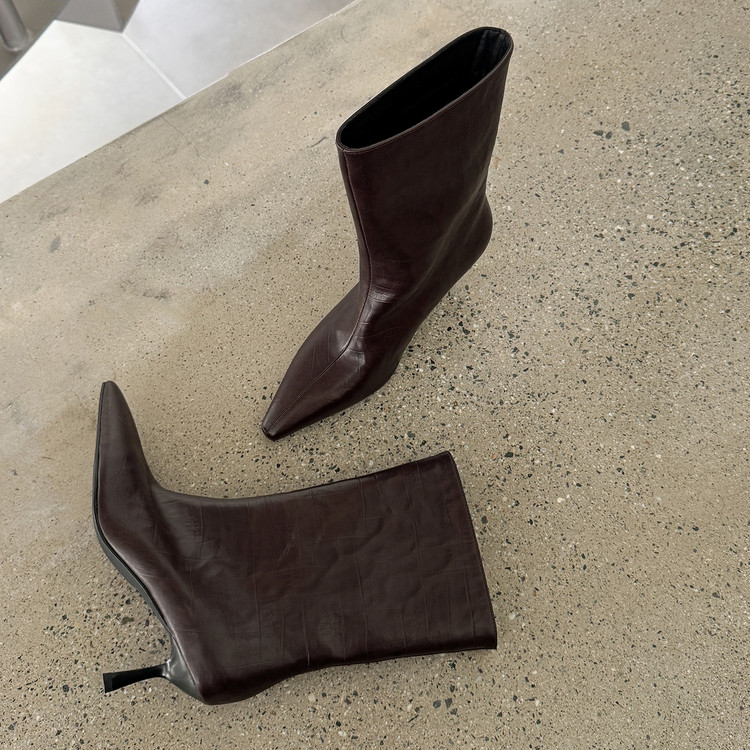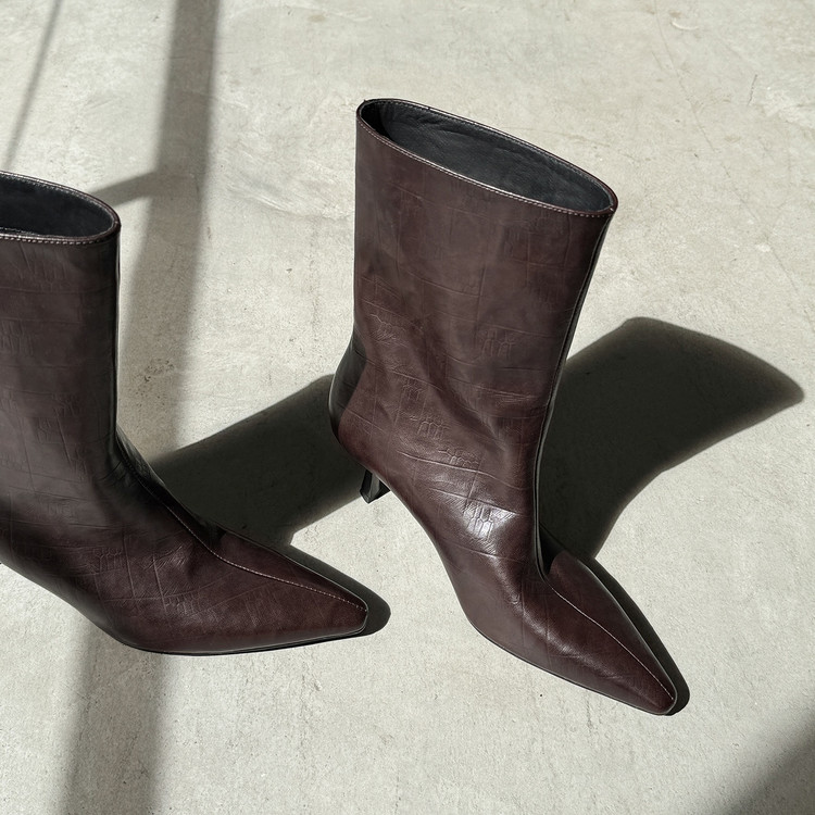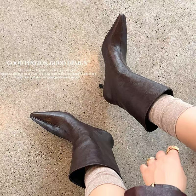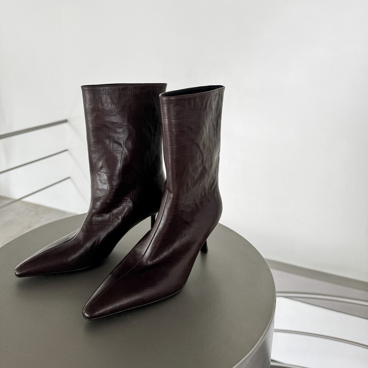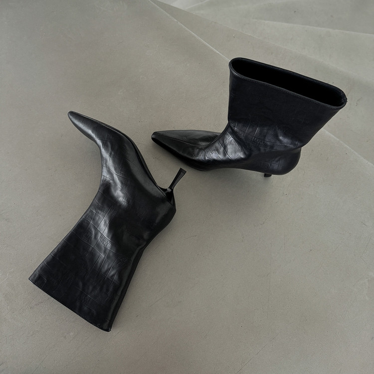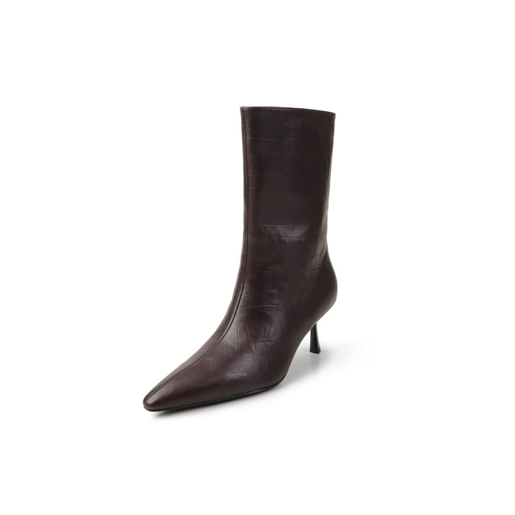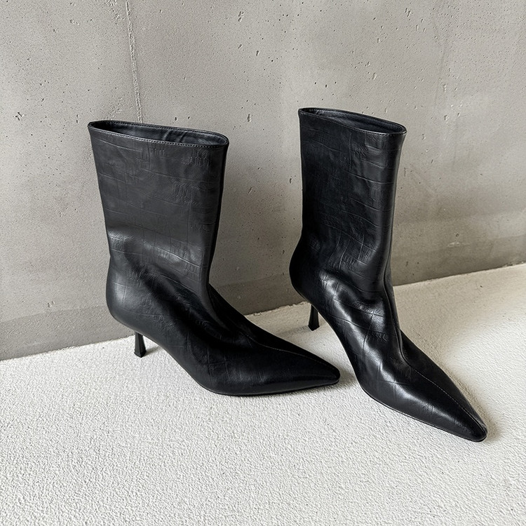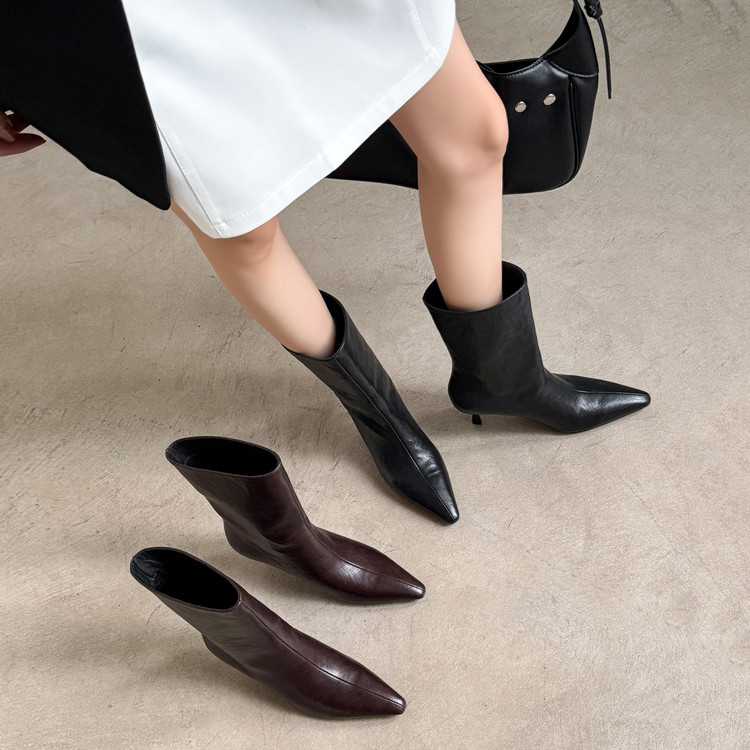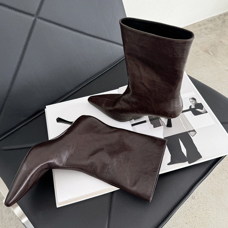 【预售5天】秋冬季牛皮尖头显瘦时装靴高跟鞋一脚蹬加绒大筒围中筒靴子女DY&DY12740