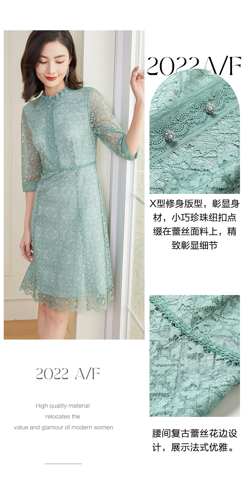 乔万尼新款轻礼服连衣裙女初春气质法式蕾丝高腰显瘦EF3E863