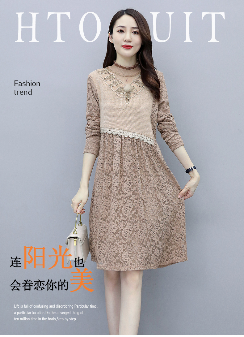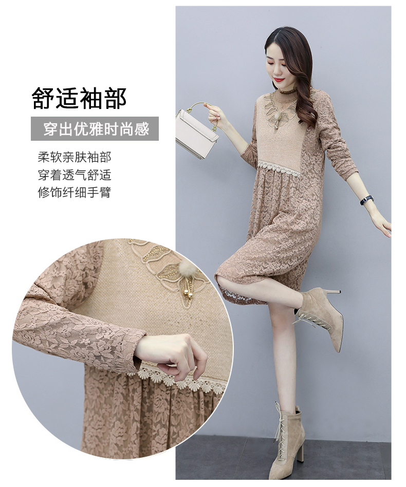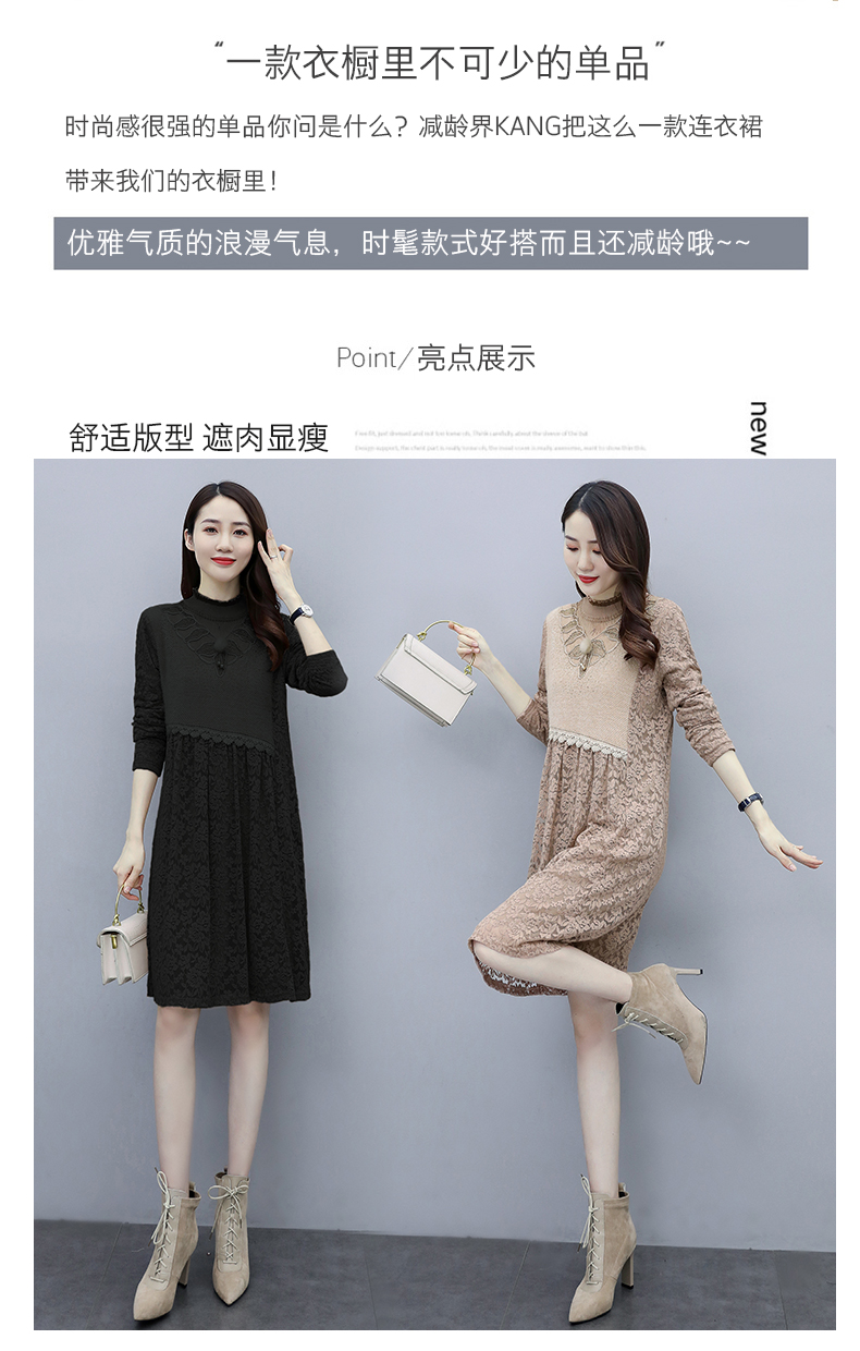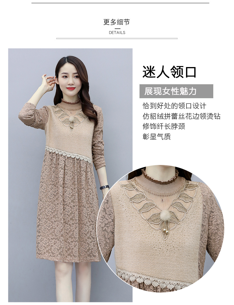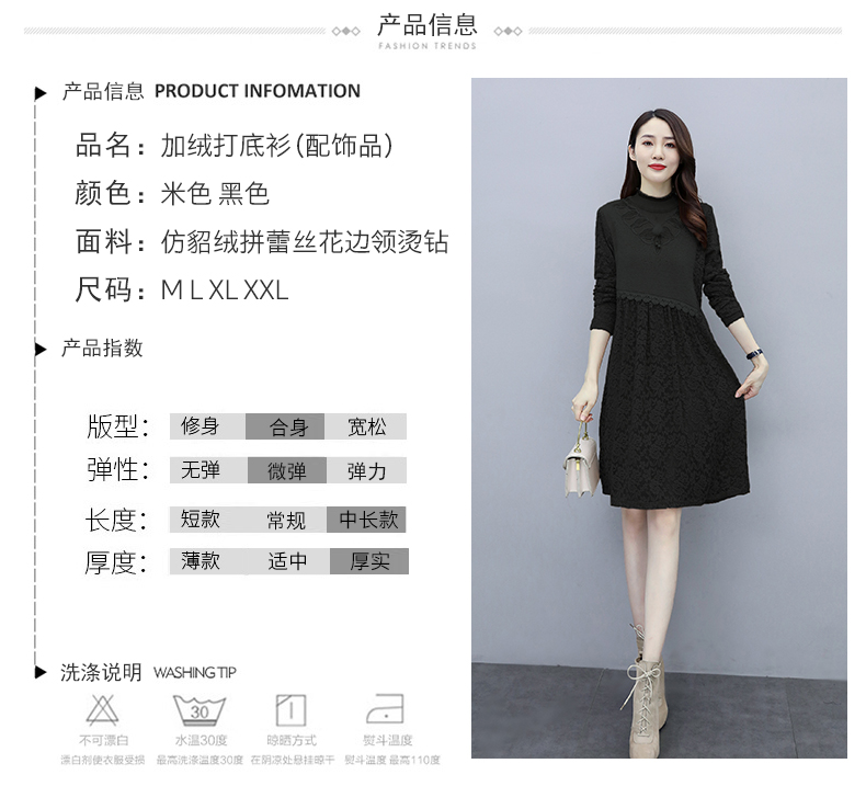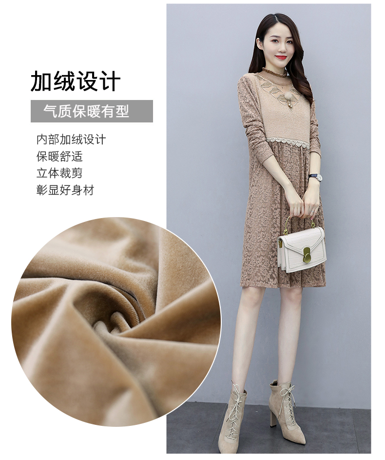 WZNH-AZRN837冬季新款仿貂绒拼蕾丝花边领烫钻加绒打底衫连衣裙