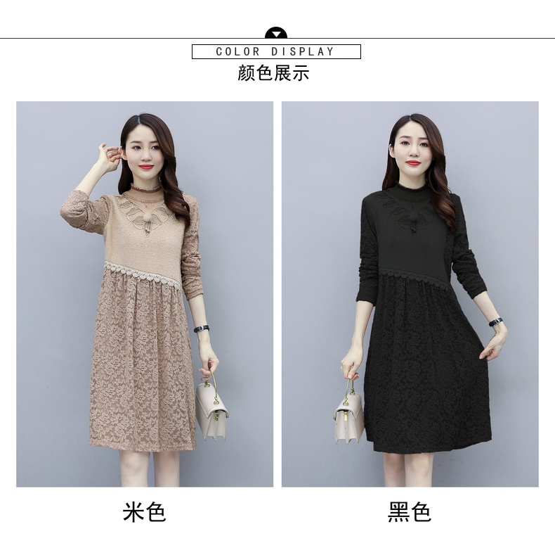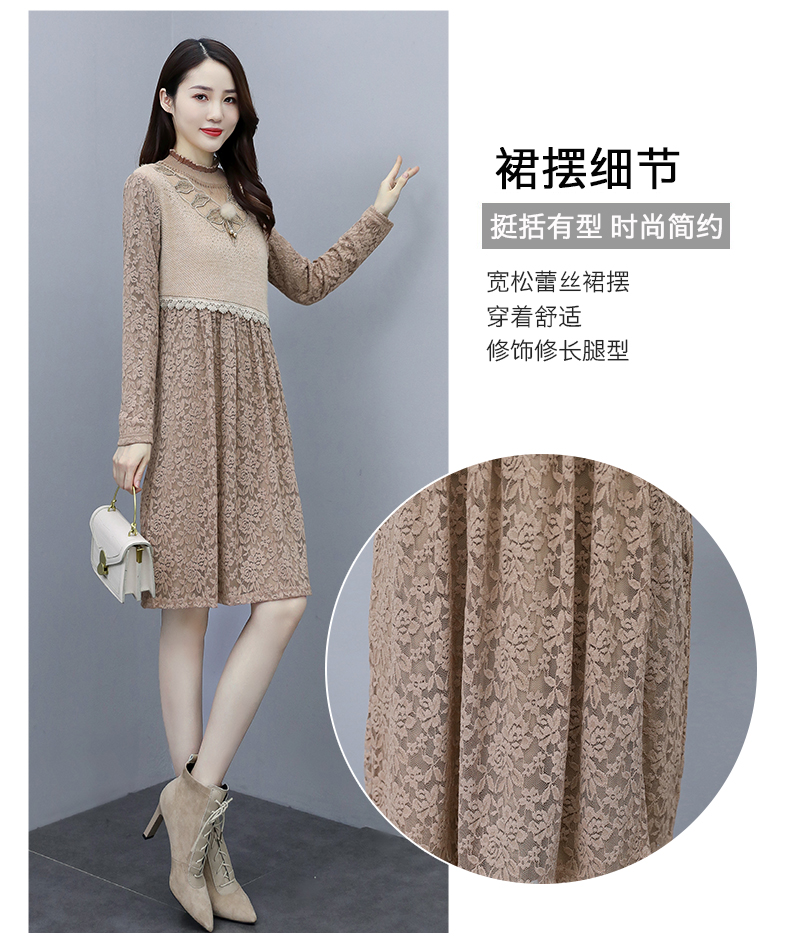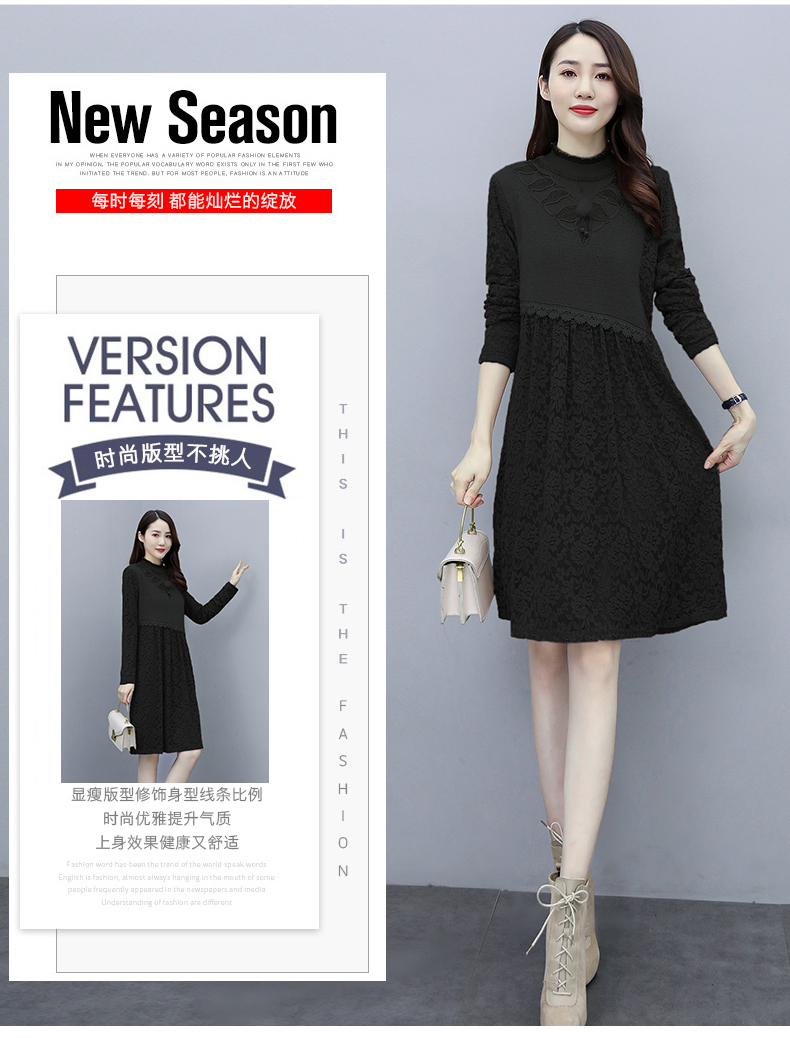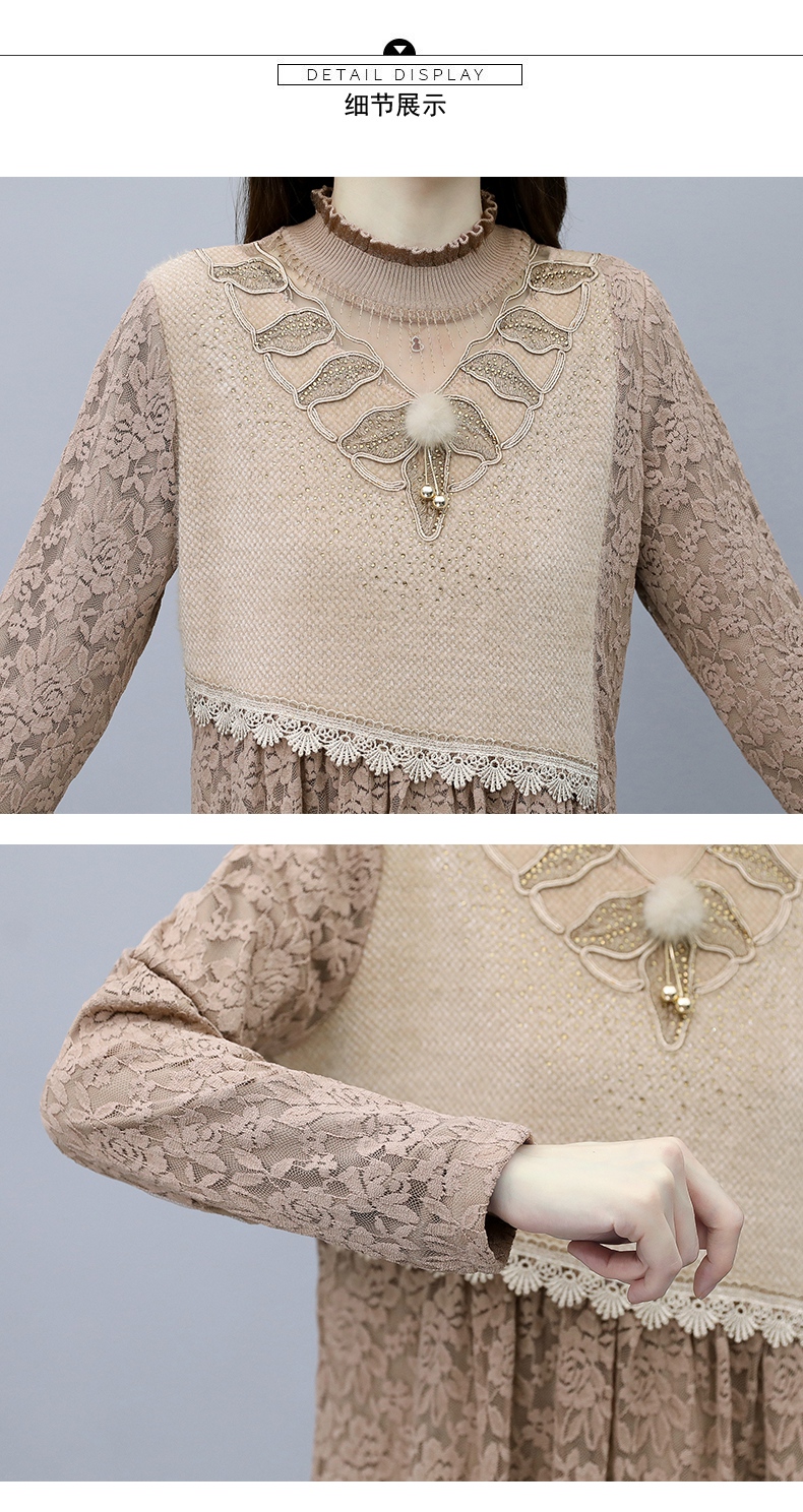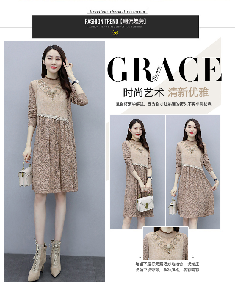 WZNH-AZRN837冬季新款仿貂绒拼蕾丝花边领烫钻加绒打底衫连衣裙