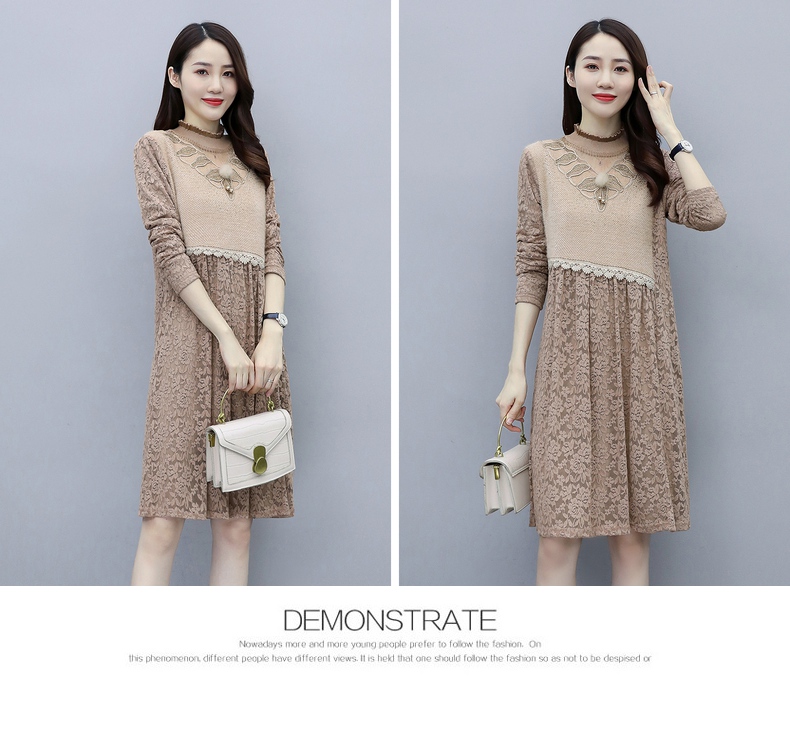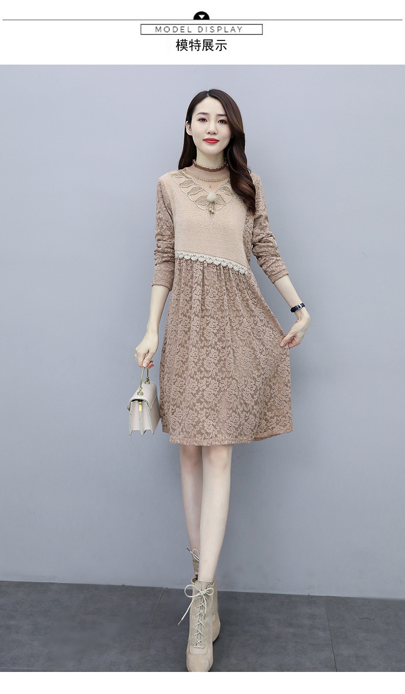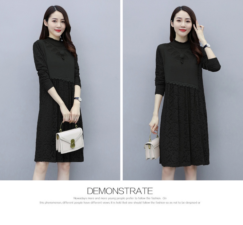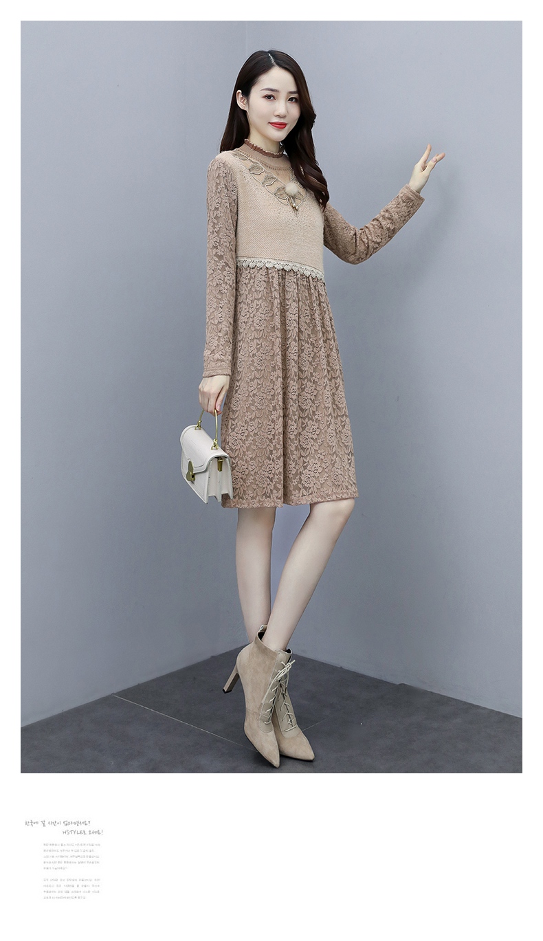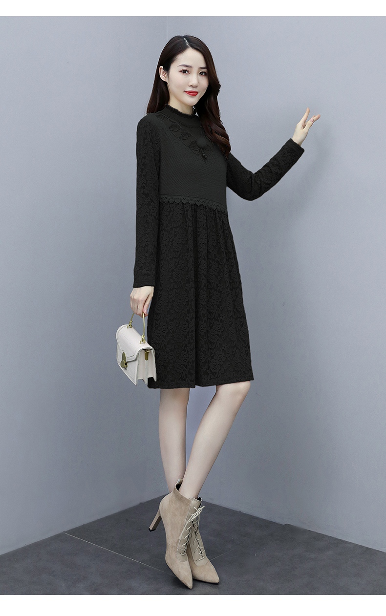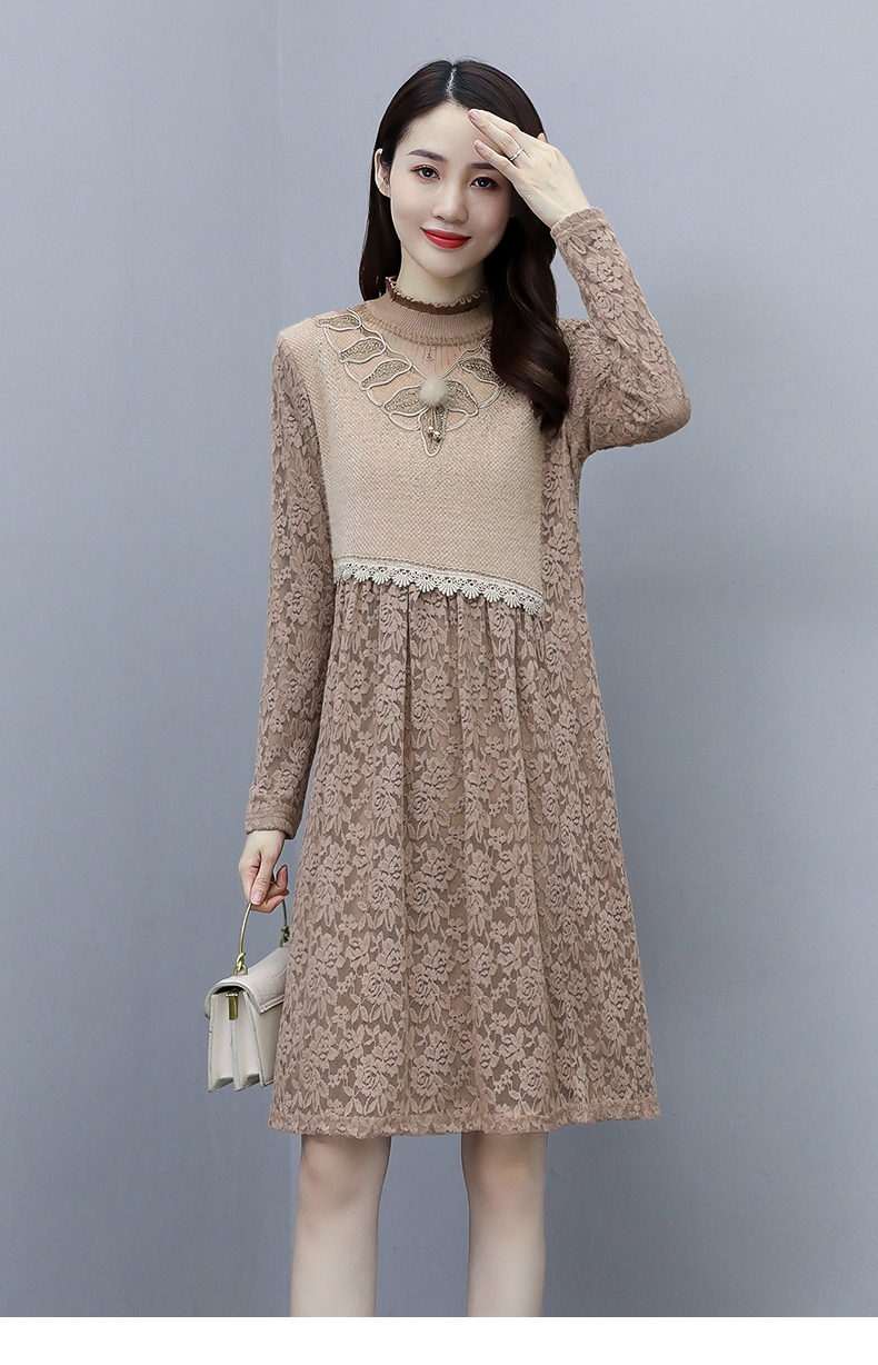 WZNH-AZRN837冬季新款仿貂绒拼蕾丝花边领烫钻加绒打底衫连衣裙