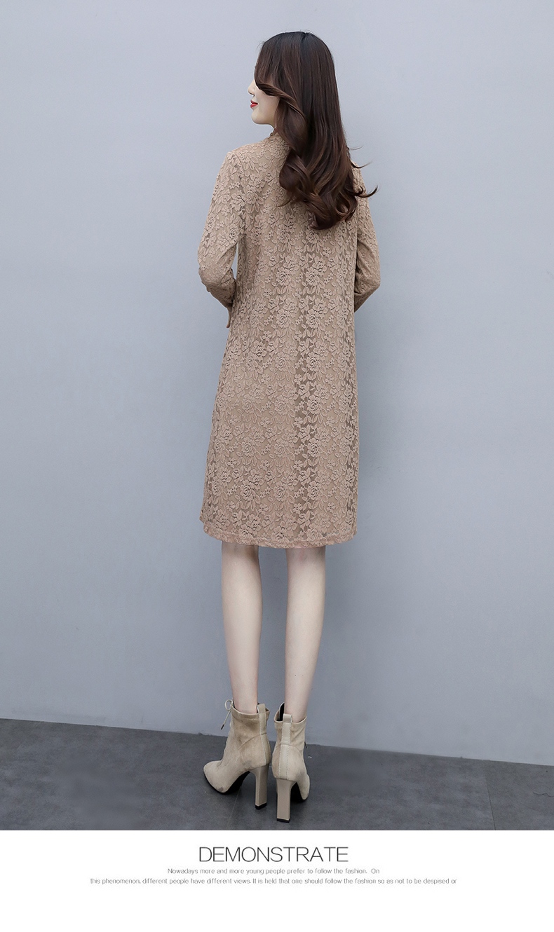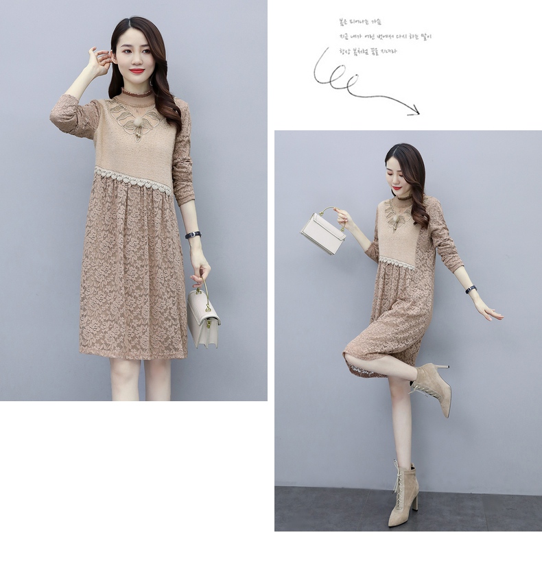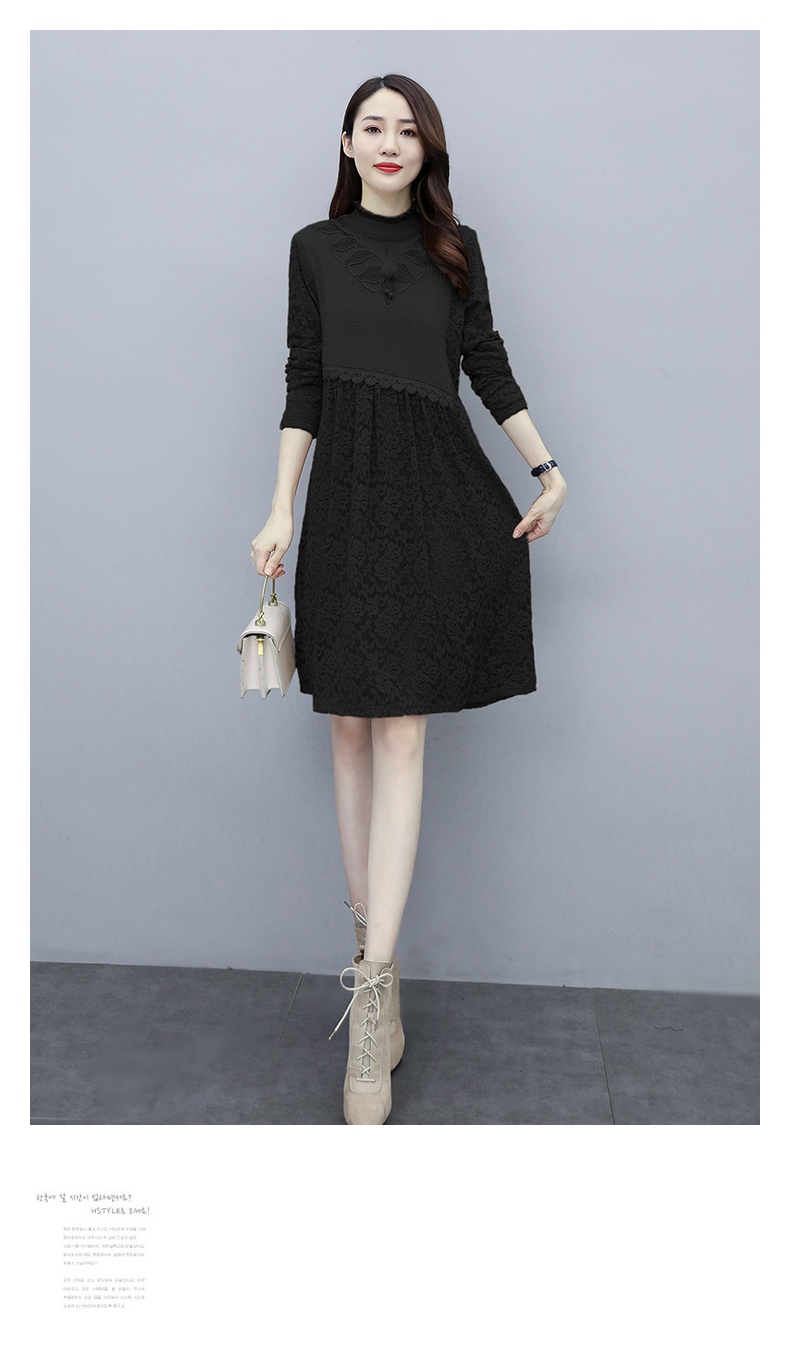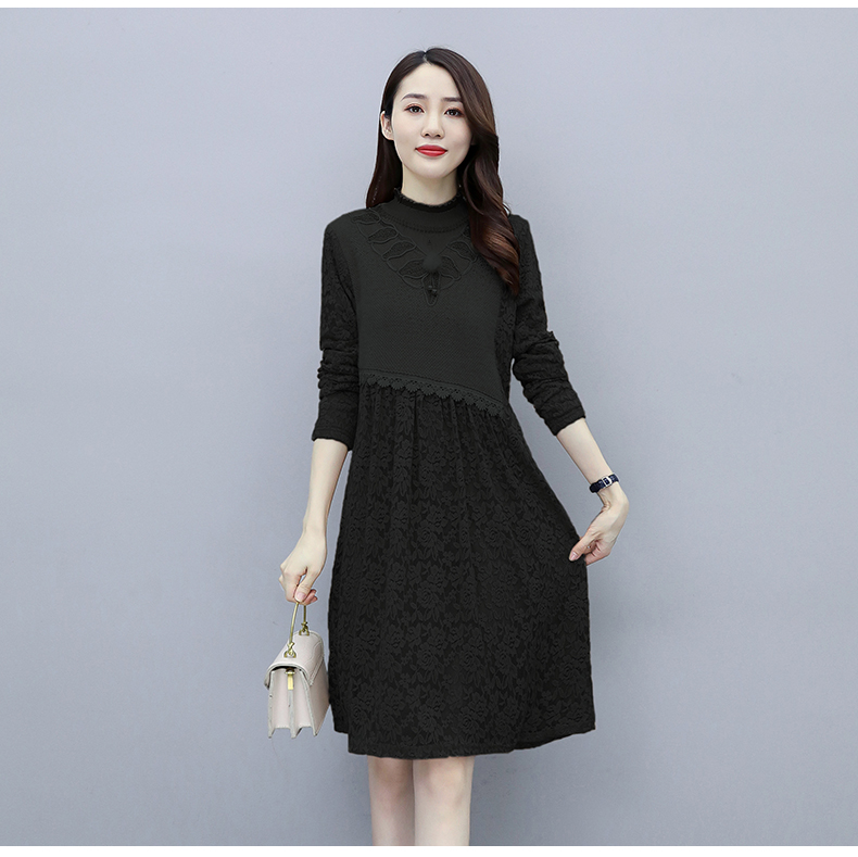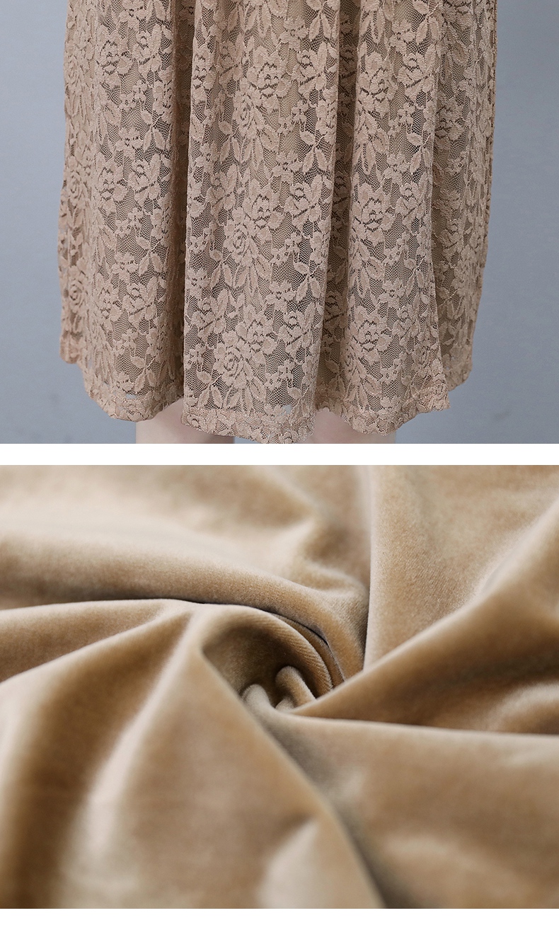 WZNH-AZRN837冬季新款仿貂绒拼蕾丝花边领烫钻加绒打底衫连衣裙