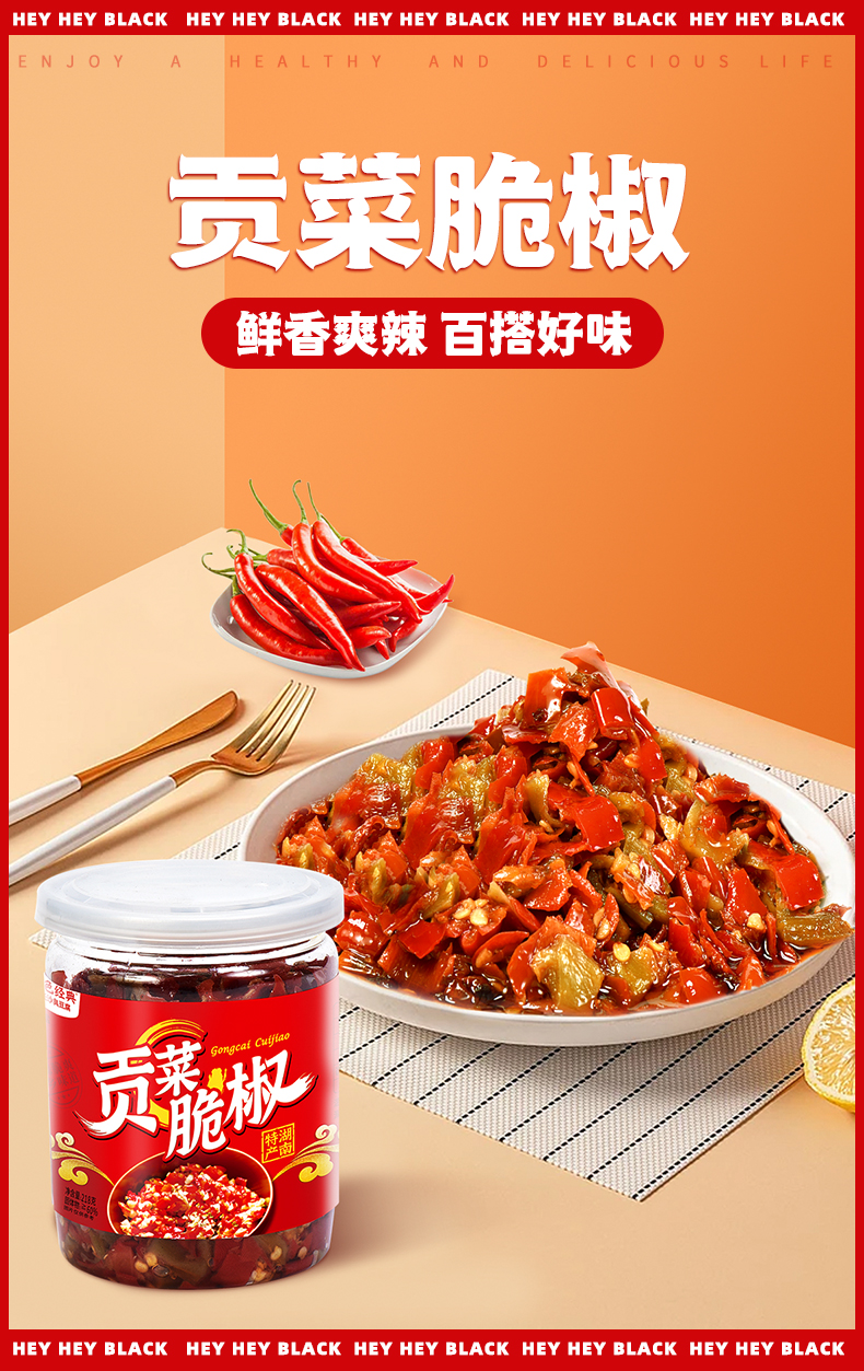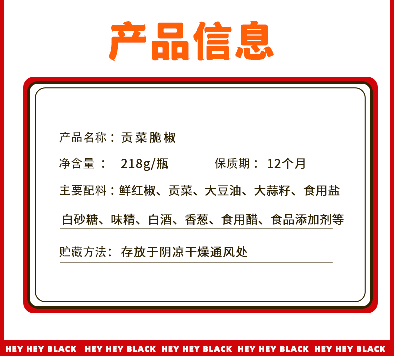 【下饭好酱】黑色经典贡菜脆椒218g/瓶 香香辣辣嘎嘣脆