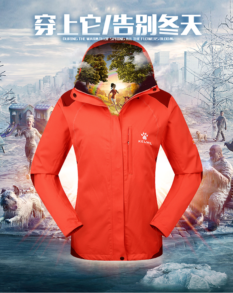 卡尔美冬季修身显瘦冲锋外套两件套女外套K46C1014 商品图1