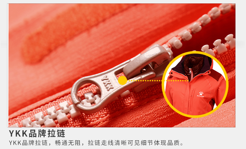 卡尔美冬季修身显瘦冲锋外套两件套女外套K46C1014 商品图6
