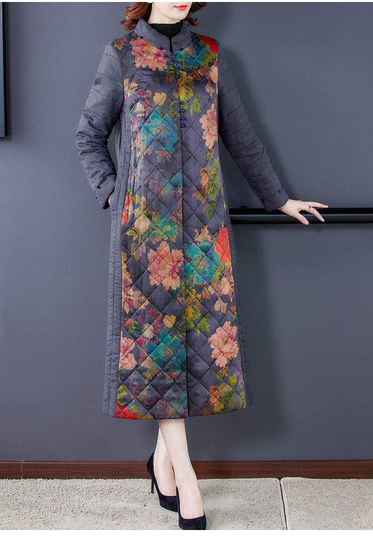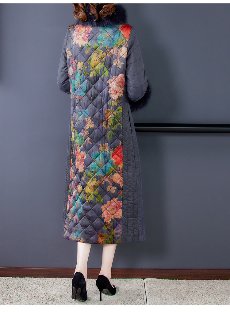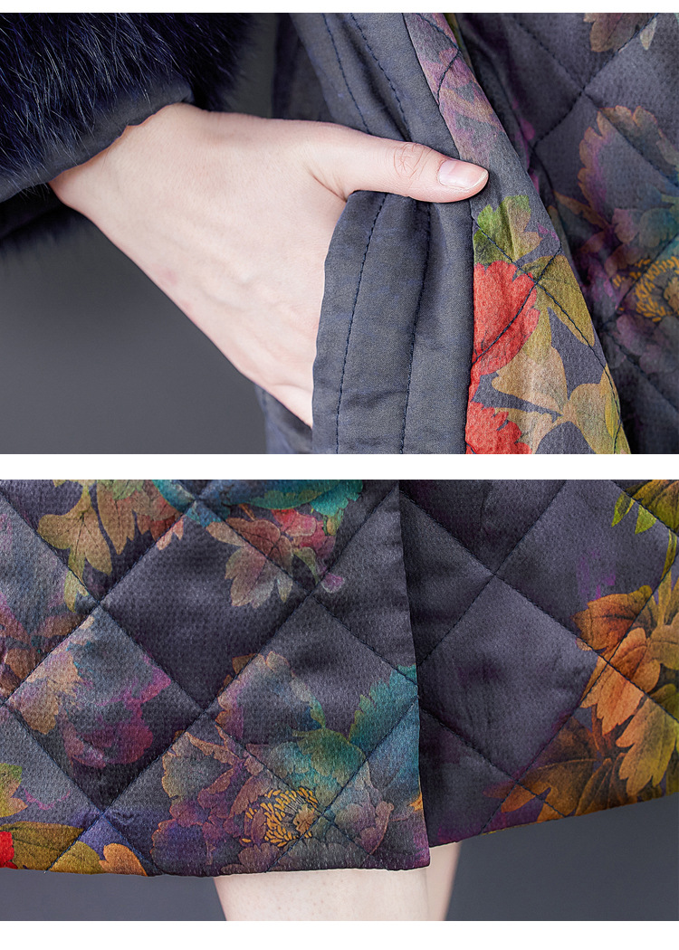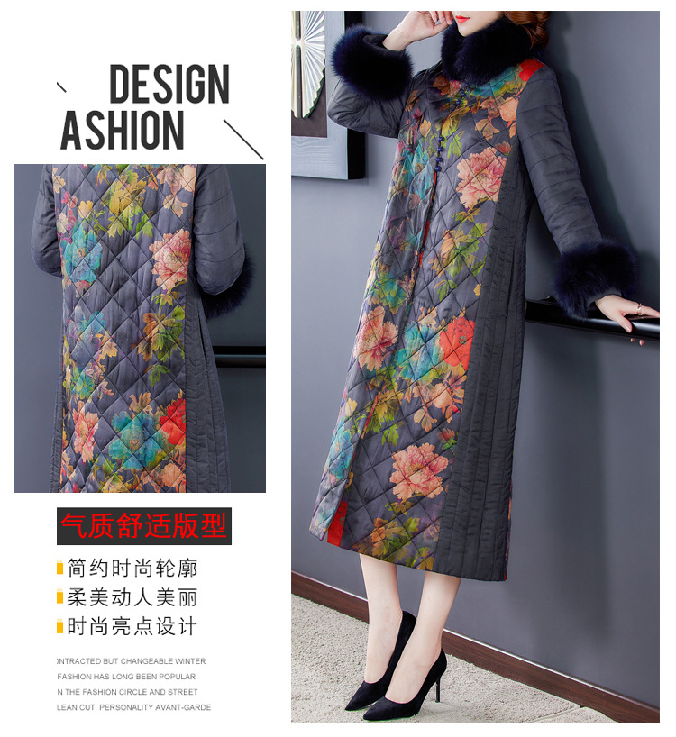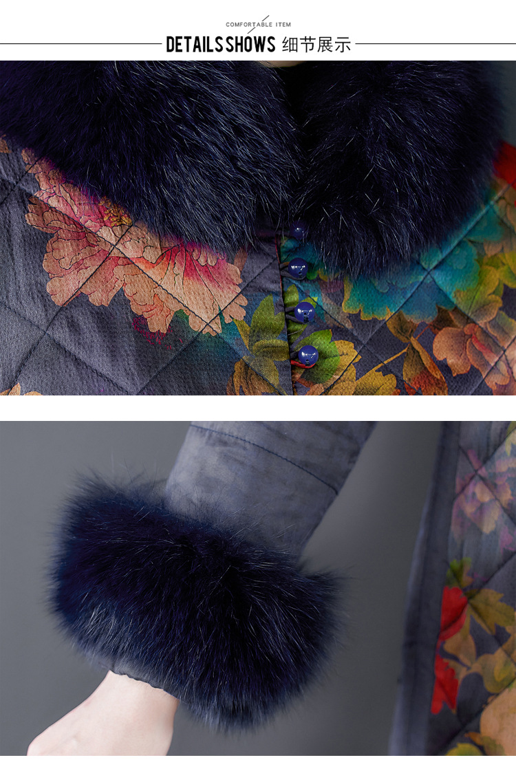AHM-qw9089狐狸毛领外套棉衣长袖中长款时尚气质优雅显瘦复古大衣
