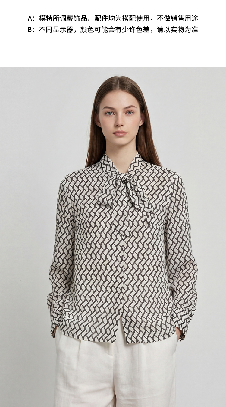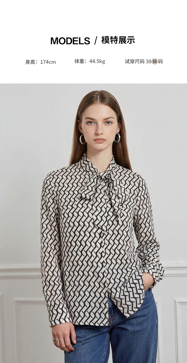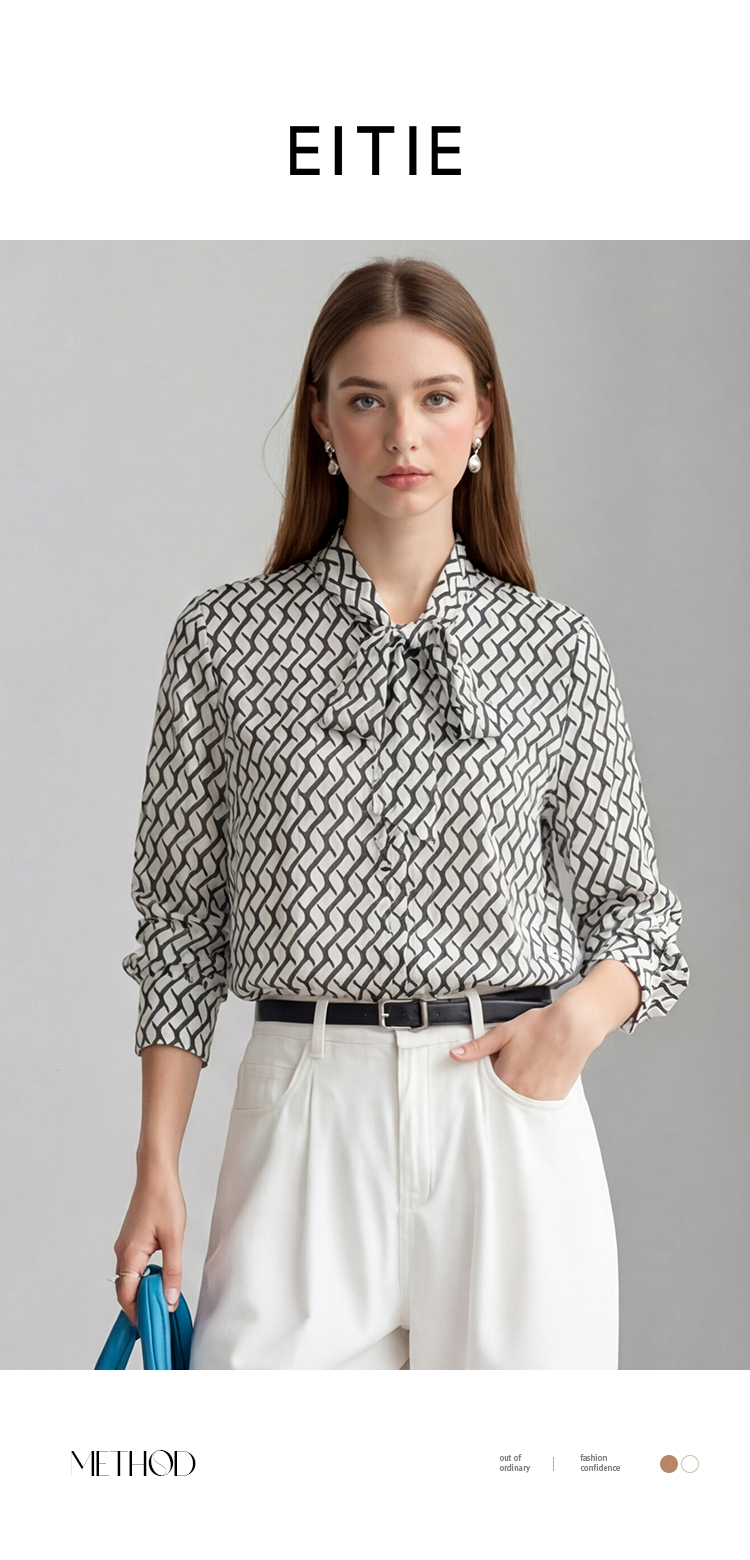 EITIE爱特爱气质飘带通勤百搭印花衬衫上衣春新款8109801
