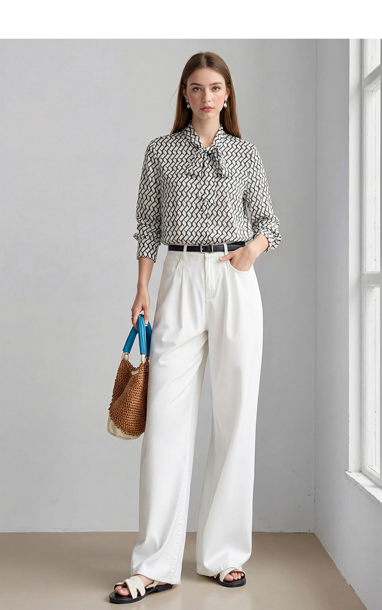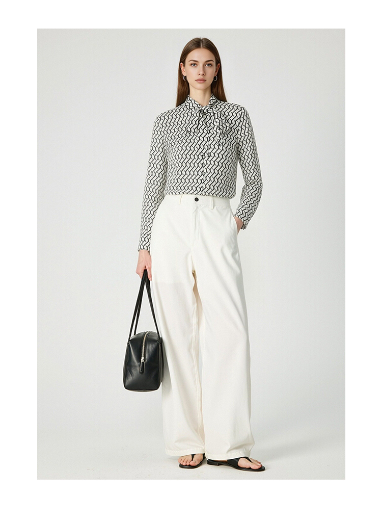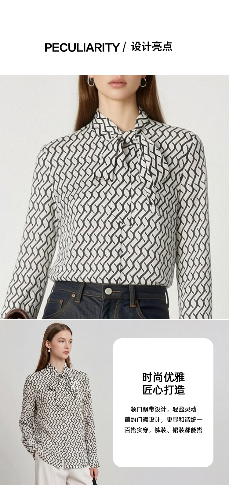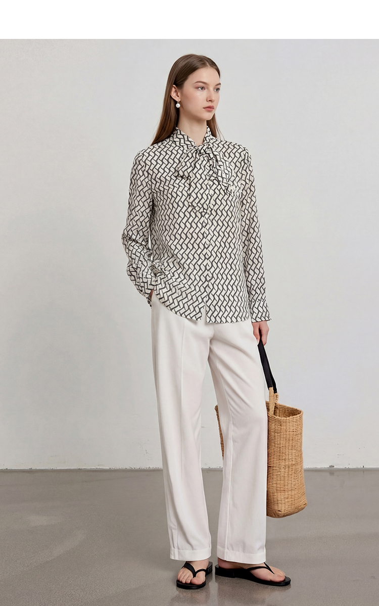 EITIE爱特爱气质飘带通勤百搭印花衬衫上衣春新款8109801