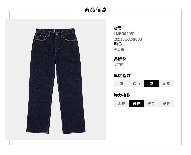 LEE加绒宽松版直筒牛仔裤1110