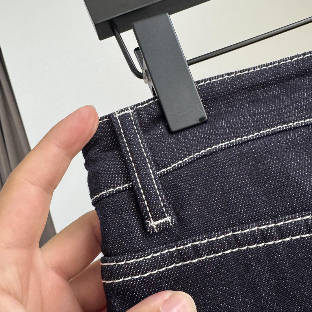 MO&CO复合水貂绒阔腿裤牛仔裤1216