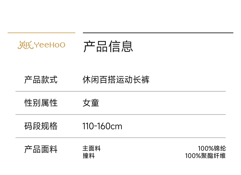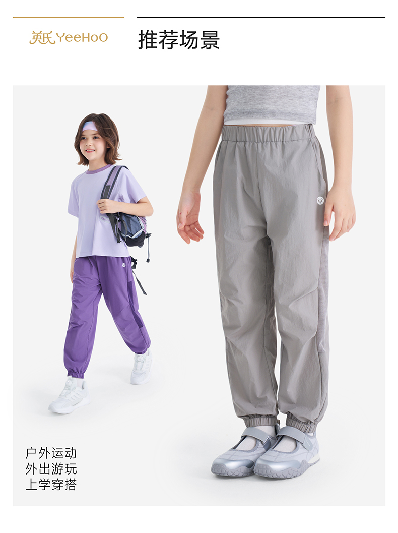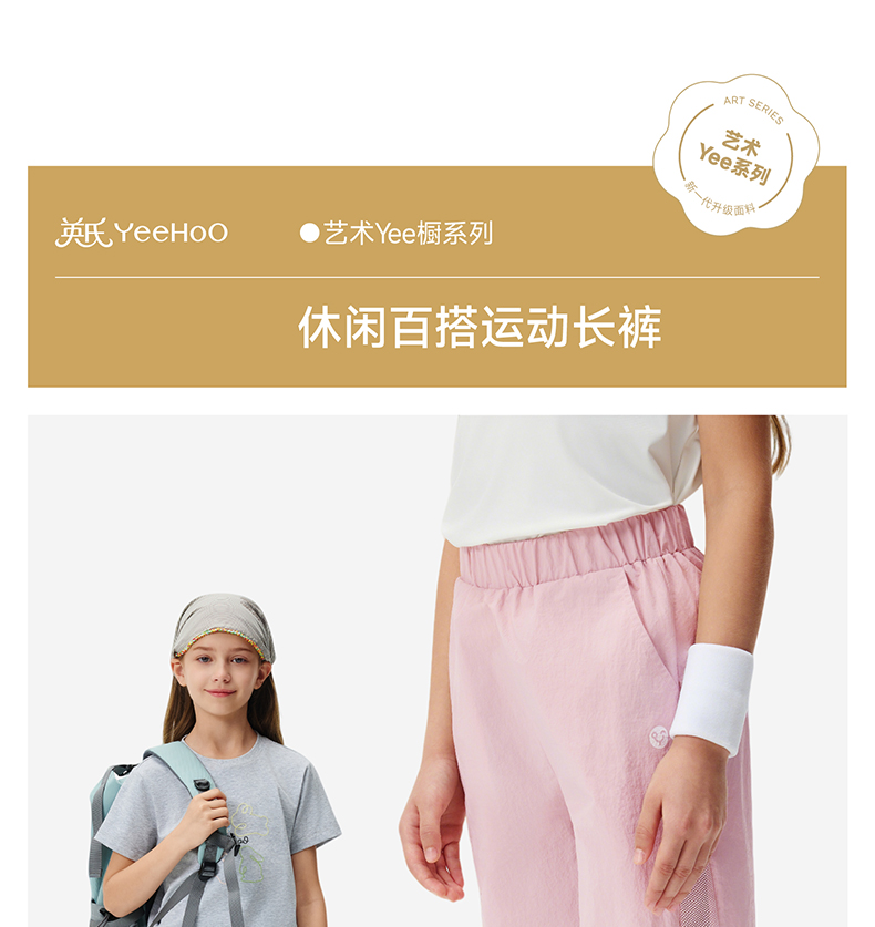 英氏儿童裤子春夏款女童长裤简约舒适2026新款束脚裤休闲百搭长裤