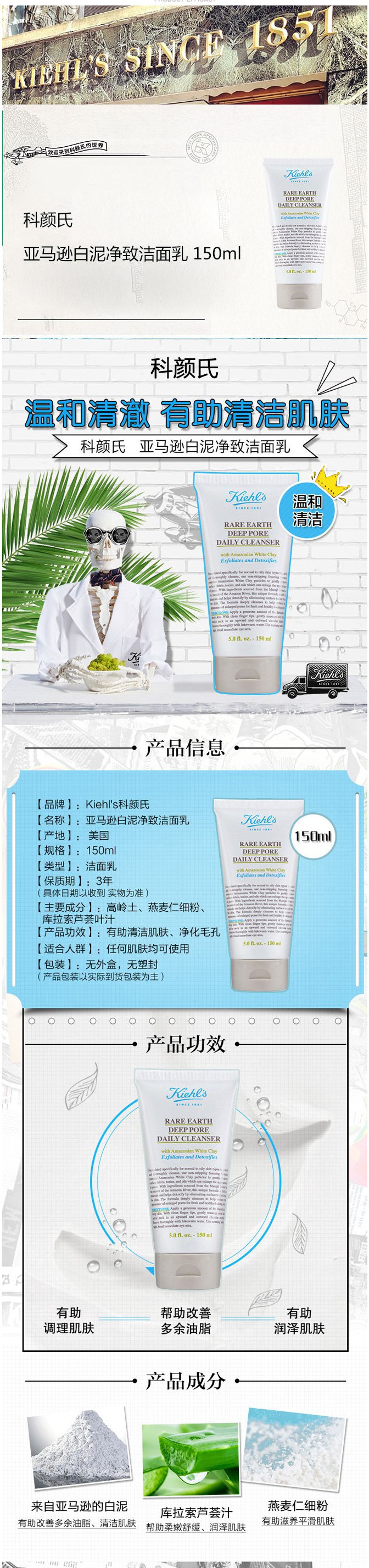 美国 科颜氏白泥洗面奶-150ML