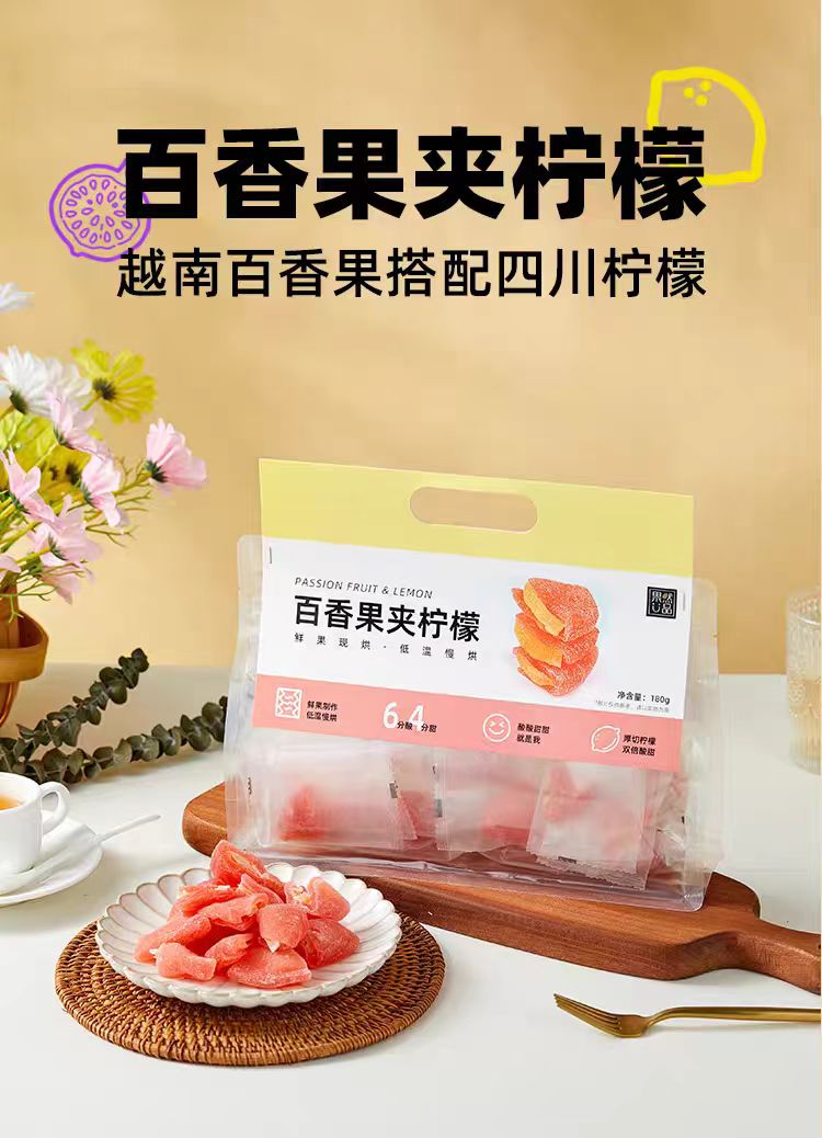 【甄选】百香果夹柠檬鲜果制作低温慢烘酸甜美味清新不腻180g*2袋