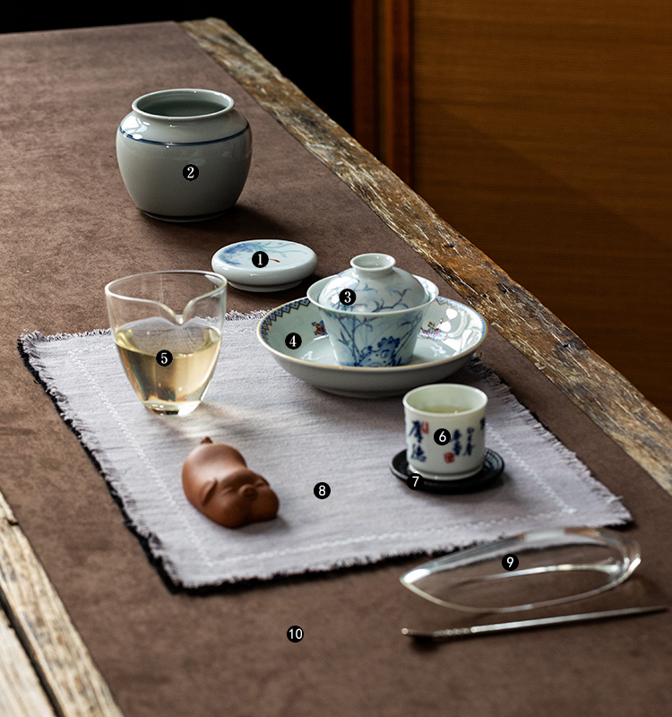 茶香记晴山素华兰寿系列盖置景德镇陶瓷茶桌零配茶室小巧茶具雅致