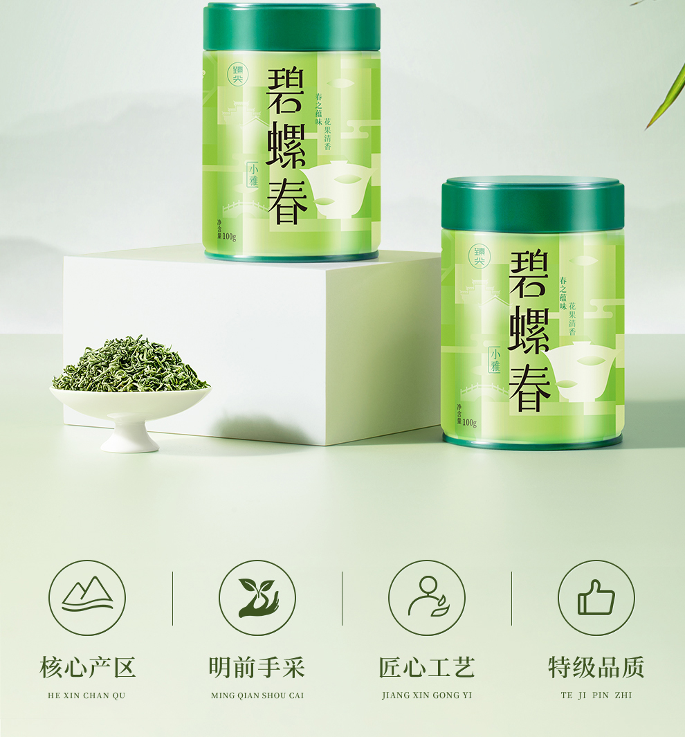 【臻尖-碧螺春小雅】明前新茶碧螺春特级绿茶100g*2罐