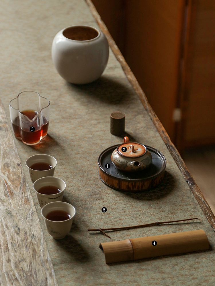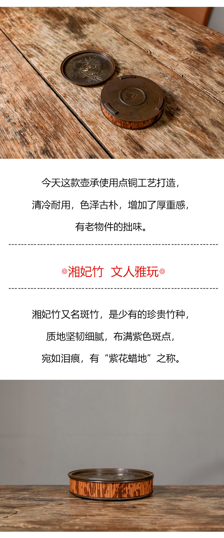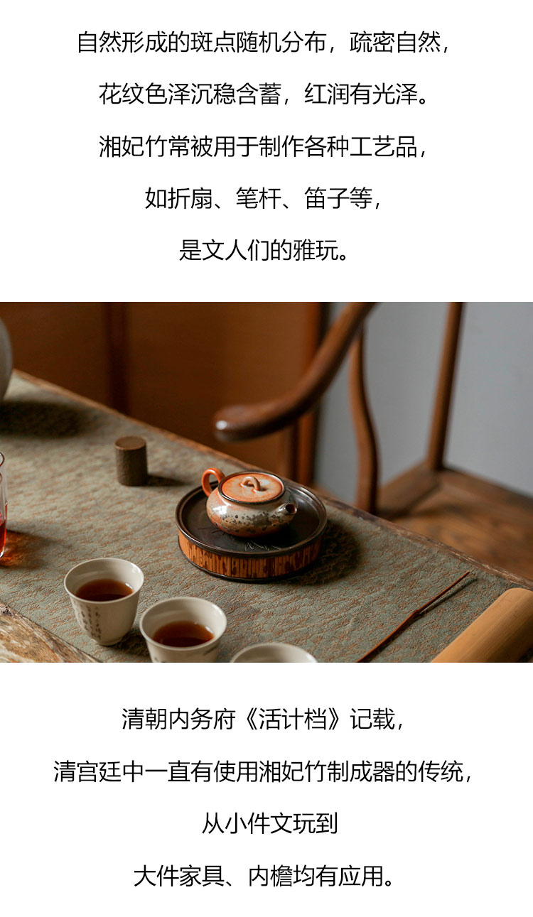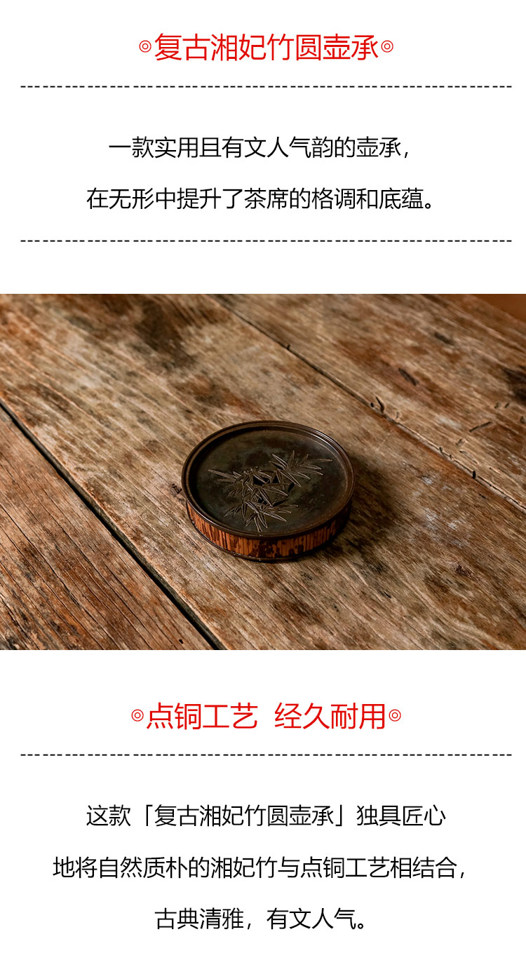 茶香记 复古湘妃竹圆壶承干泡台经久耐用湘妃竹文人雅玩茶桌零配