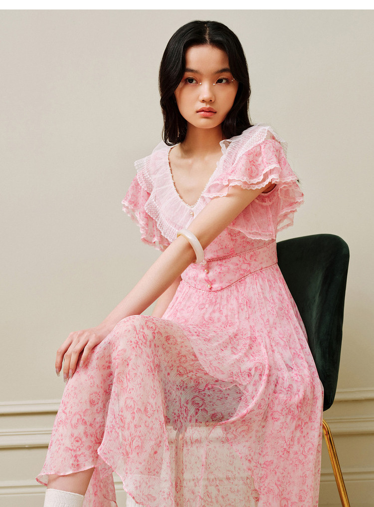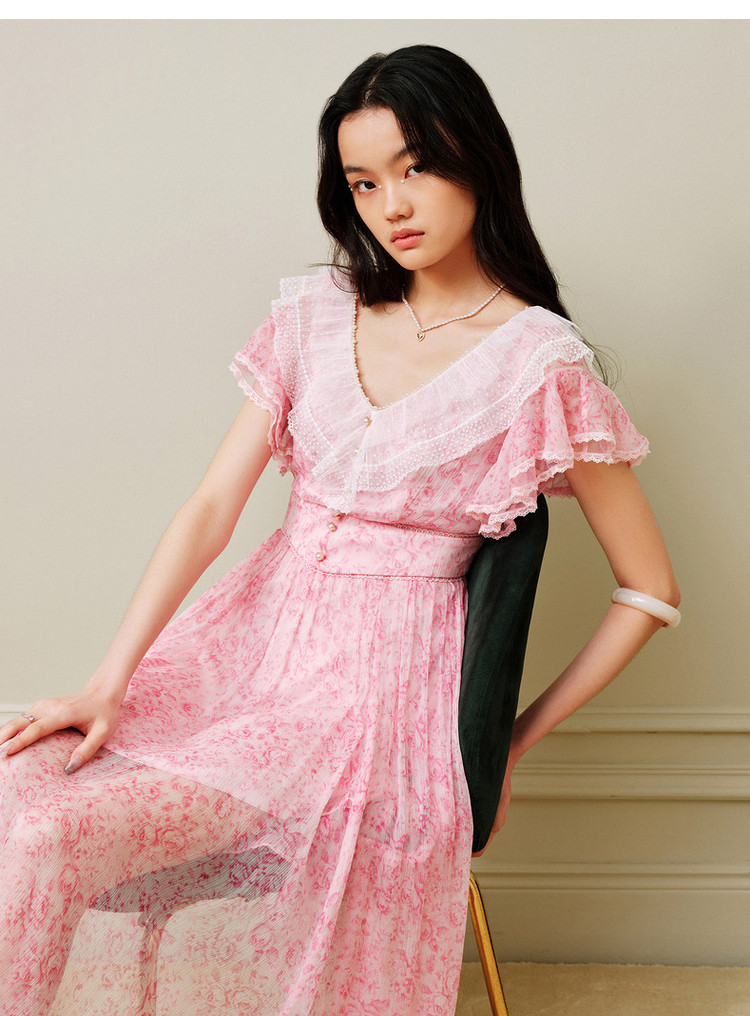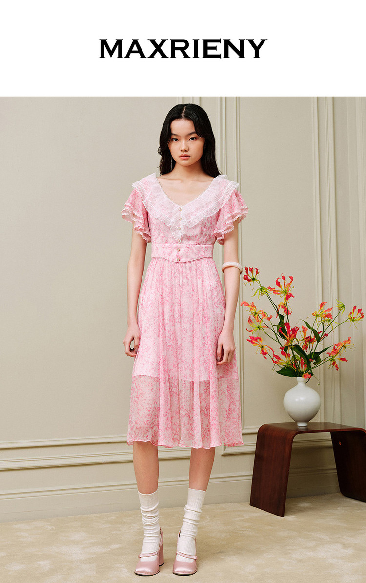 MAXRIENY浪漫氛围感碎花真丝连衣裙2023新款度假风裙子MS88DR072F10