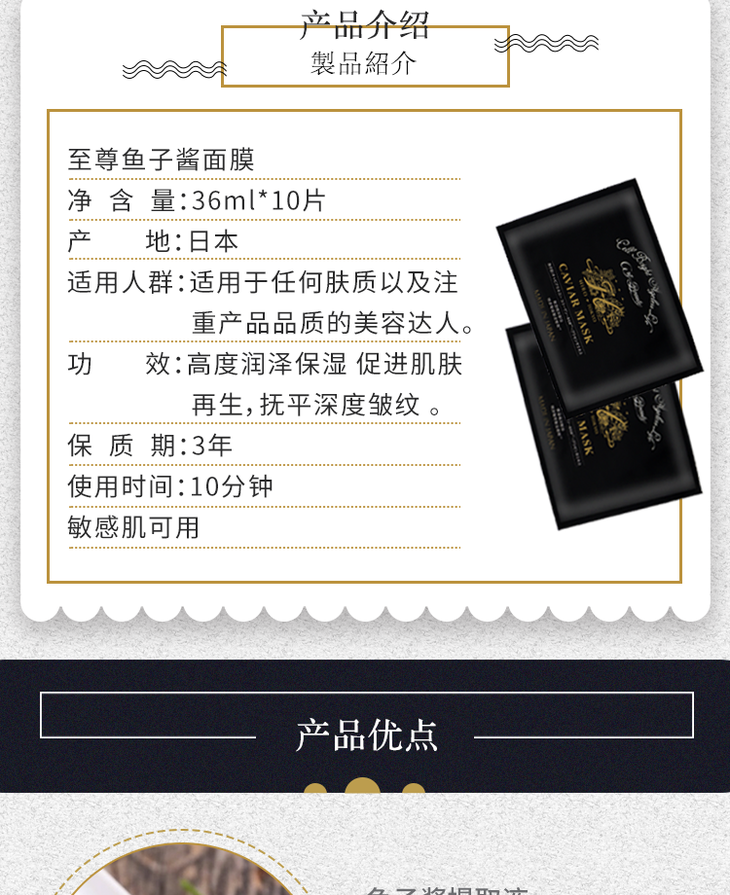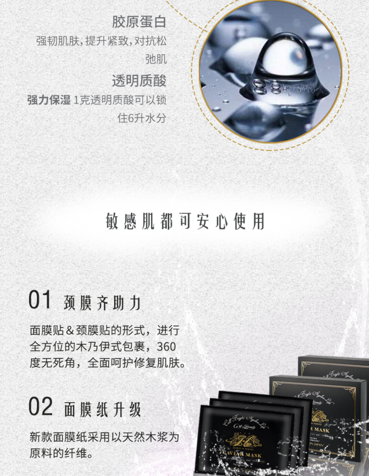 希洛hirosophy索菲新款至尊鱼子酱面膜颈膜深度补水保湿10片装