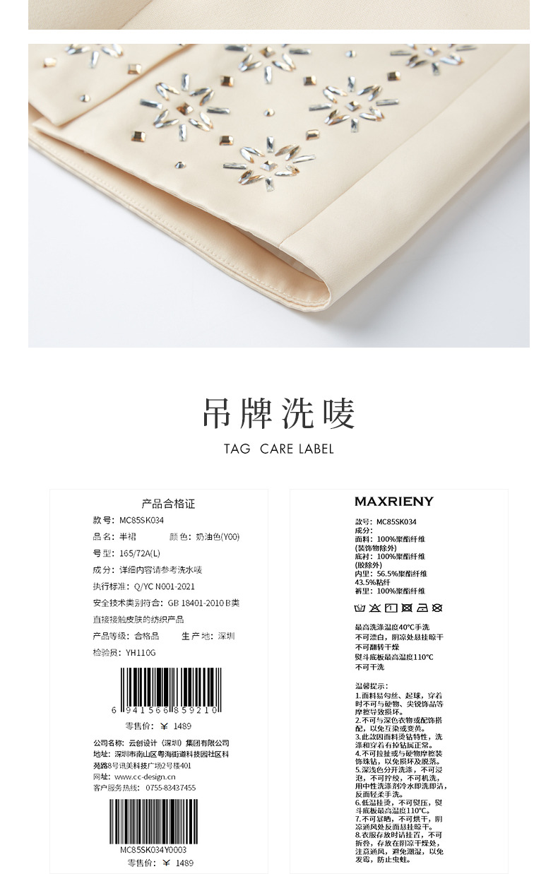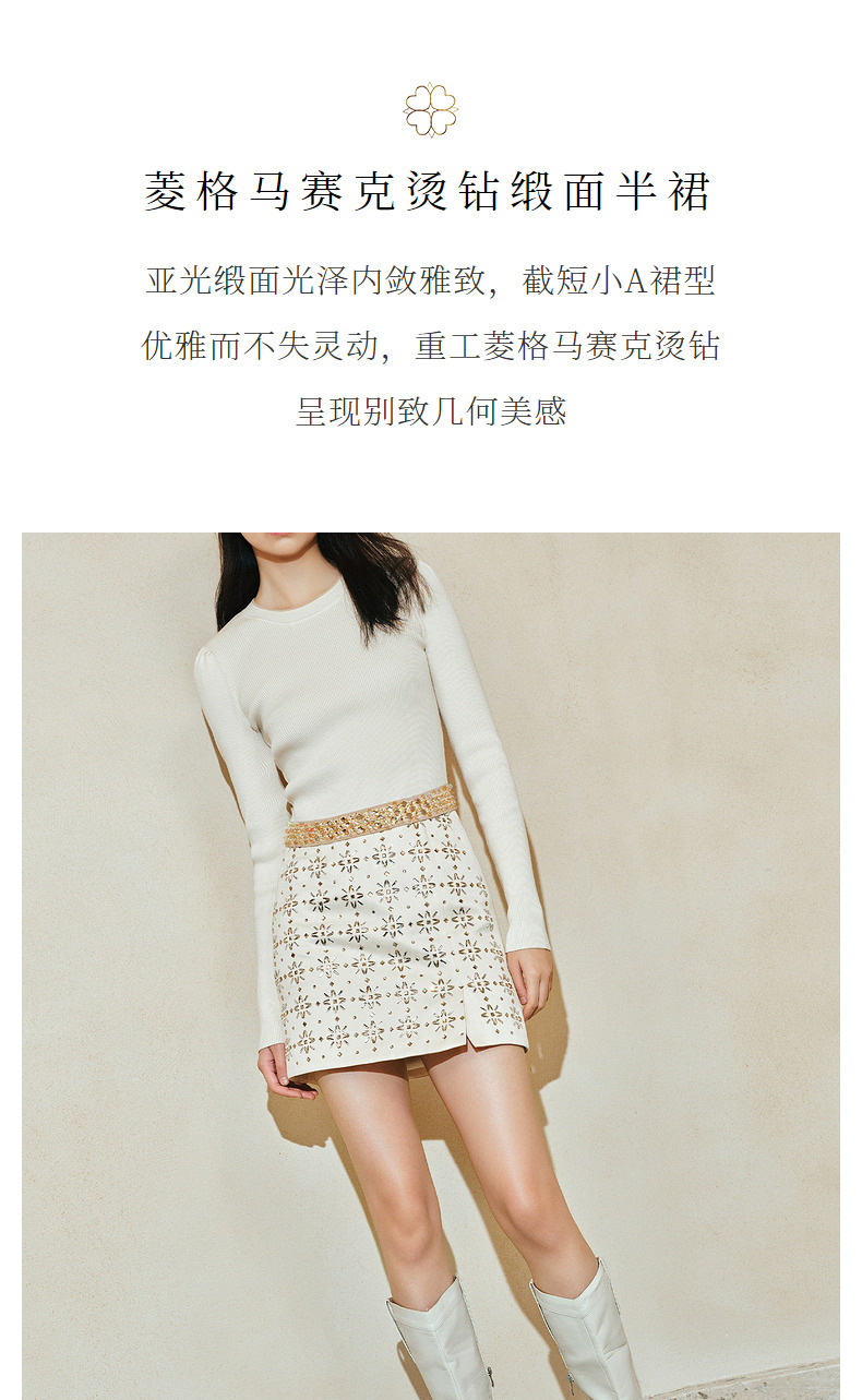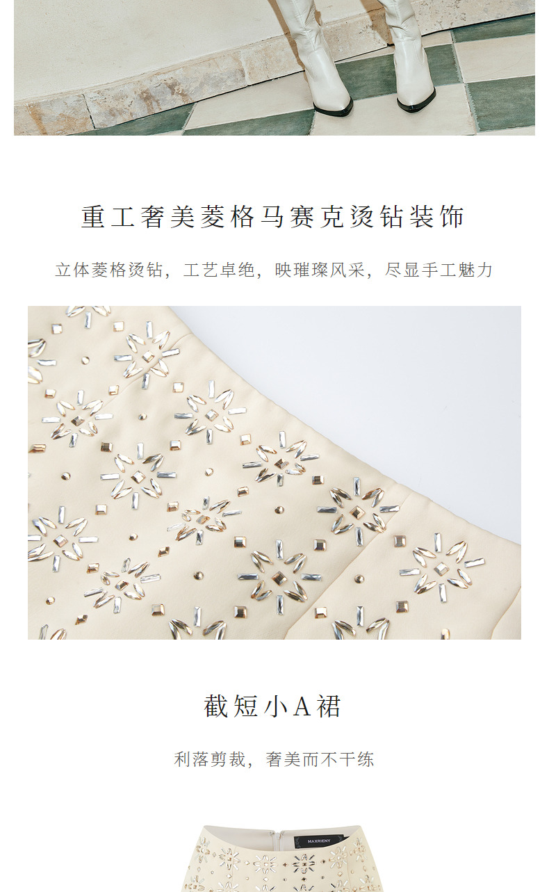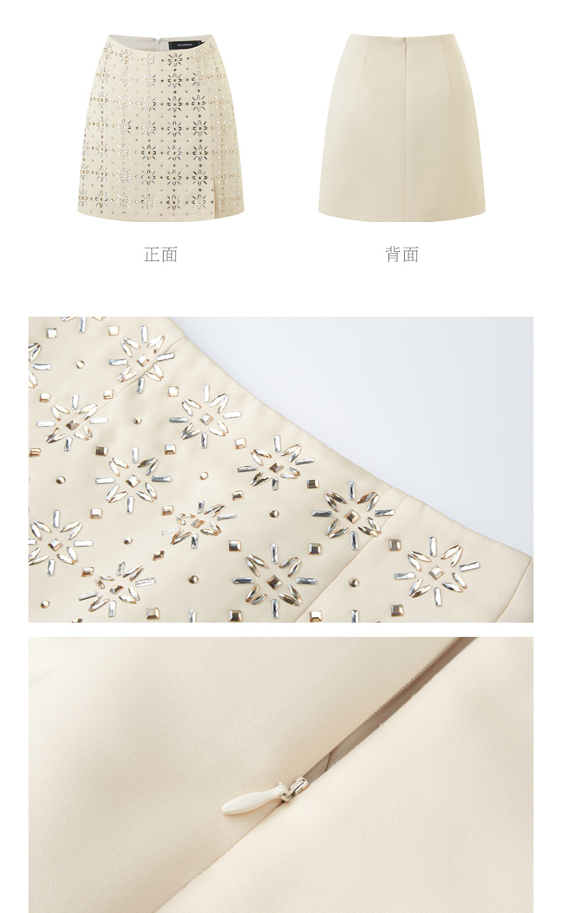 【商场同款-都市华丽日常】MAXRIENY烫钻缎面半裙宴会晚会穿搭女(货号:MC85SK034)