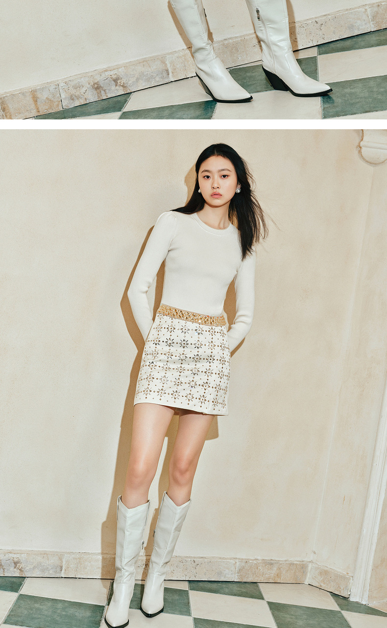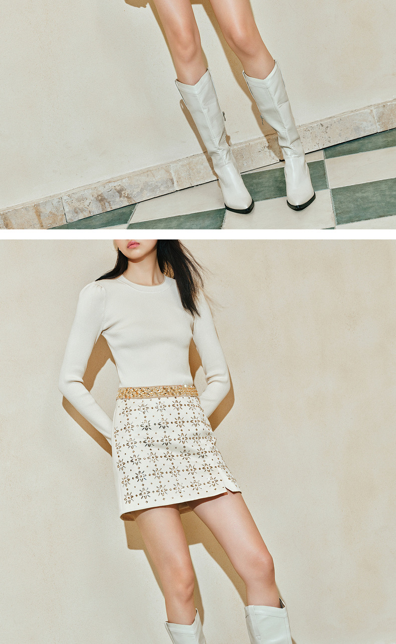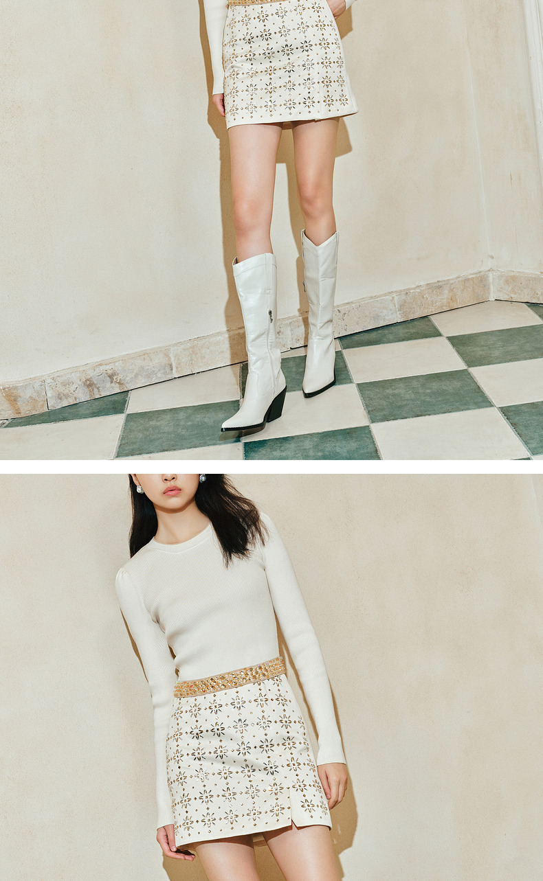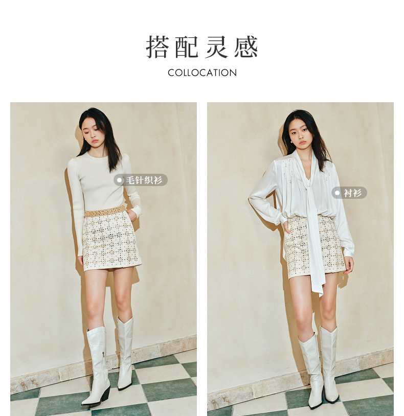 【商场同款-都市华丽日常】MAXRIENY烫钻缎面半裙宴会晚会穿搭女(货号:MC85SK034)