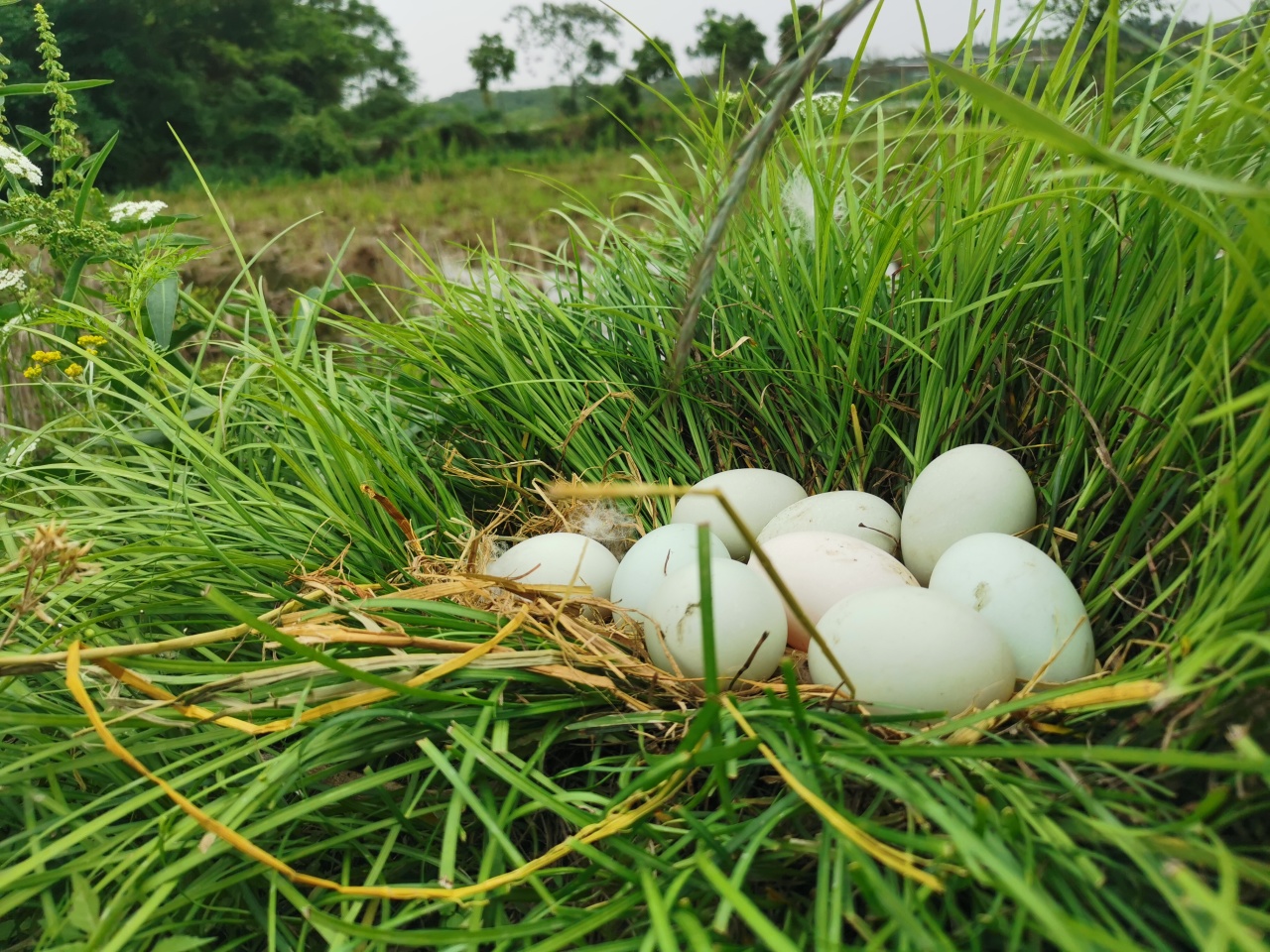 鸭子每年2月开始自由产蛋,草丛里时不时便有一枚枚惊喜。