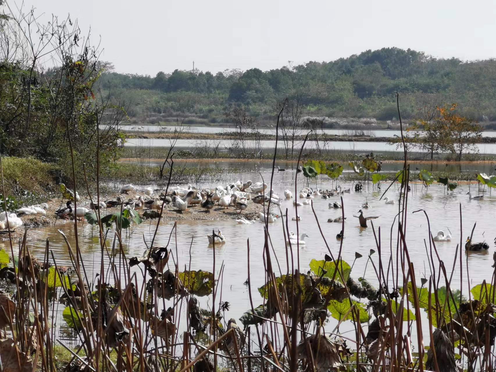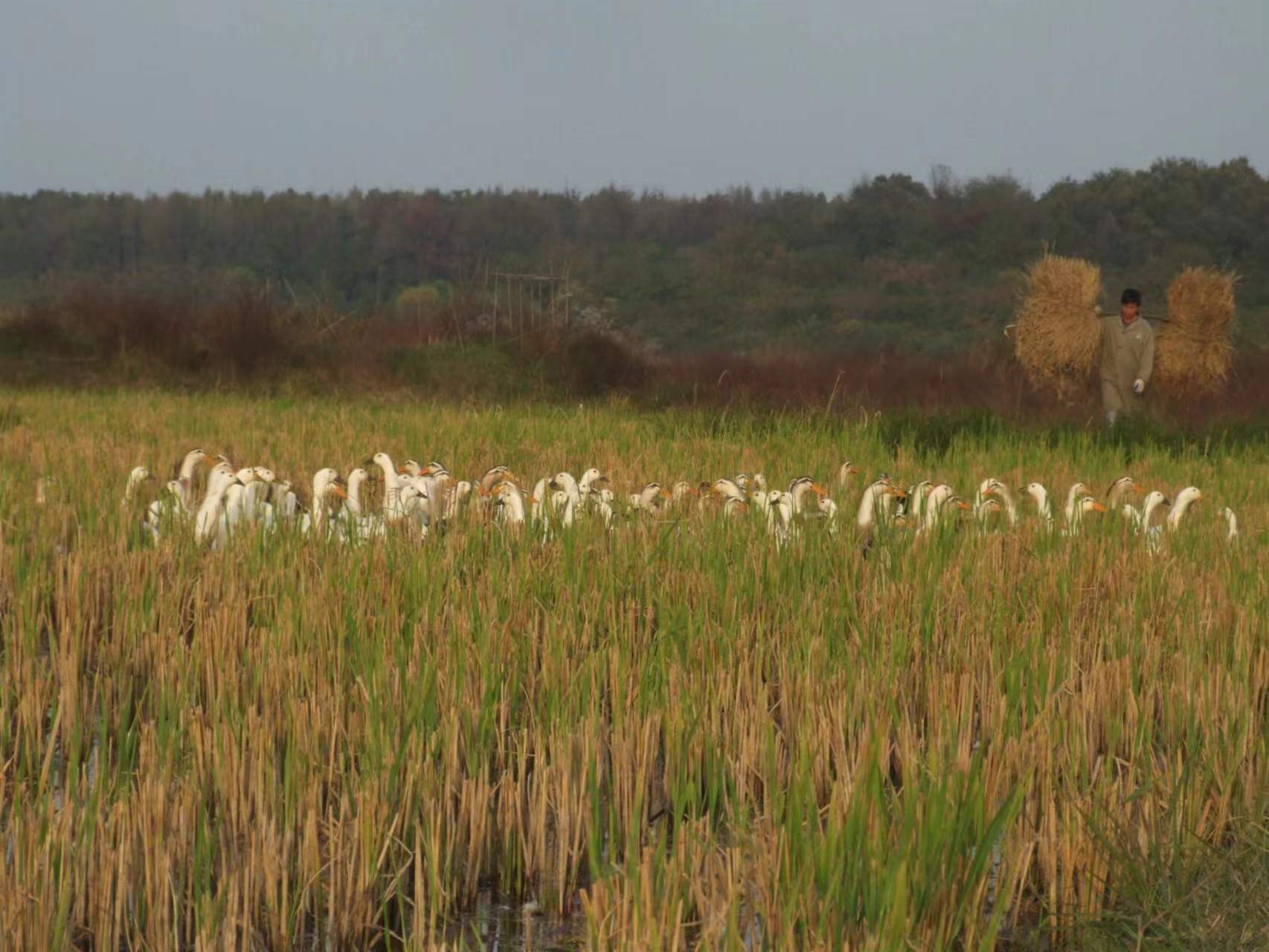 梁子湖畔有丰富的水域和草滩供鸭子游走觅食,不同于传统旱鸭子的投食喂养,杨大哥的鸭子四季游走于不同的区域,春季主要在藕田和湖汊湿地吃嫩芽和杂草,夏季荷叶长起来后就在梁子湖面和湖边吃小鱼小虾和田螺,秋季农场水稻收割后,会跑到稻田里吃落下的稻谷,冬季在杨大哥自家生态藕田里吃挖藕时的断藕。必要时少量补饲杨大哥自己种的生态玉米和稻谷。