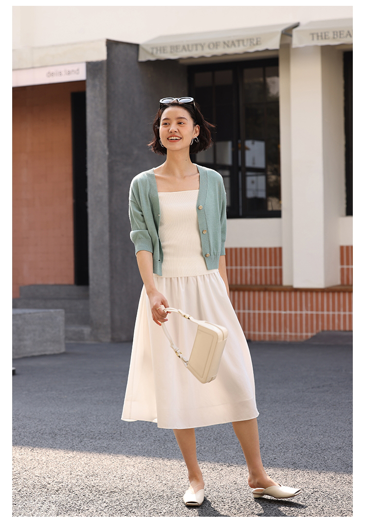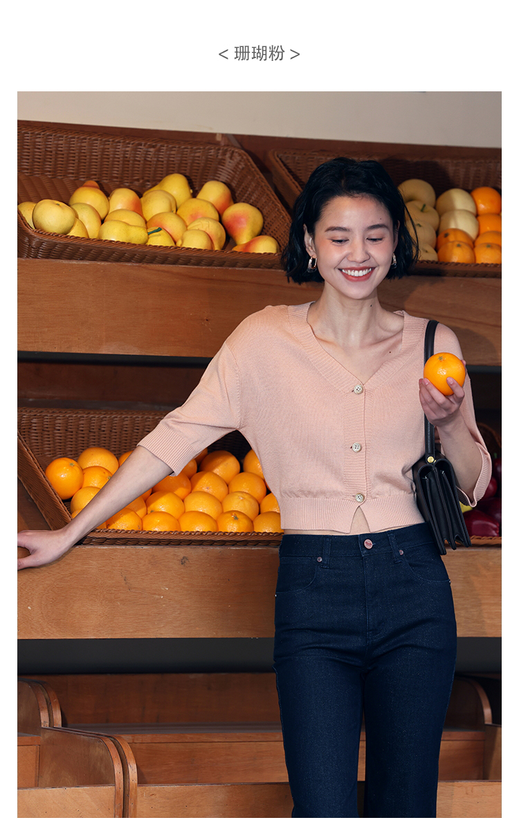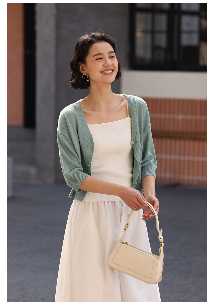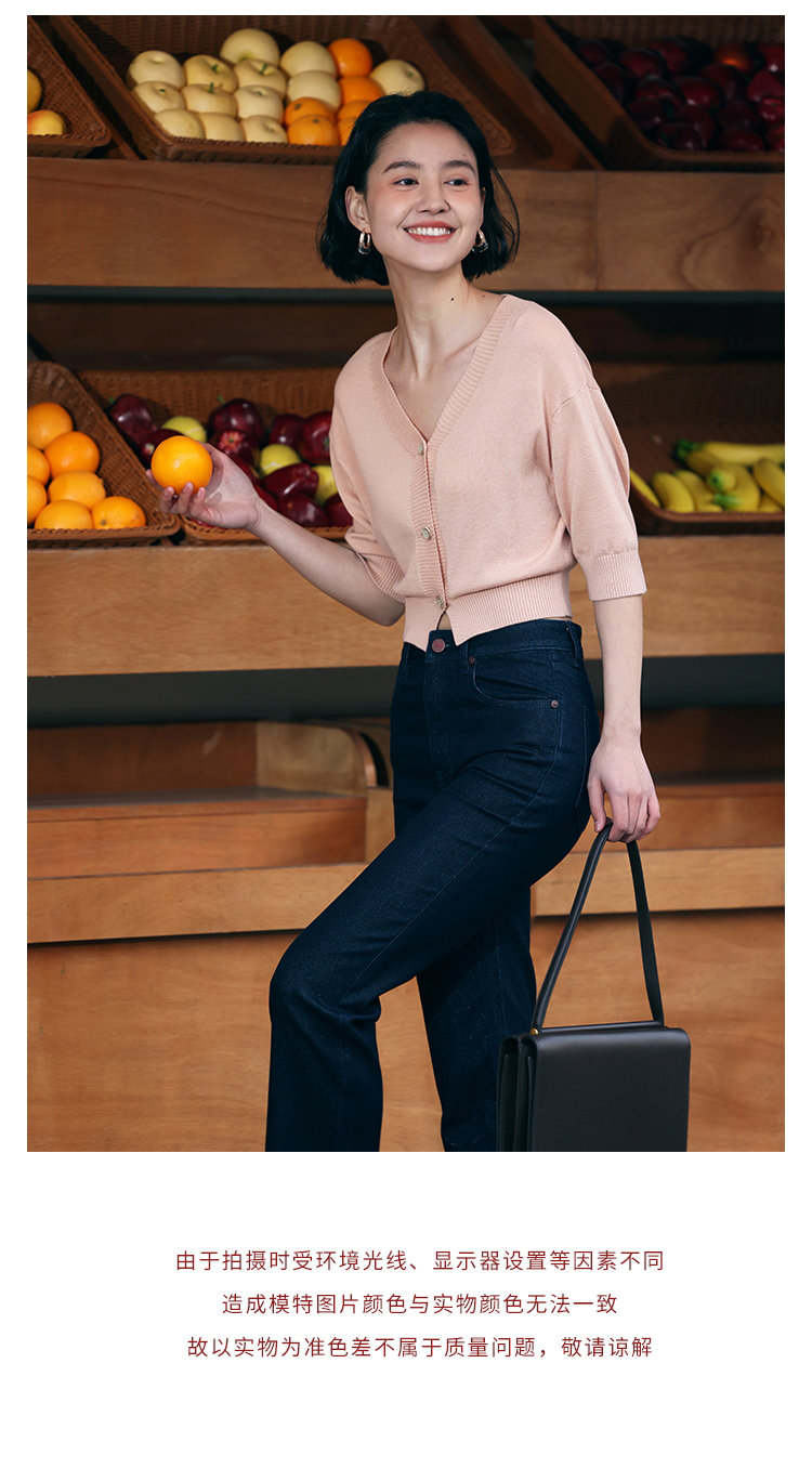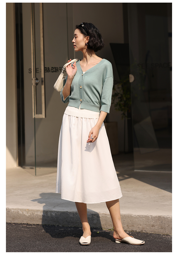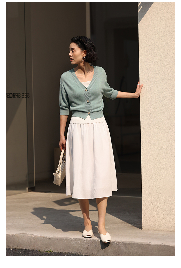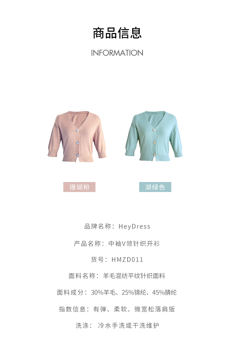 HeyDress法式针织开衫女春夏V领宽松收腰防晒衫中袖短款百搭上衣