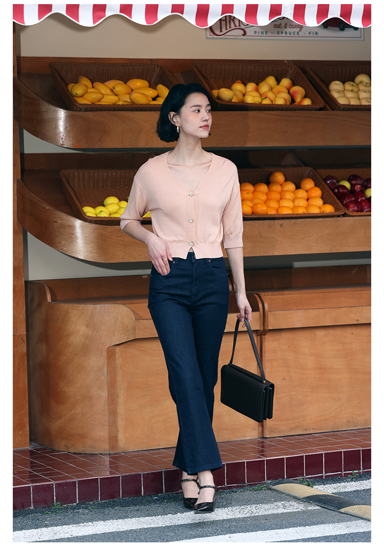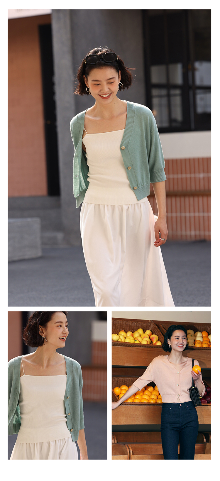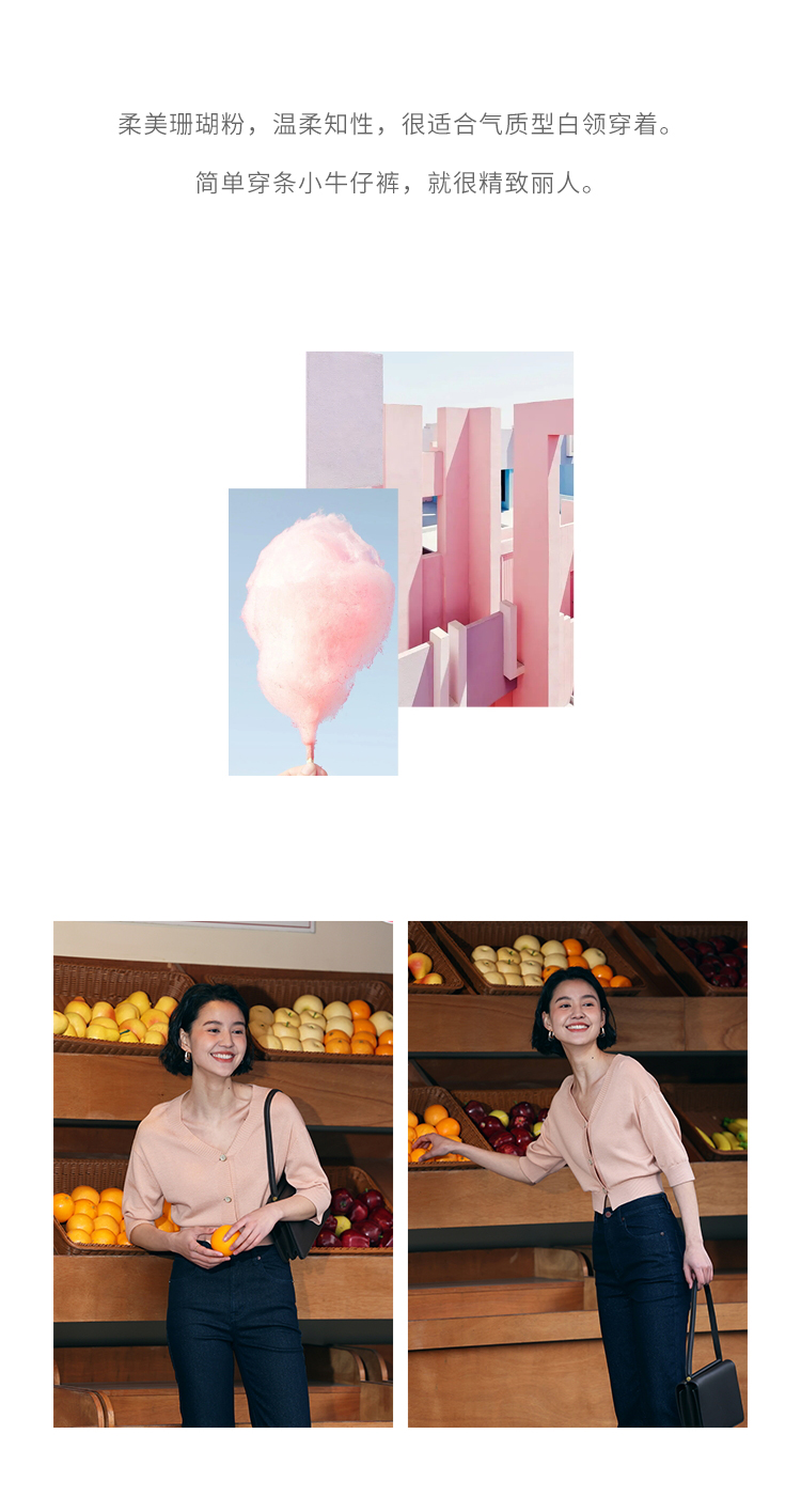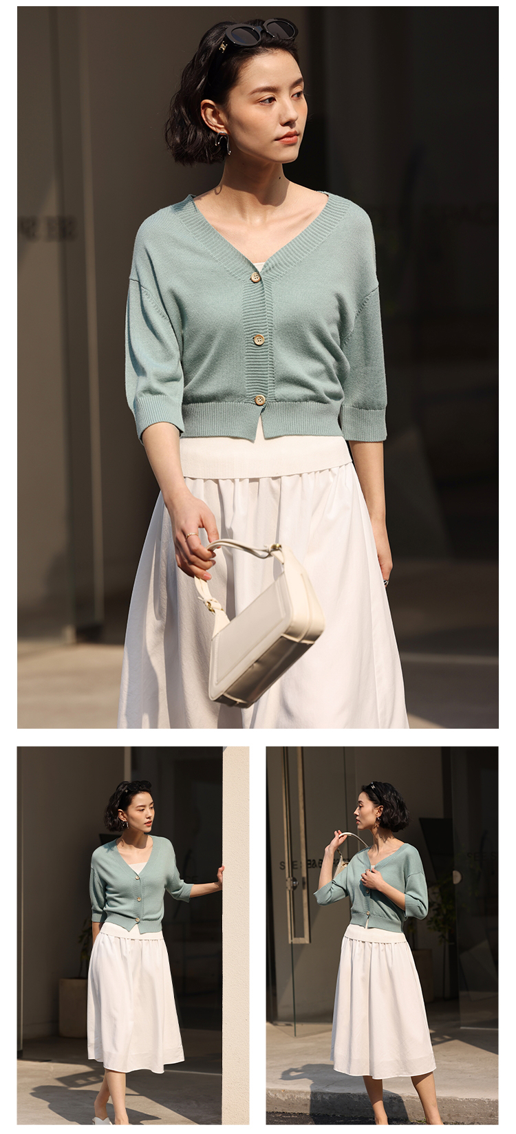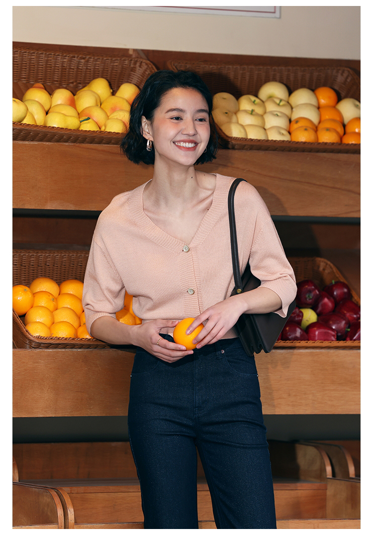 HeyDress法式针织开衫女春夏V领宽松收腰防晒衫中袖短款百搭上衣
