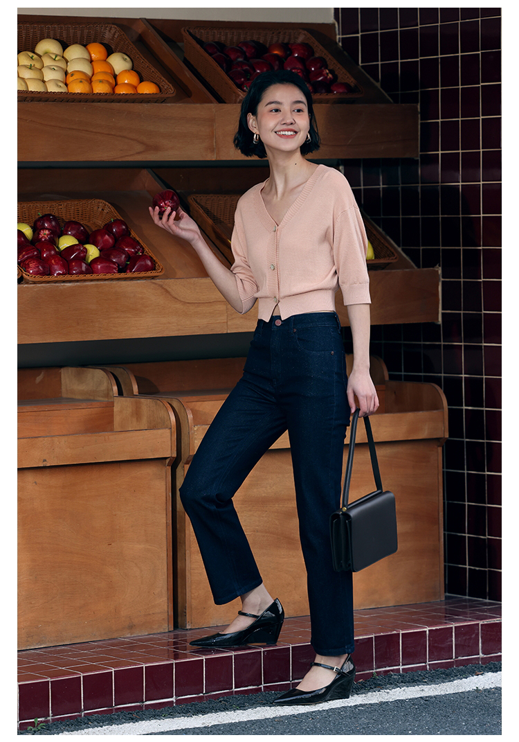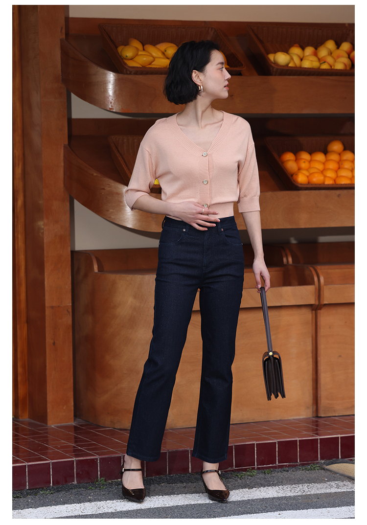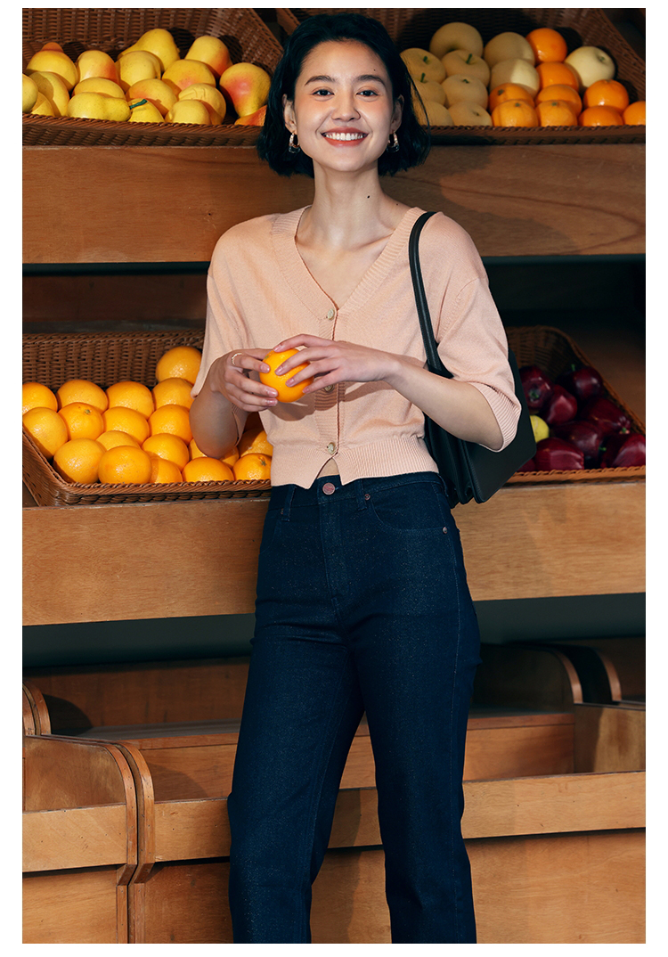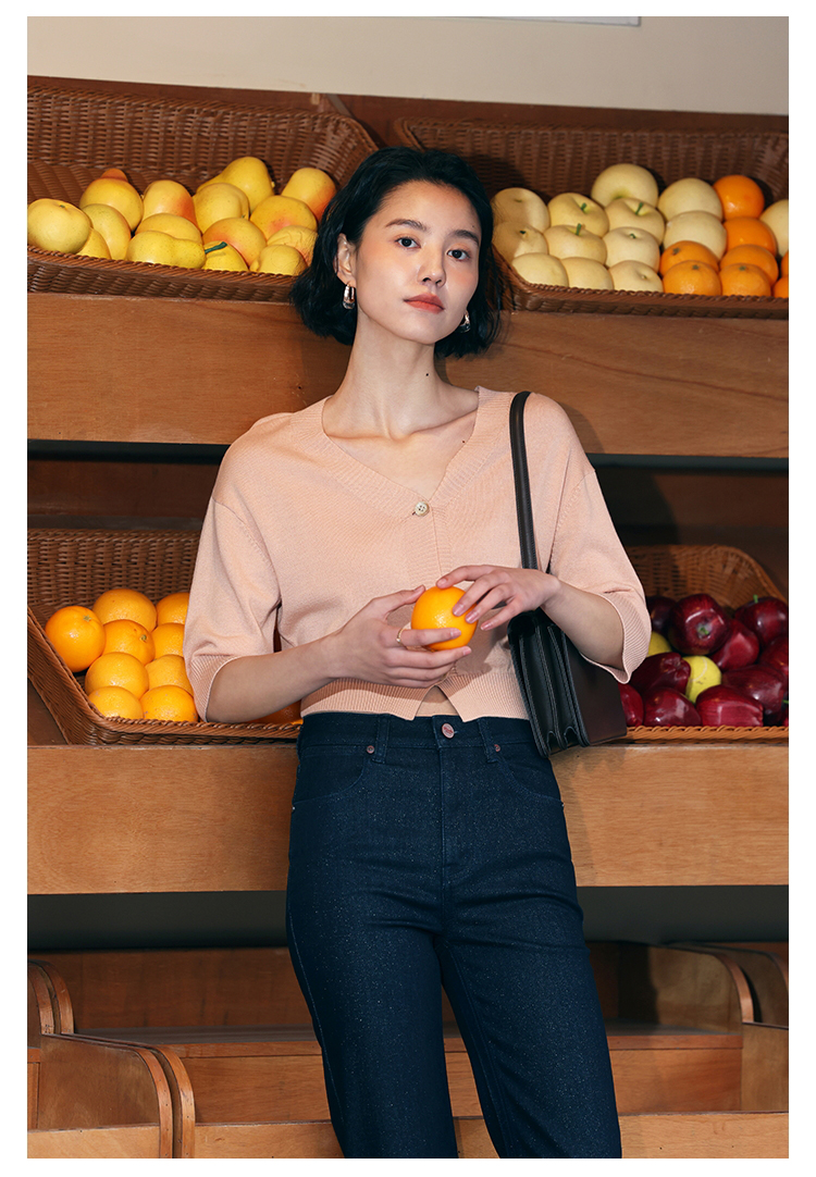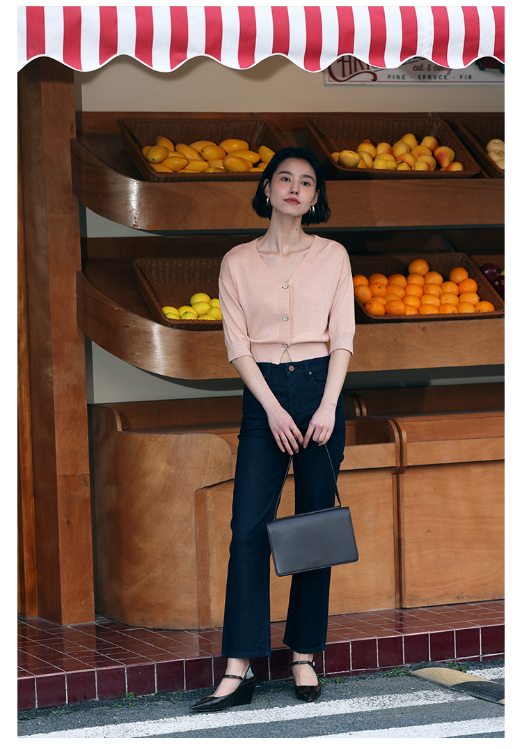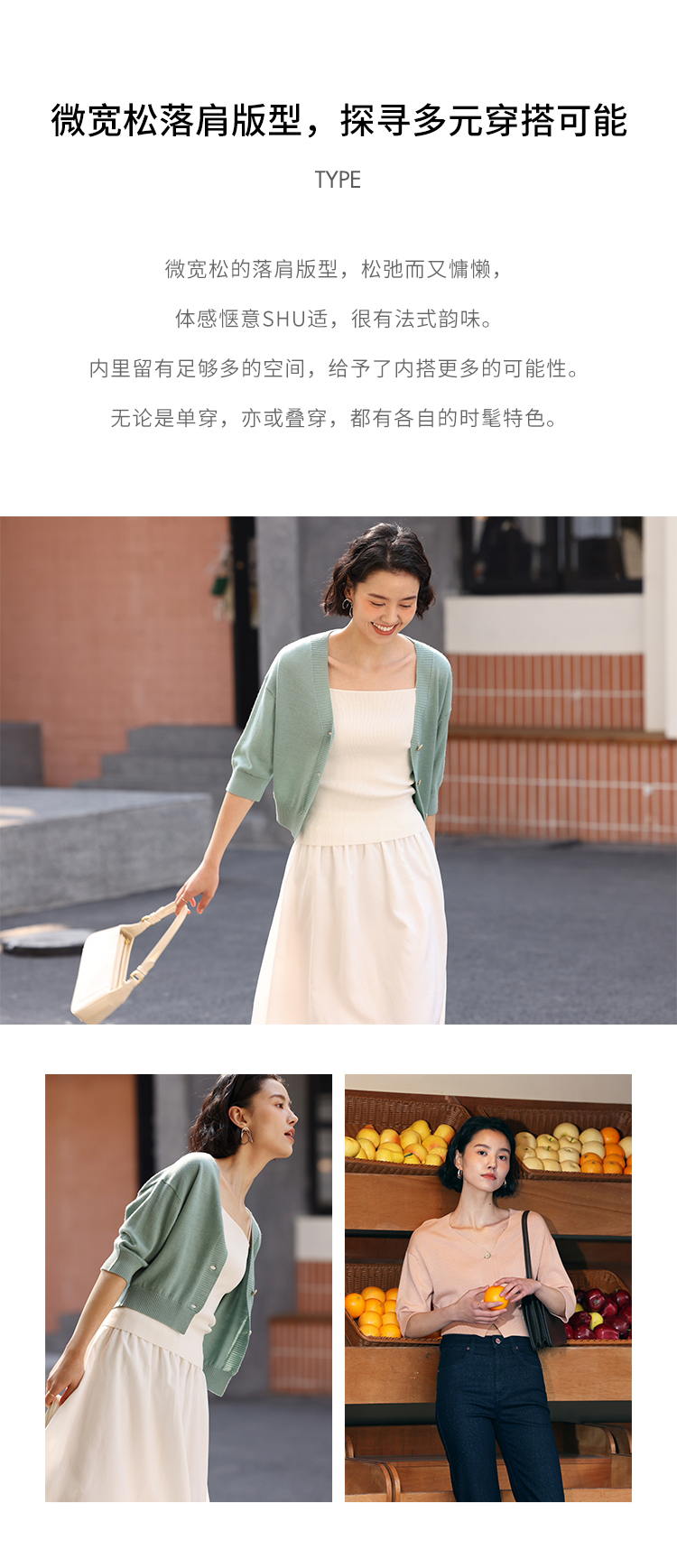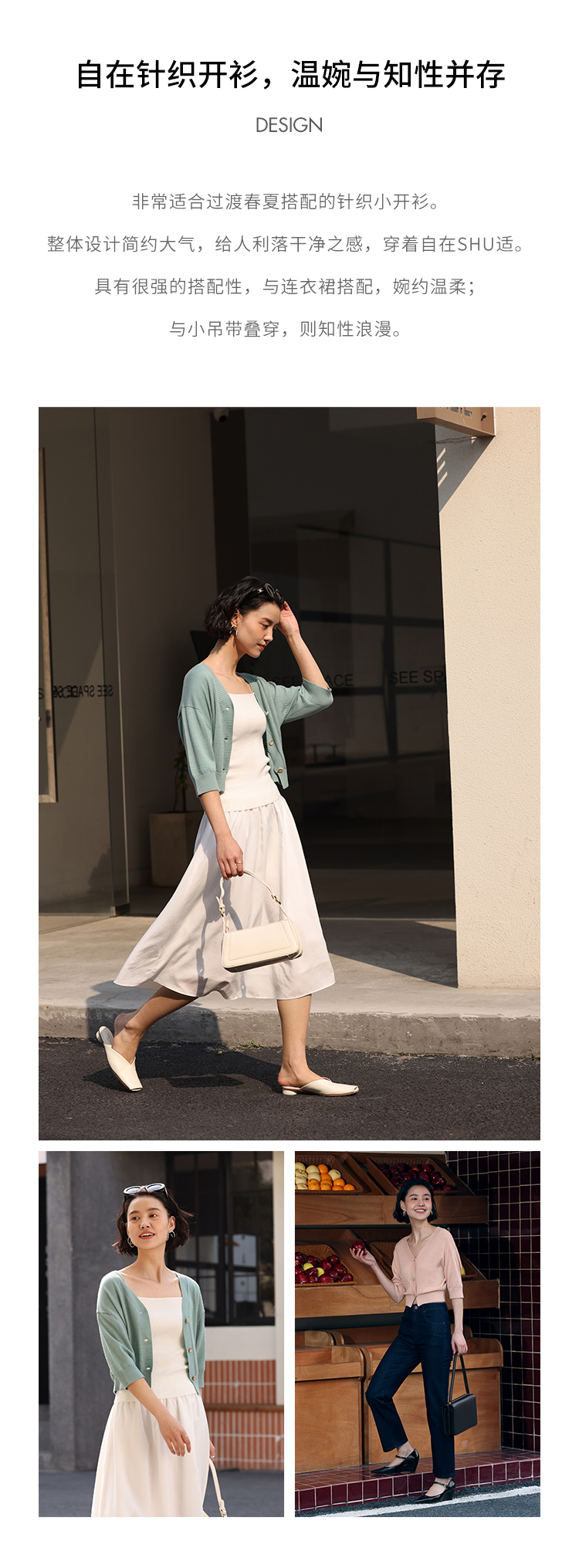 HeyDress法式针织开衫女春夏V领宽松收腰防晒衫中袖短款百搭上衣