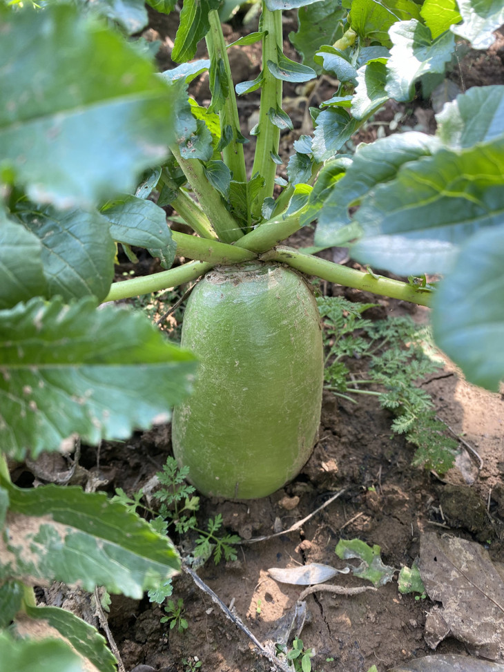 萝卜在果树林中套种,暑伏的时候播下种子。之后除了除草就不做管理,生长的是果树的底肥。