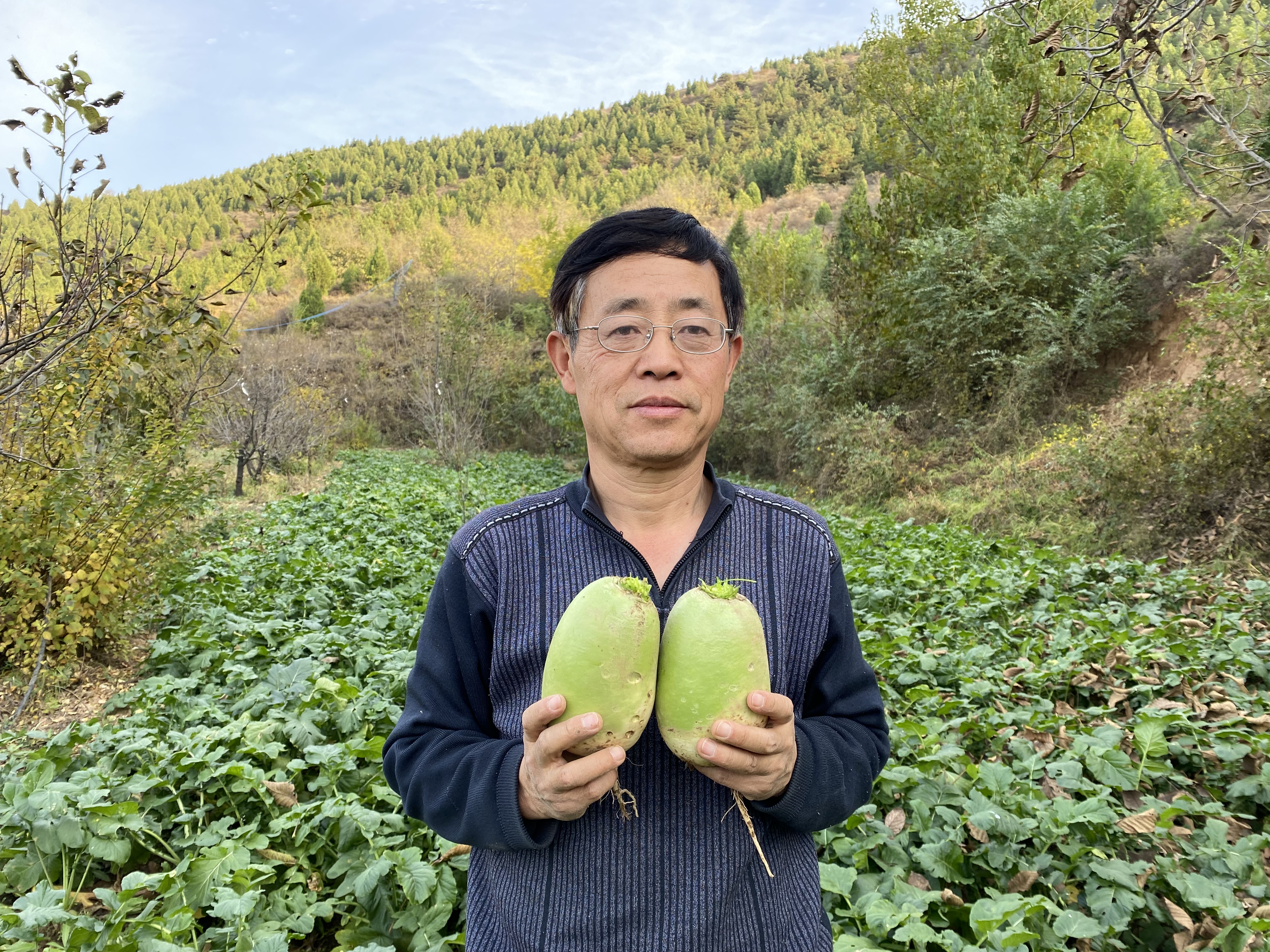 今年张大哥还在梨树跟核桃树的地里套种了几亩萝卜。