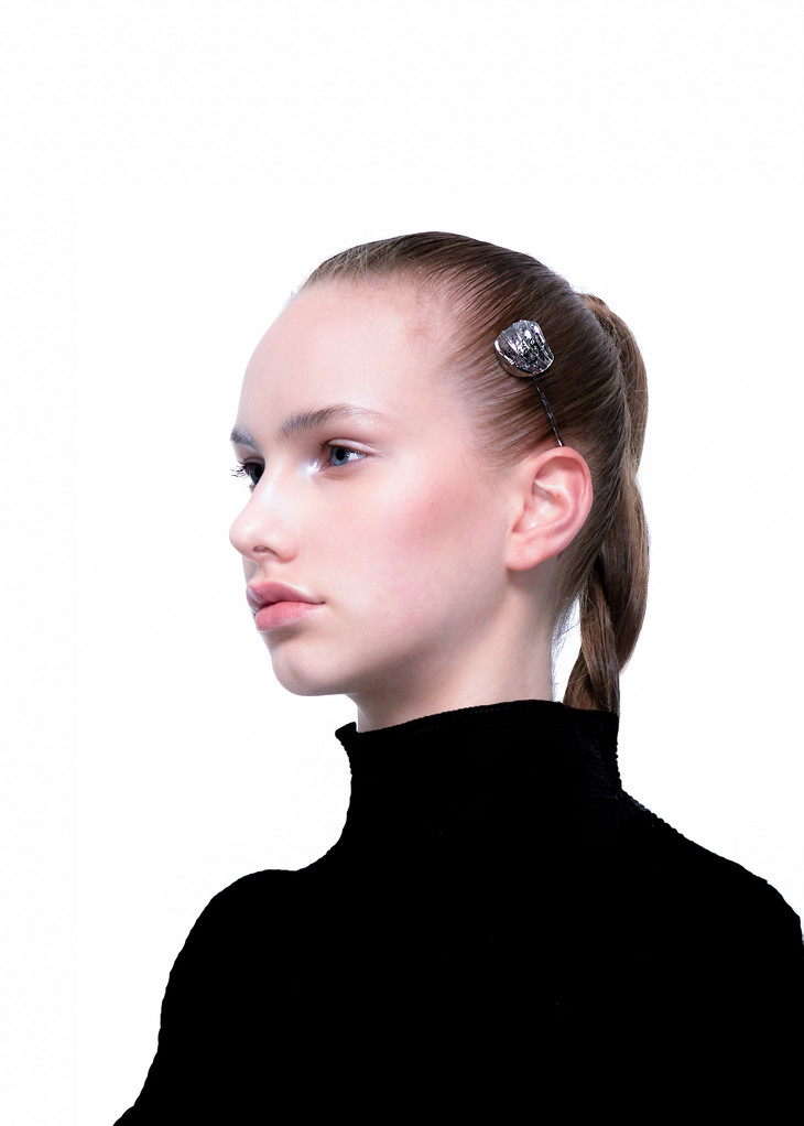 贝壳配件上自然形成的纹理面增加整体质感,焊接 一字发夹制成