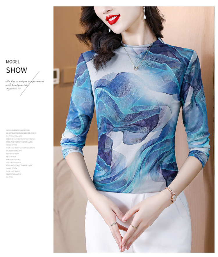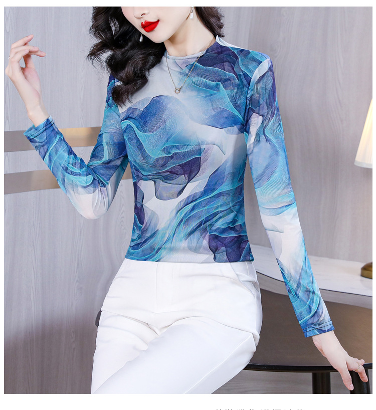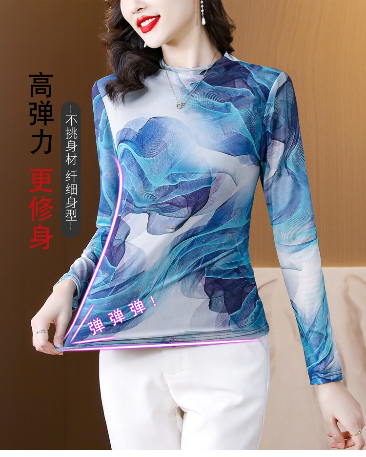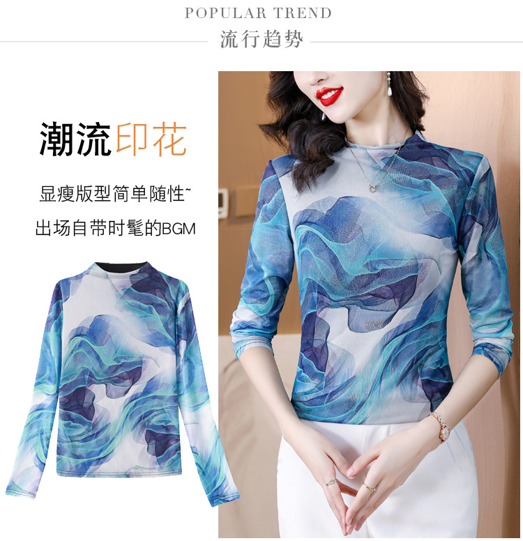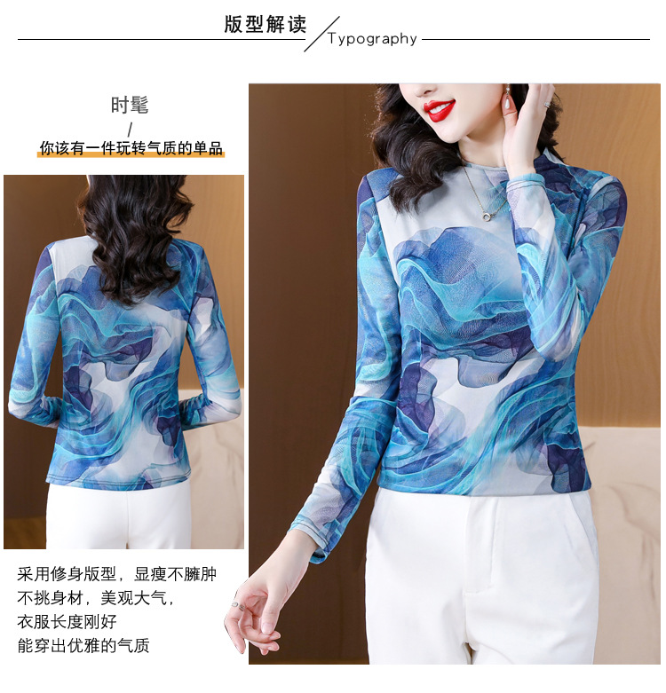 气质网纱打底衫,百搭长袖t恤加绒上衣TYL569